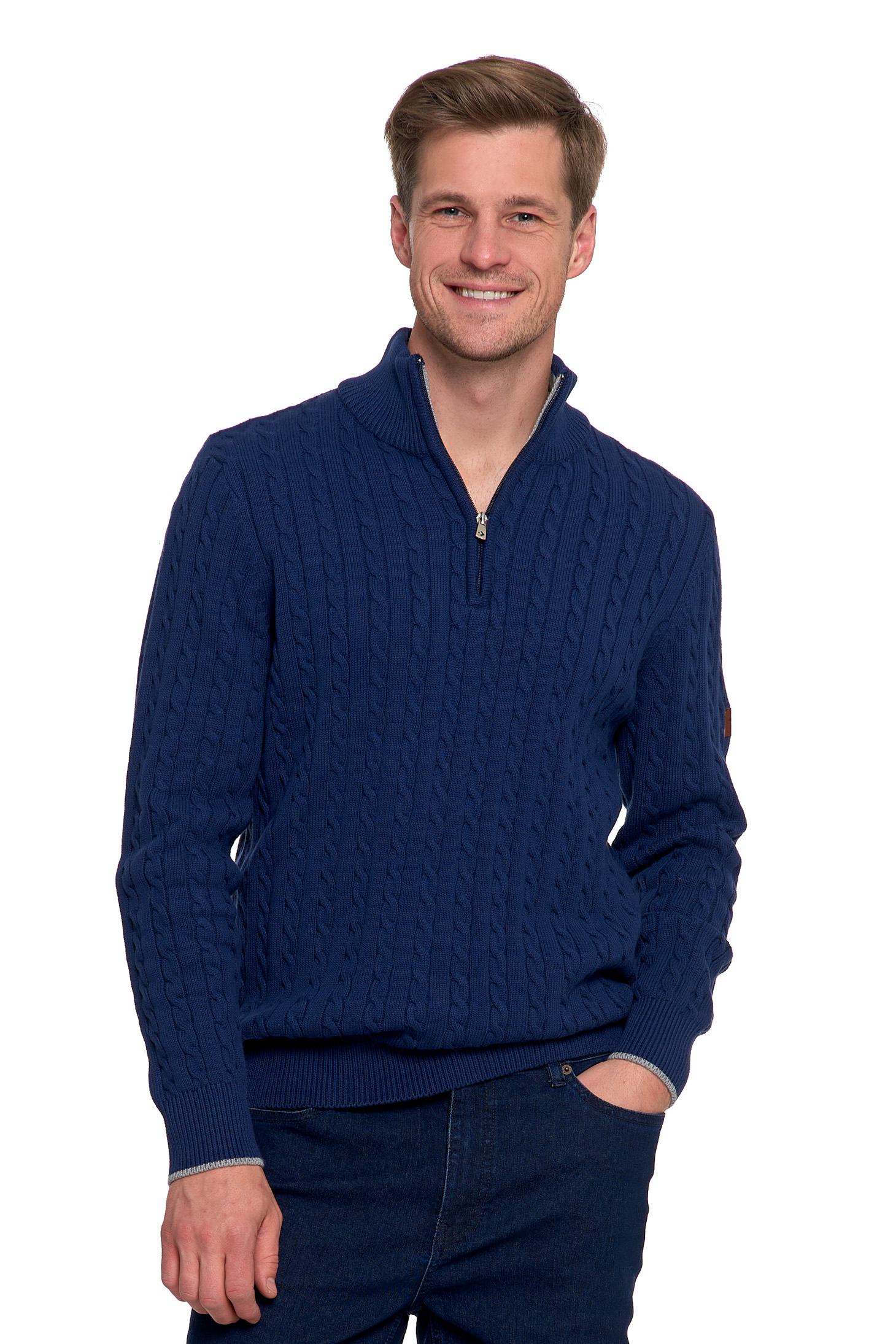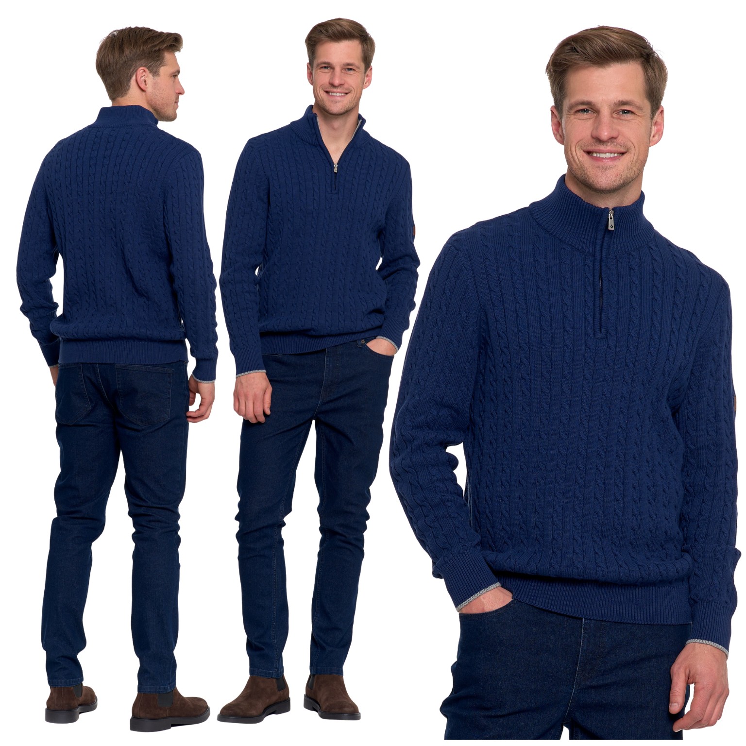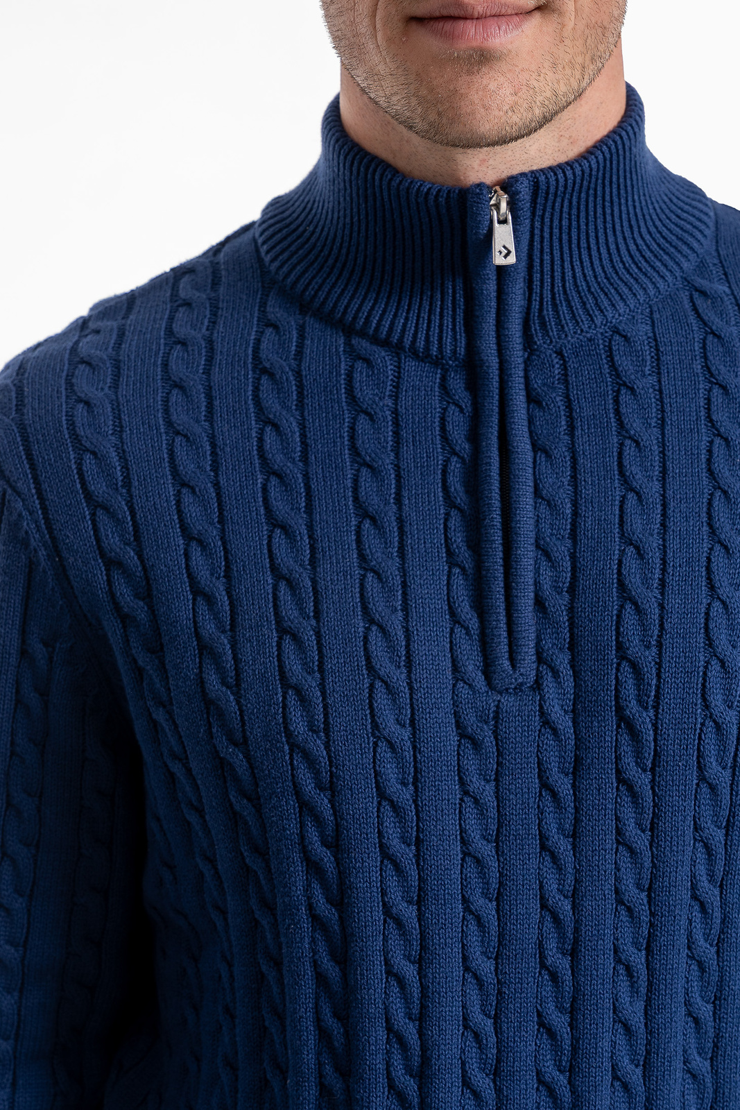 Ten męski sweter dzianinowy to połączenie ponadczasowej klasyki i codziennego komfortu. Wyróżnia się klasycznym splotem w formie warkoczy i półgolfem zapinanym na krótki zamek, który nadaje mu nowoczesnego charakteru i funkcjonalności.