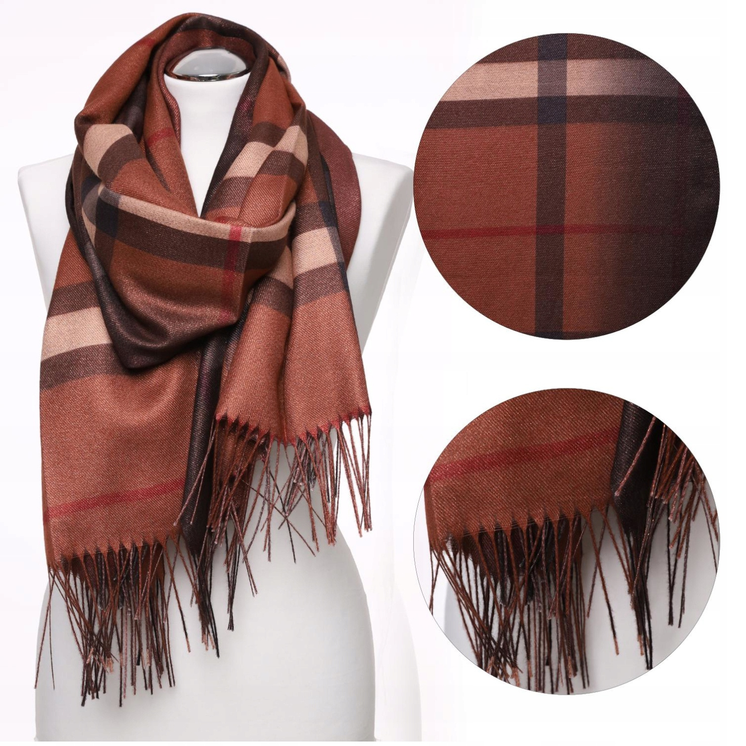 Elegancki Szal Damski w Kratę Brokat Duży MORAJ