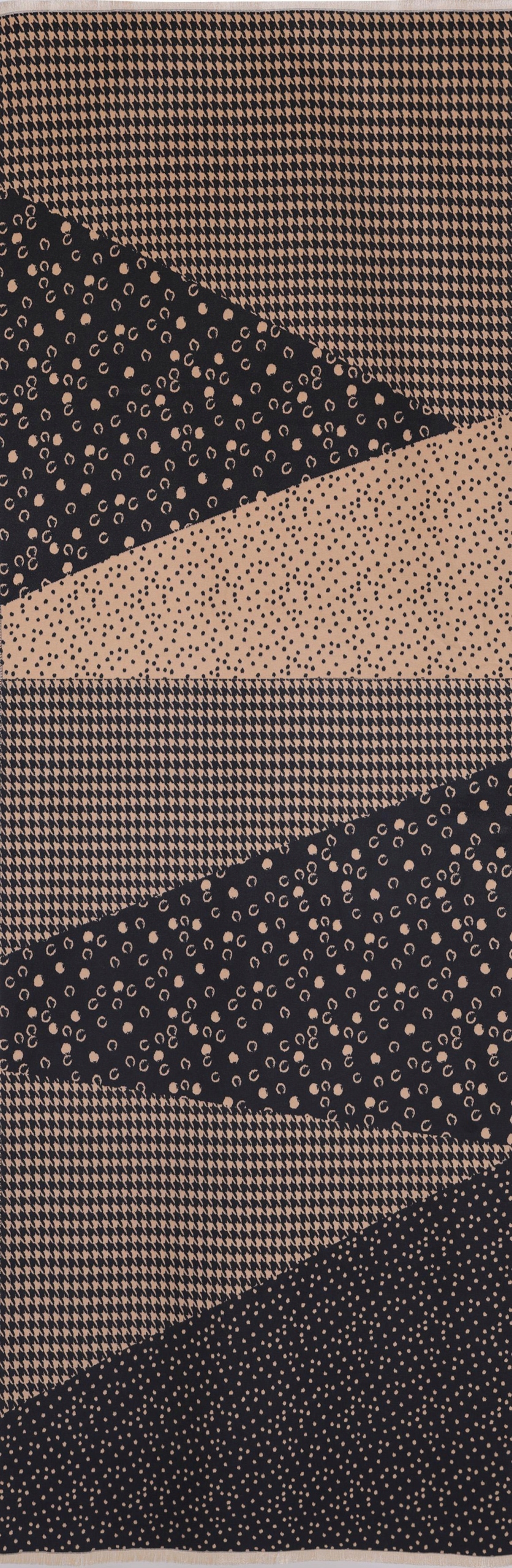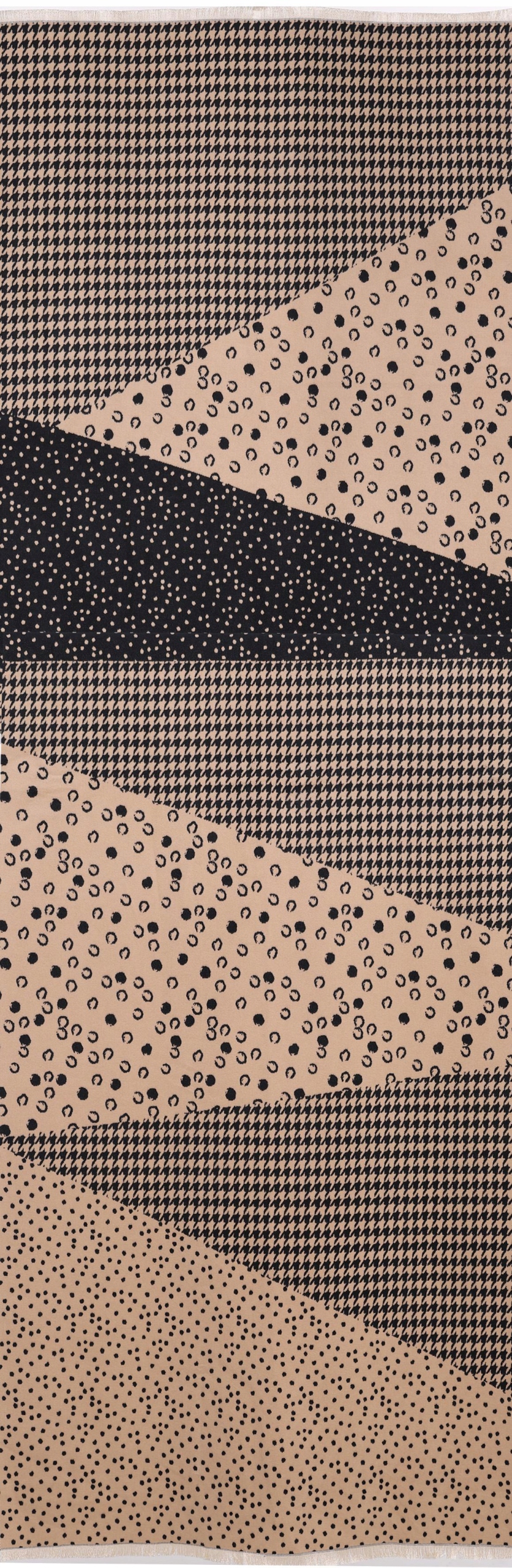 Wzory w mixie: Z jednej strony szal ozdobiony jest mieszanką wzorów, co tworzy unikalny i atrakcyjny wygląd. To doskonały sposób na dodanie kreatywnego elementu do Twojej garderoby.