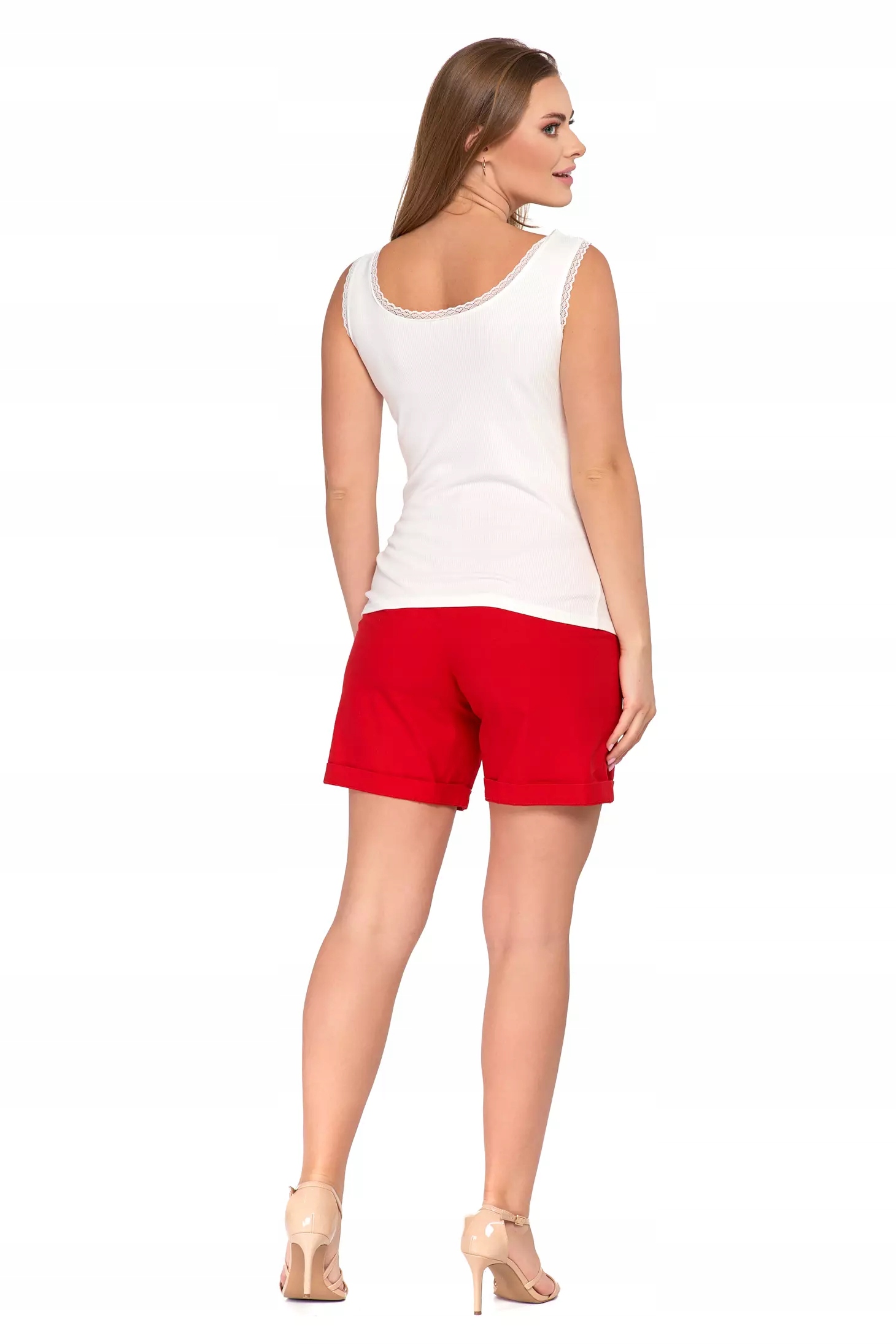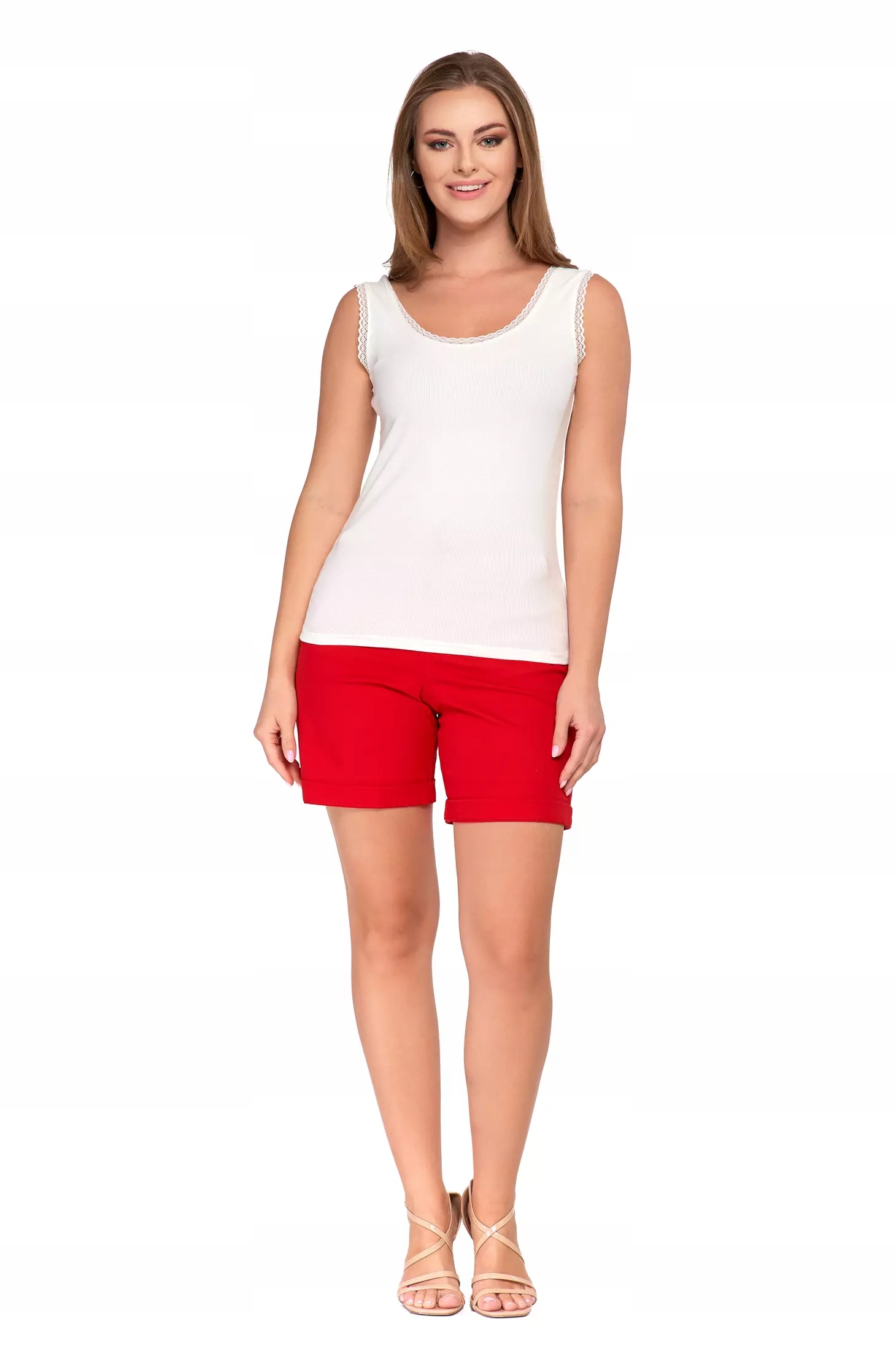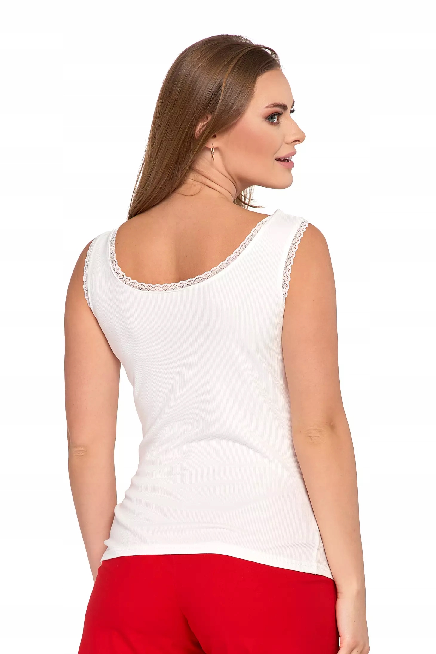 Elegancki TOP DAMSKI Bokserka Koronkowe Wykończenie Prążkowany MORAJ