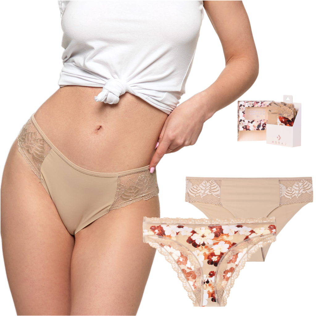 Eleganckie Figi Damskie Majtki Koronkowe Wykończenie Kartonik MORAJ