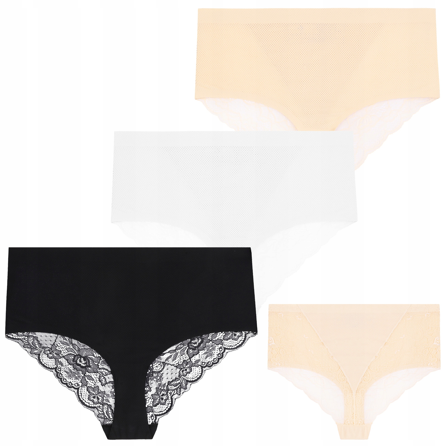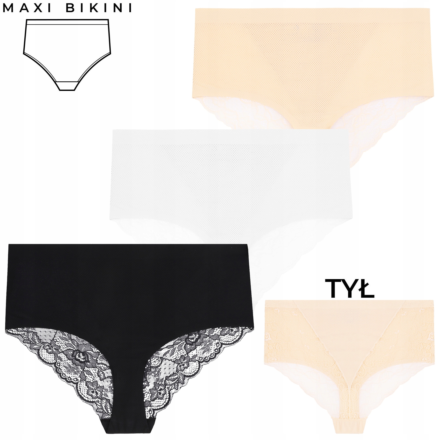 Eleganckie Majtki Damskie Figi Maxi z Koronką Wysoki Stan 3-PAK MORAJ