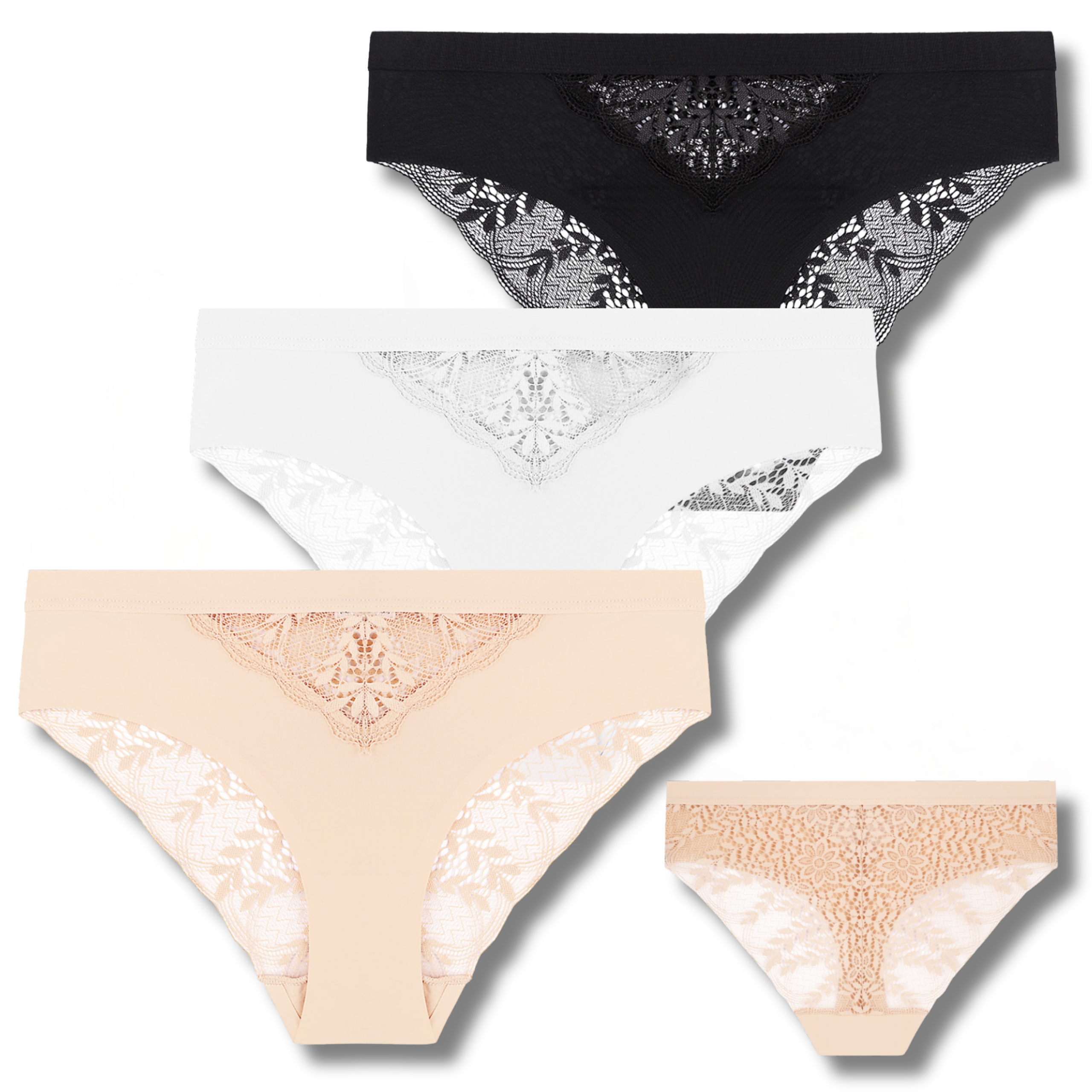 ELEGANCKIE MAJTKI DAMSKIE Z KORONKĄ SUBTELNE FIGI MODNE MORAJ 3-PAR