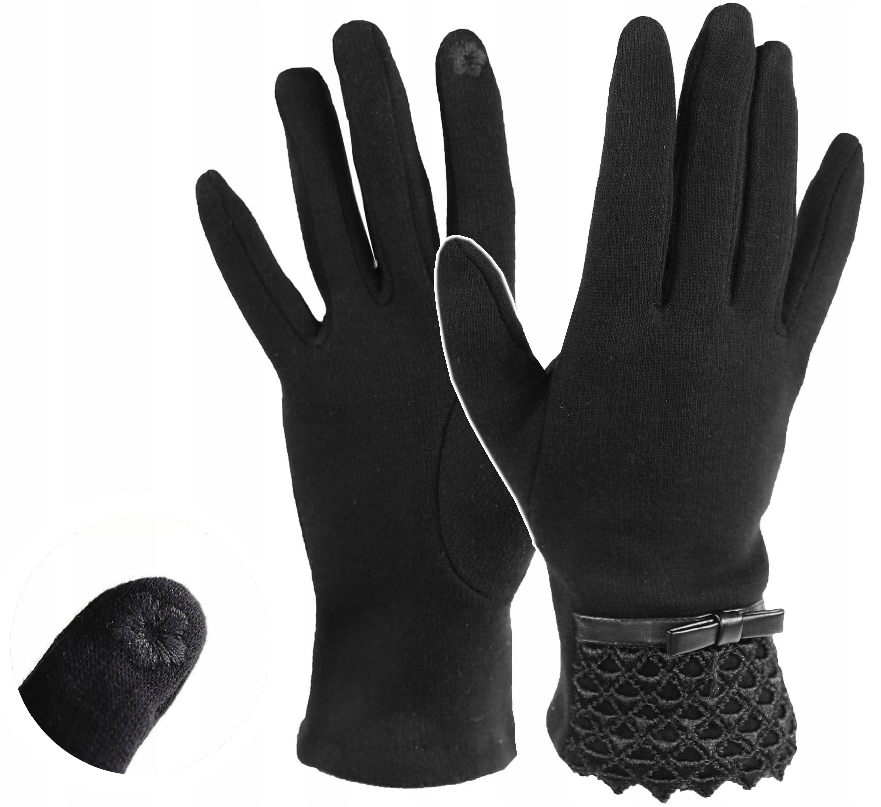 Są przyjemne w dotyku, a elastyczny materiał nie krępuje ruchów. Model przy nadgarstku wykończony jest modną koronką z dodatkiem kokardki z eko skóry.