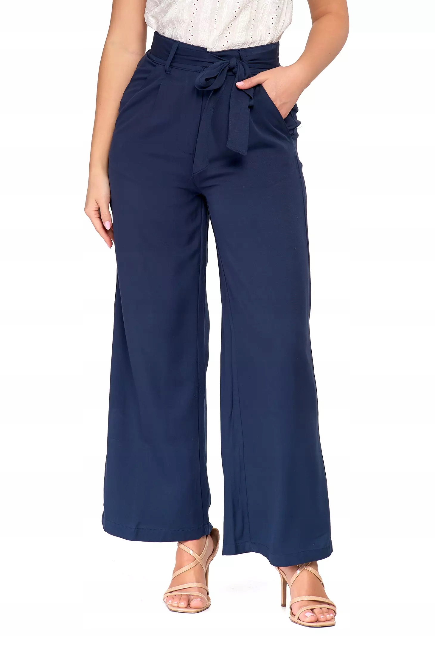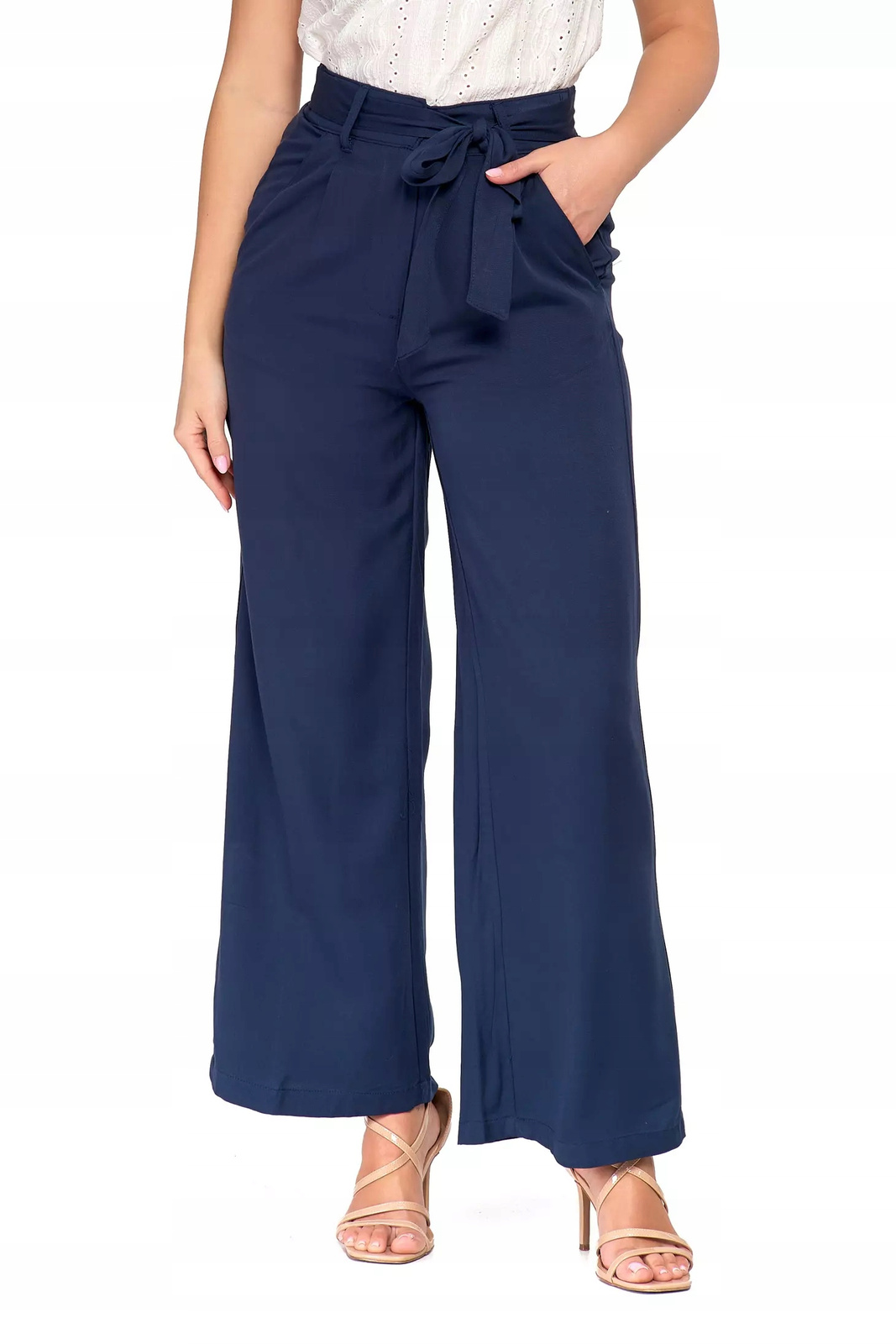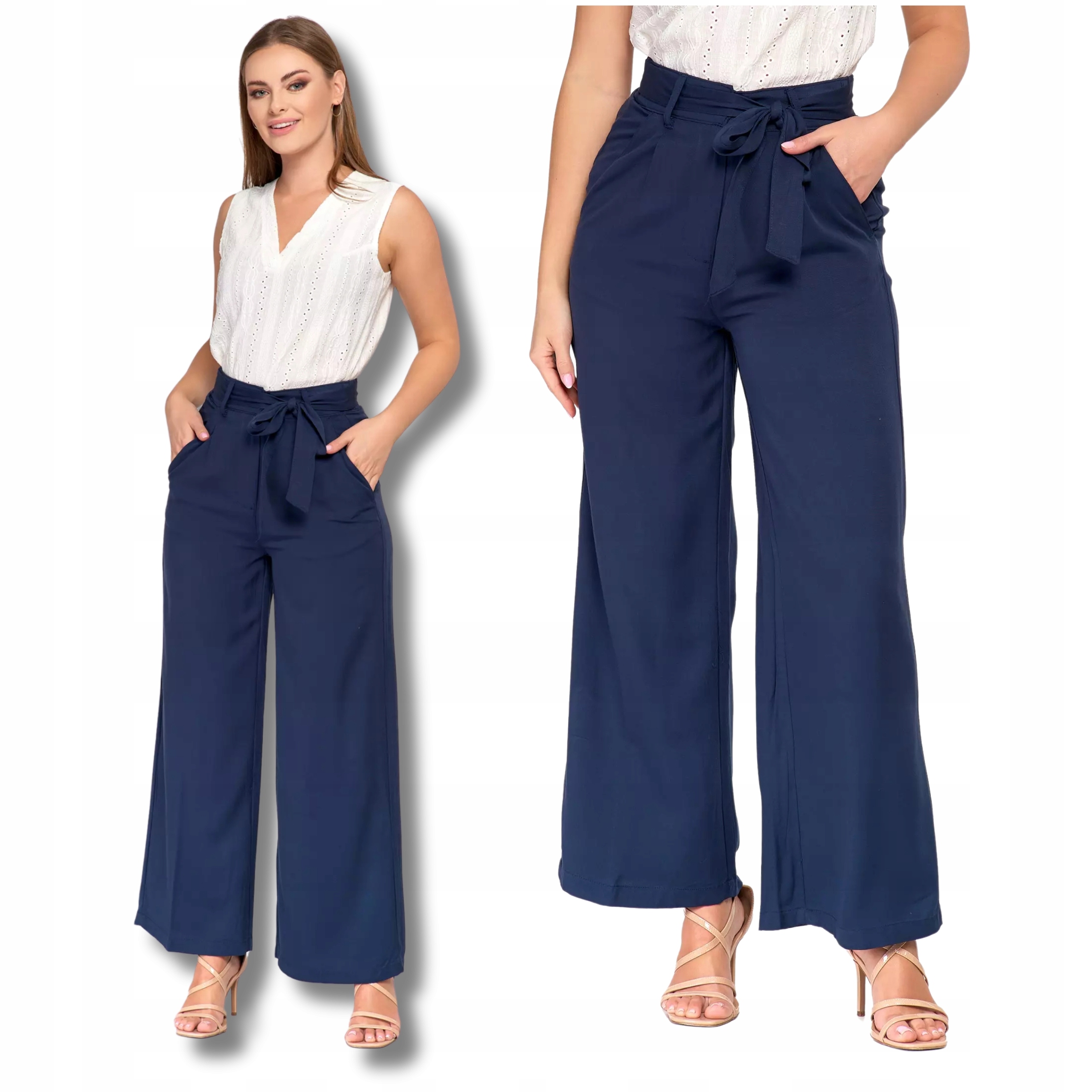 Eleganckie SPODNIE DAMSKIE Szerokie Gładkie Wysoki Stan Modne MORAJ