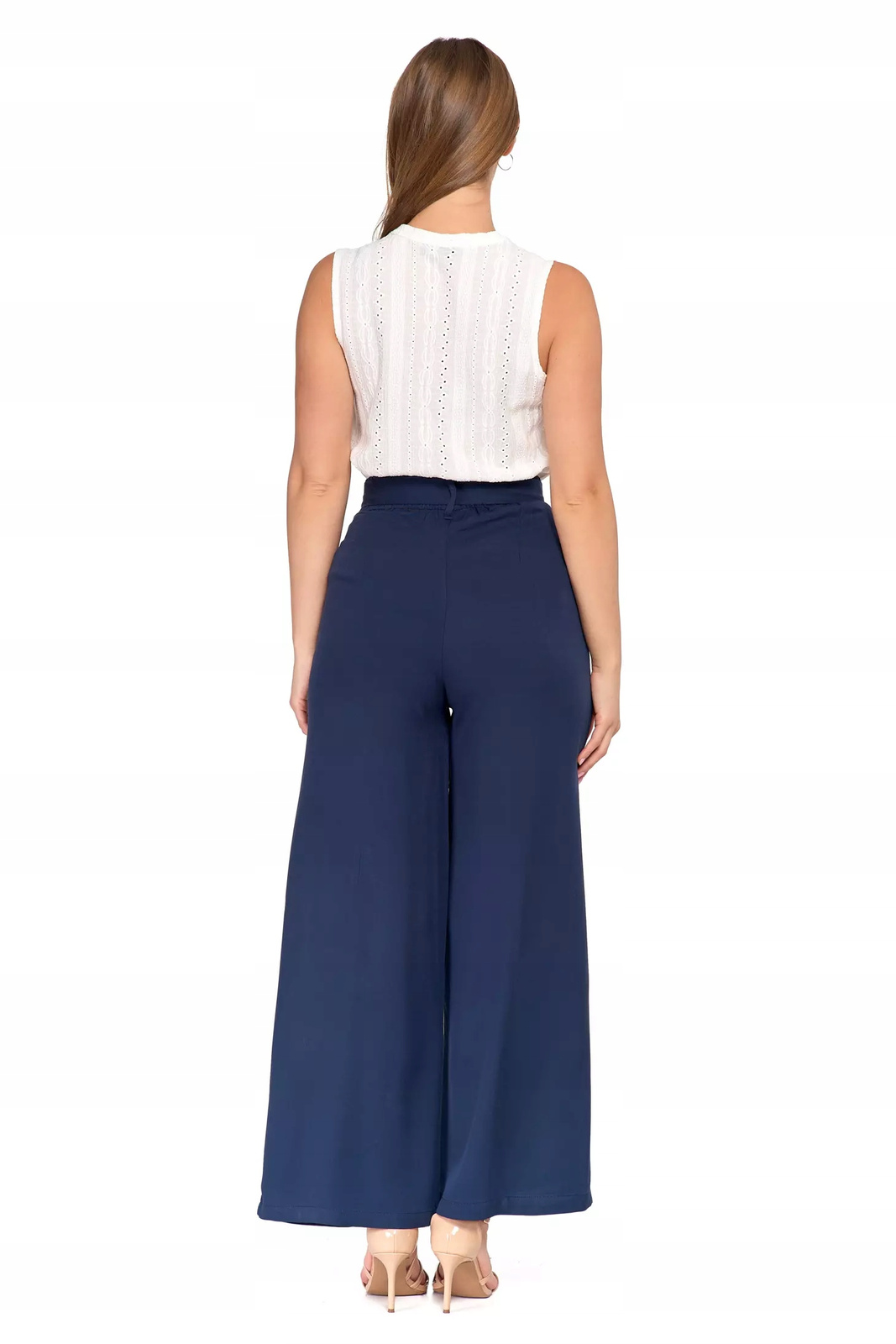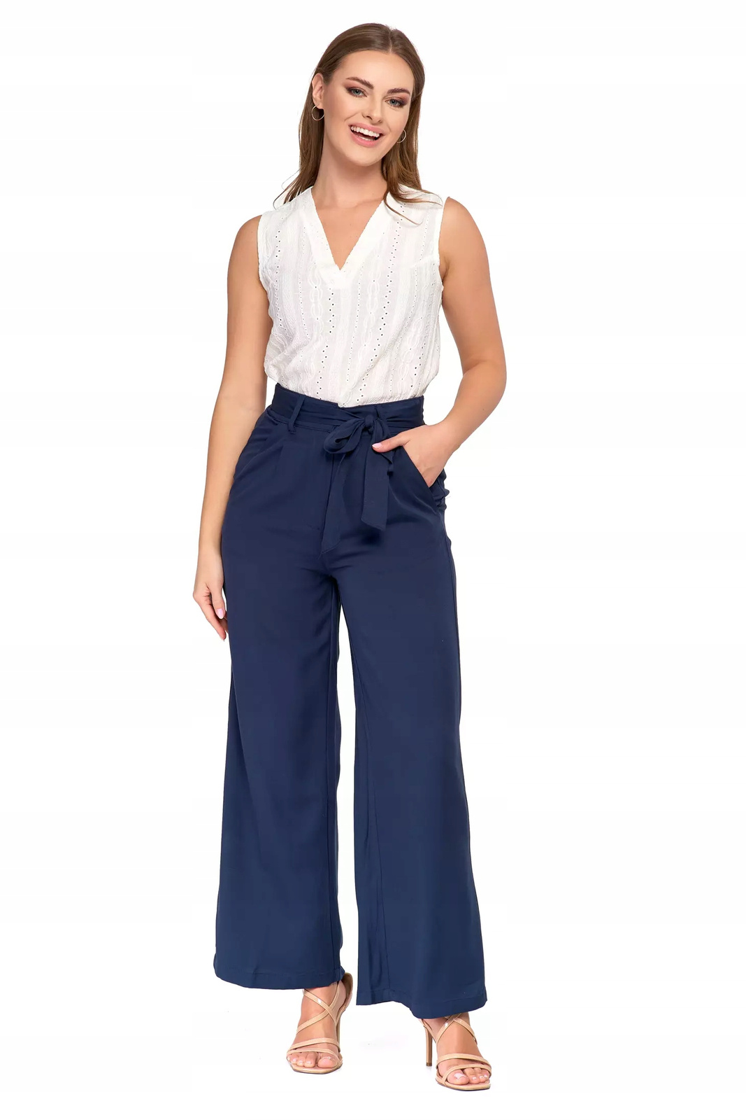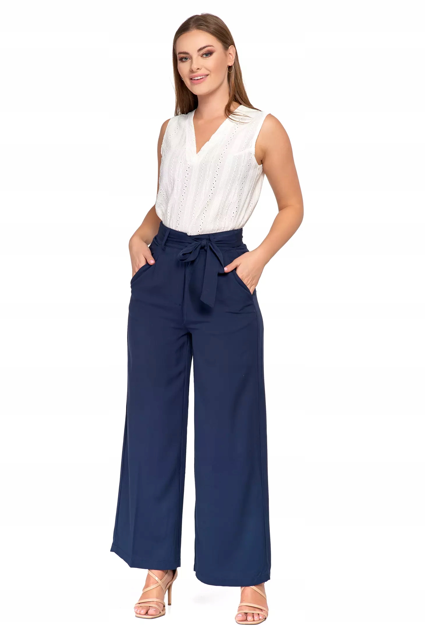 Eleganckie SPODNIE DAMSKIE Szerokie Gładkie Wysoki Stan Modne MORAJ