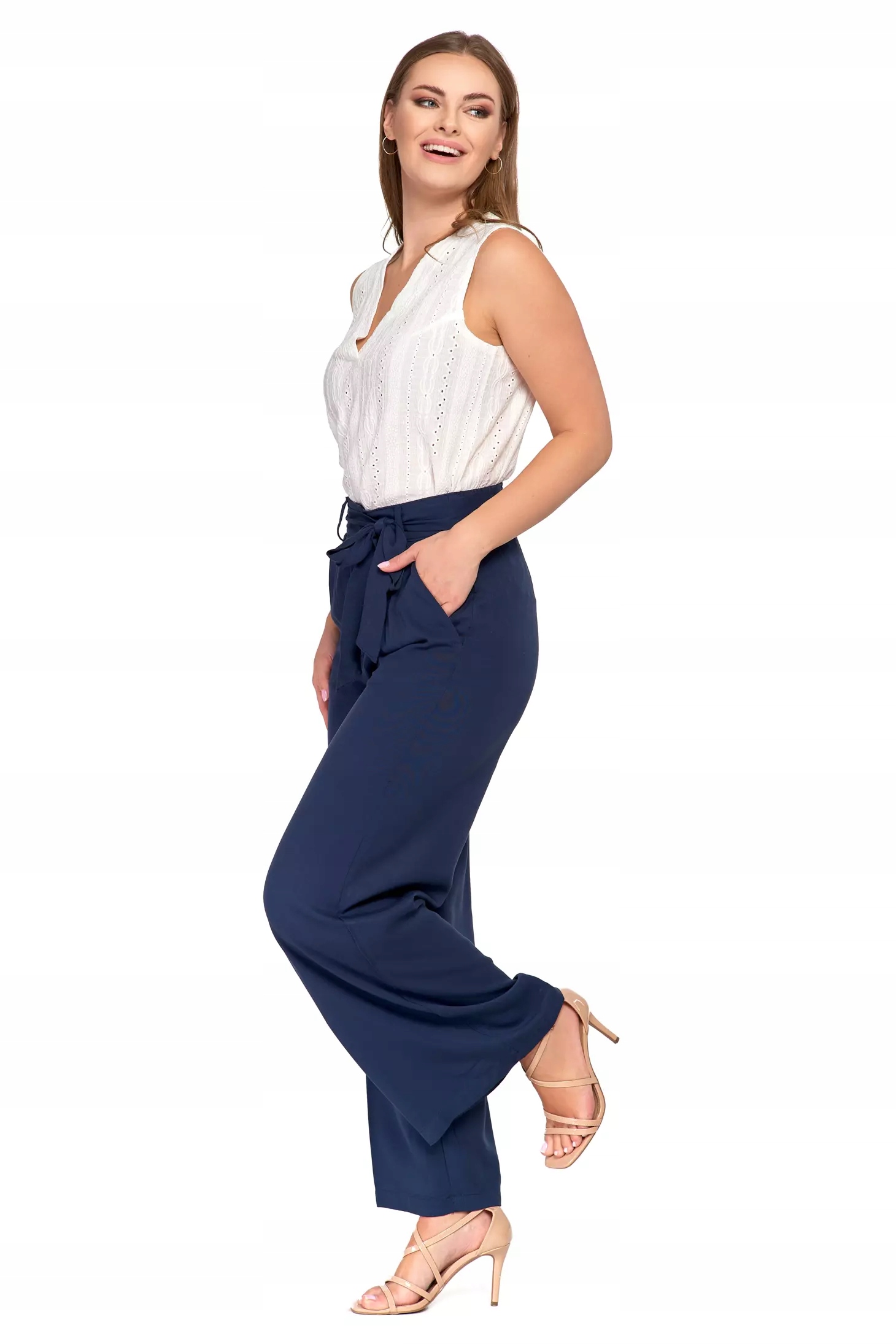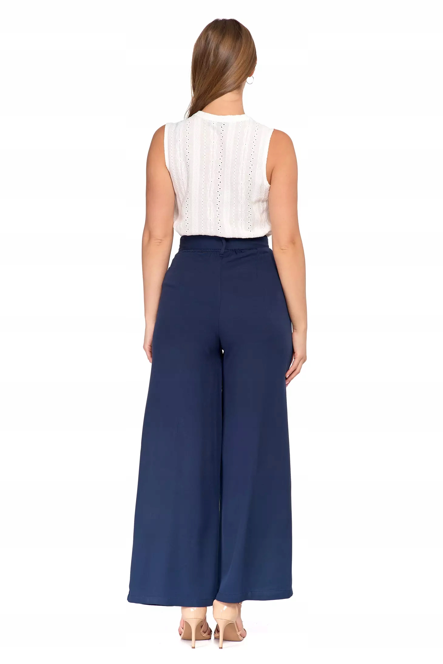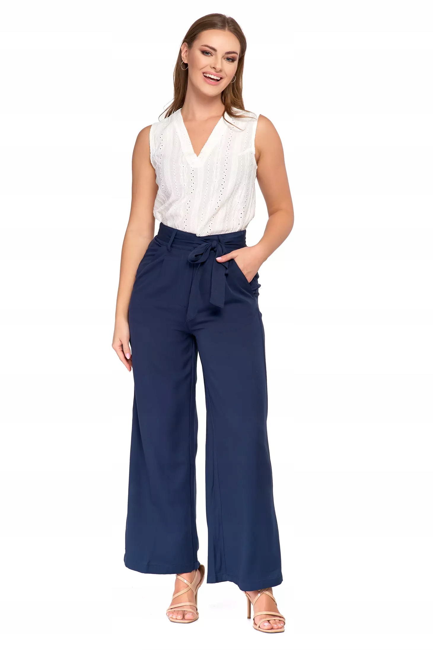 - Szeroka nogawka typu palazzo – dodaje elegancji i zapewnia swobodę ruchów
