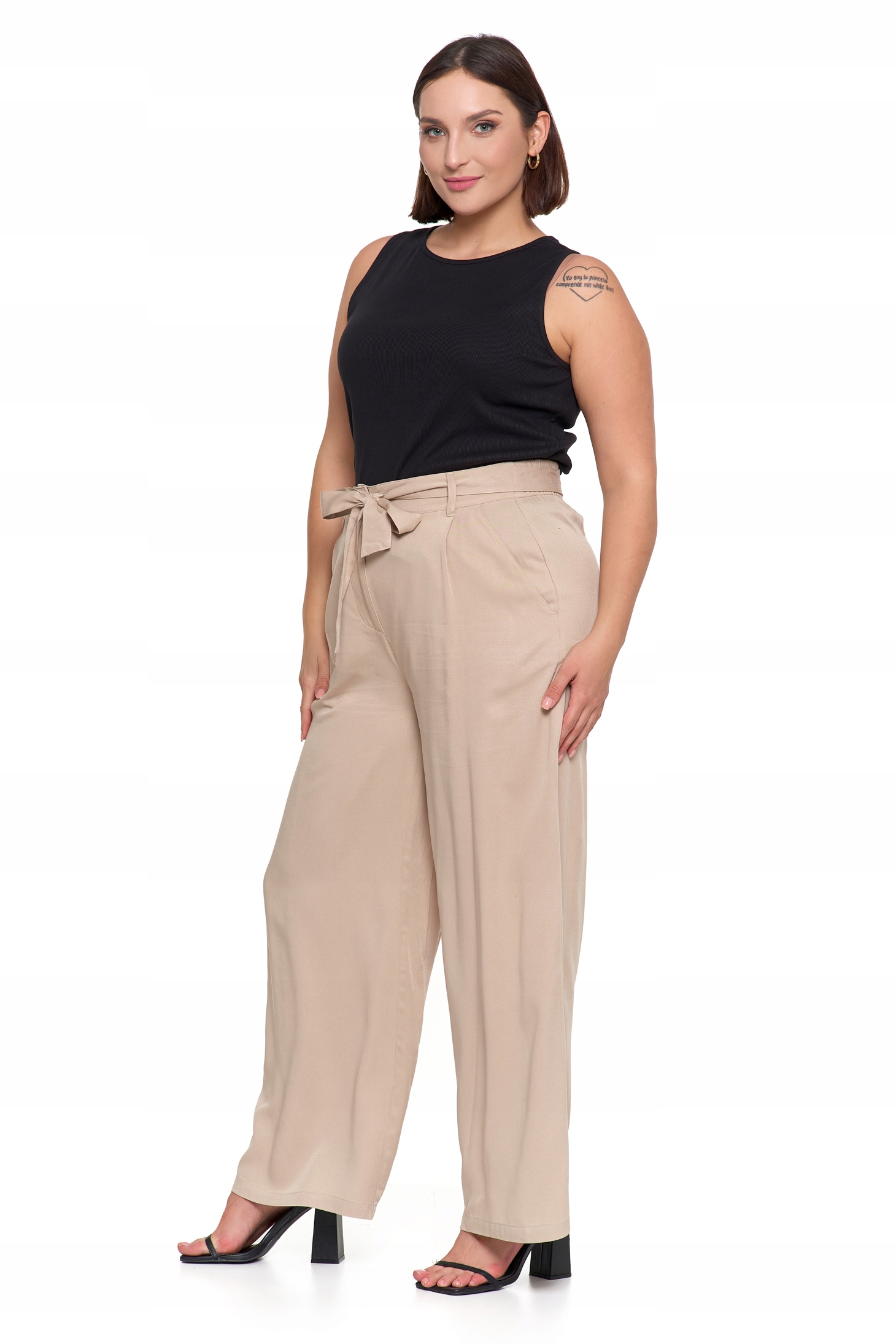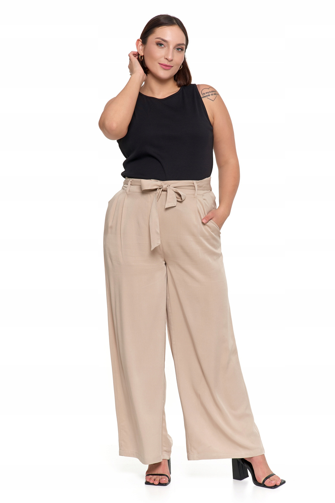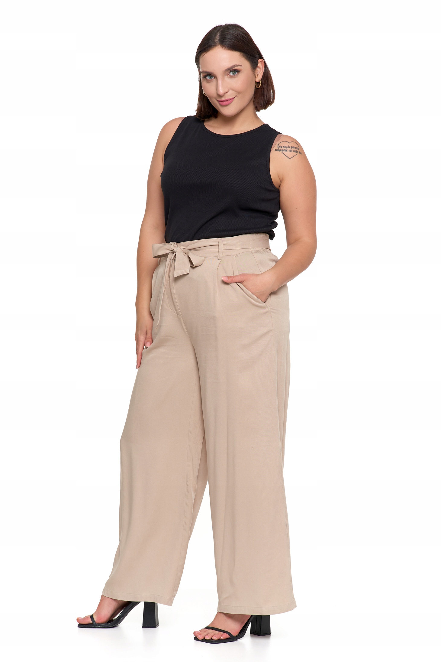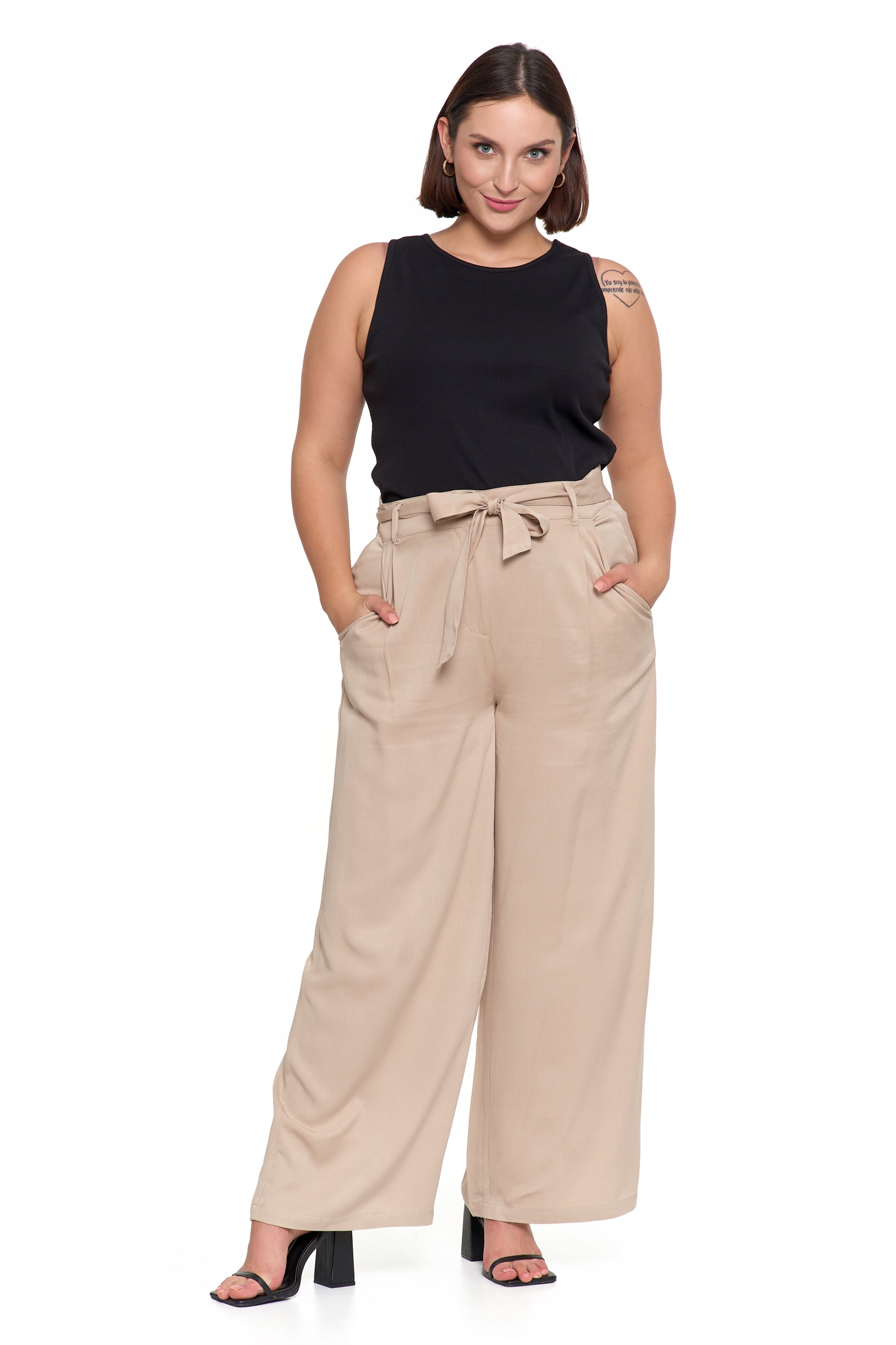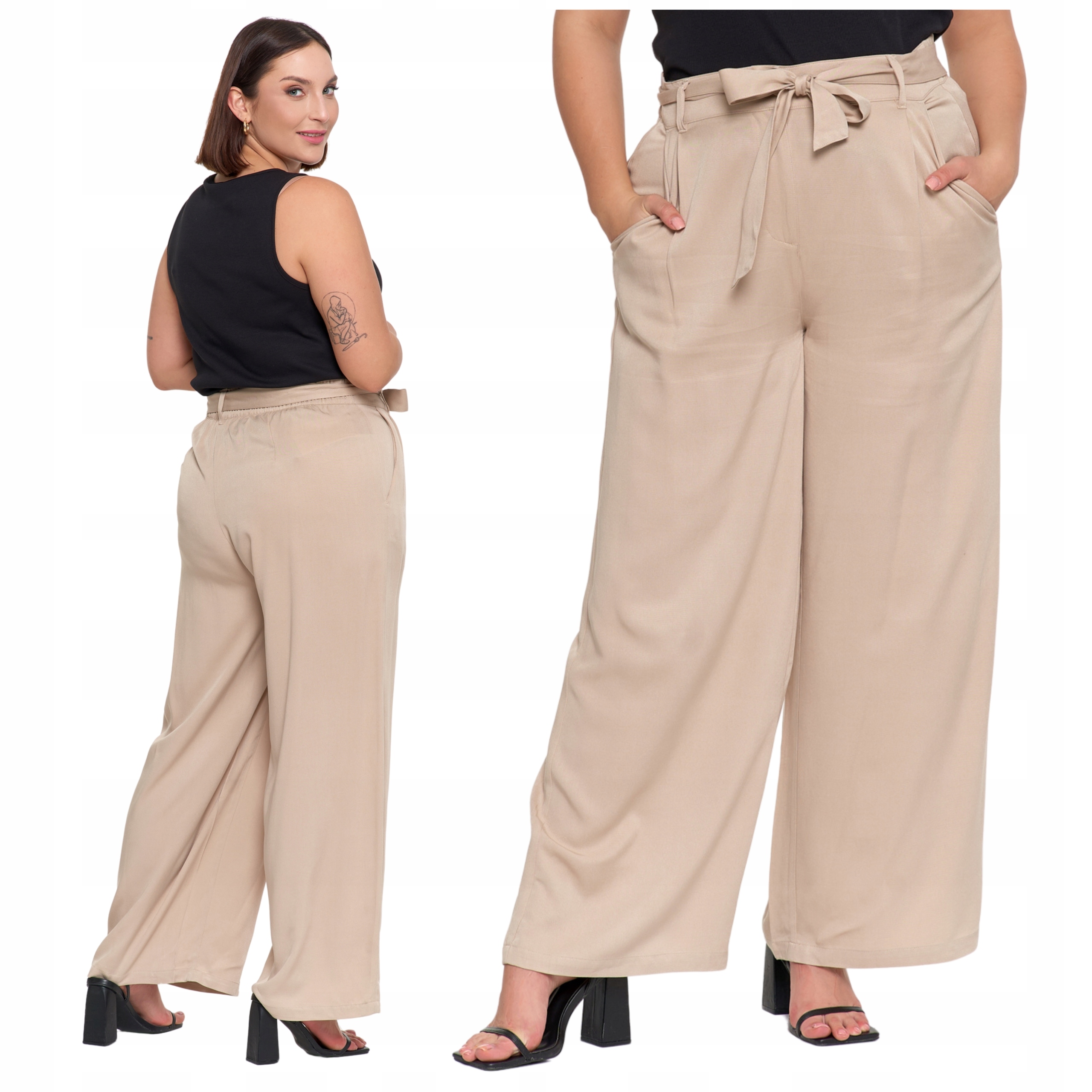 Eleganckie SPODNIE DAMSKIE Szerokie Gładkie Wysoki Stan Przewiewne MORAJ