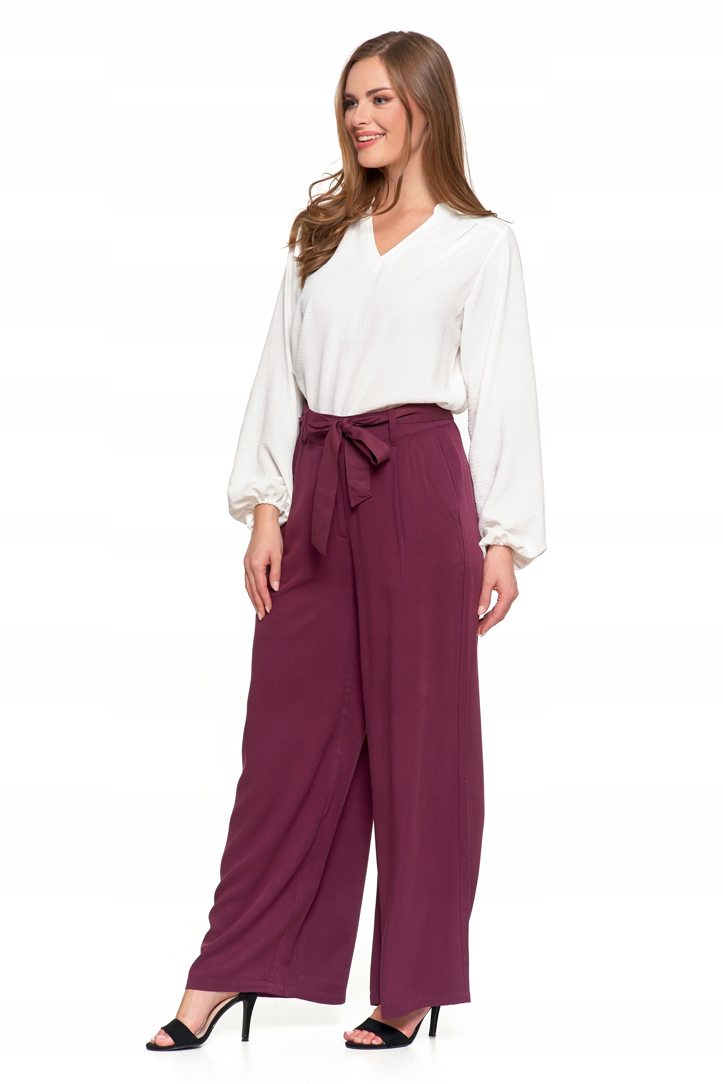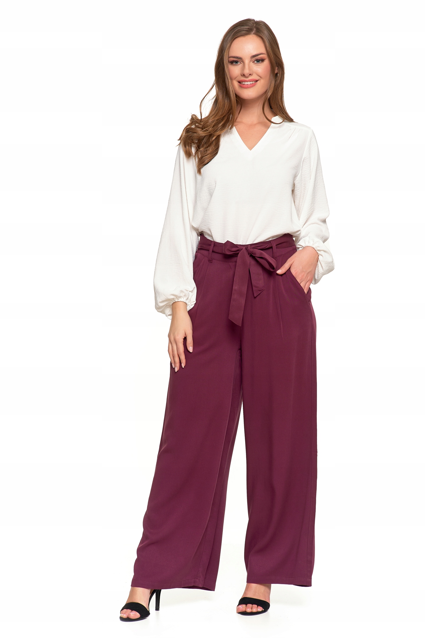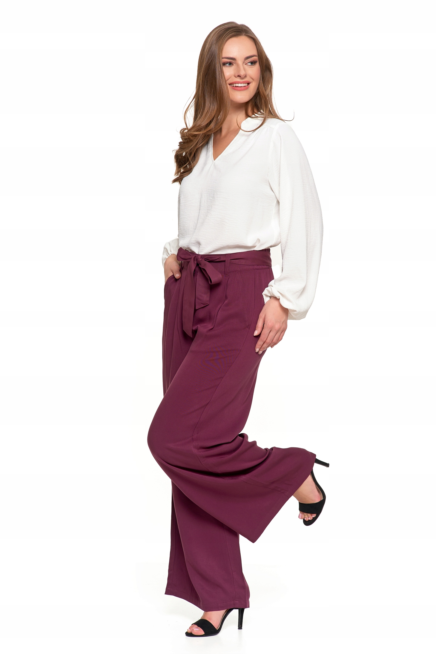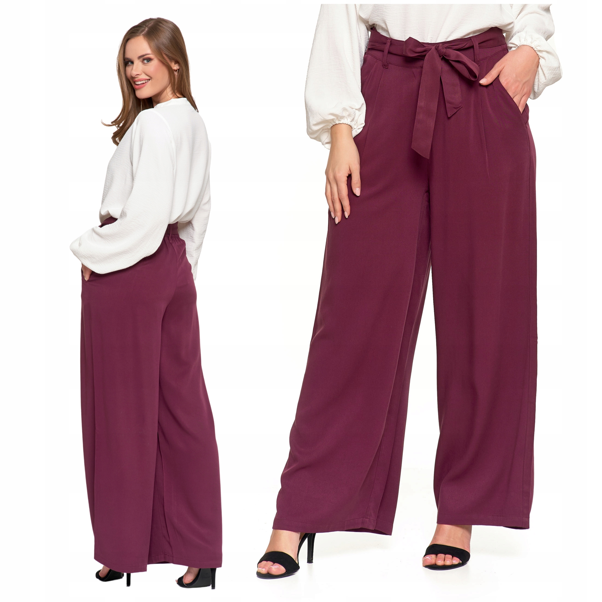 Eleganckie SPODNIE DAMSKIE Szerokie Gładkie Wysoki Stan Przewiewne MORAJ
