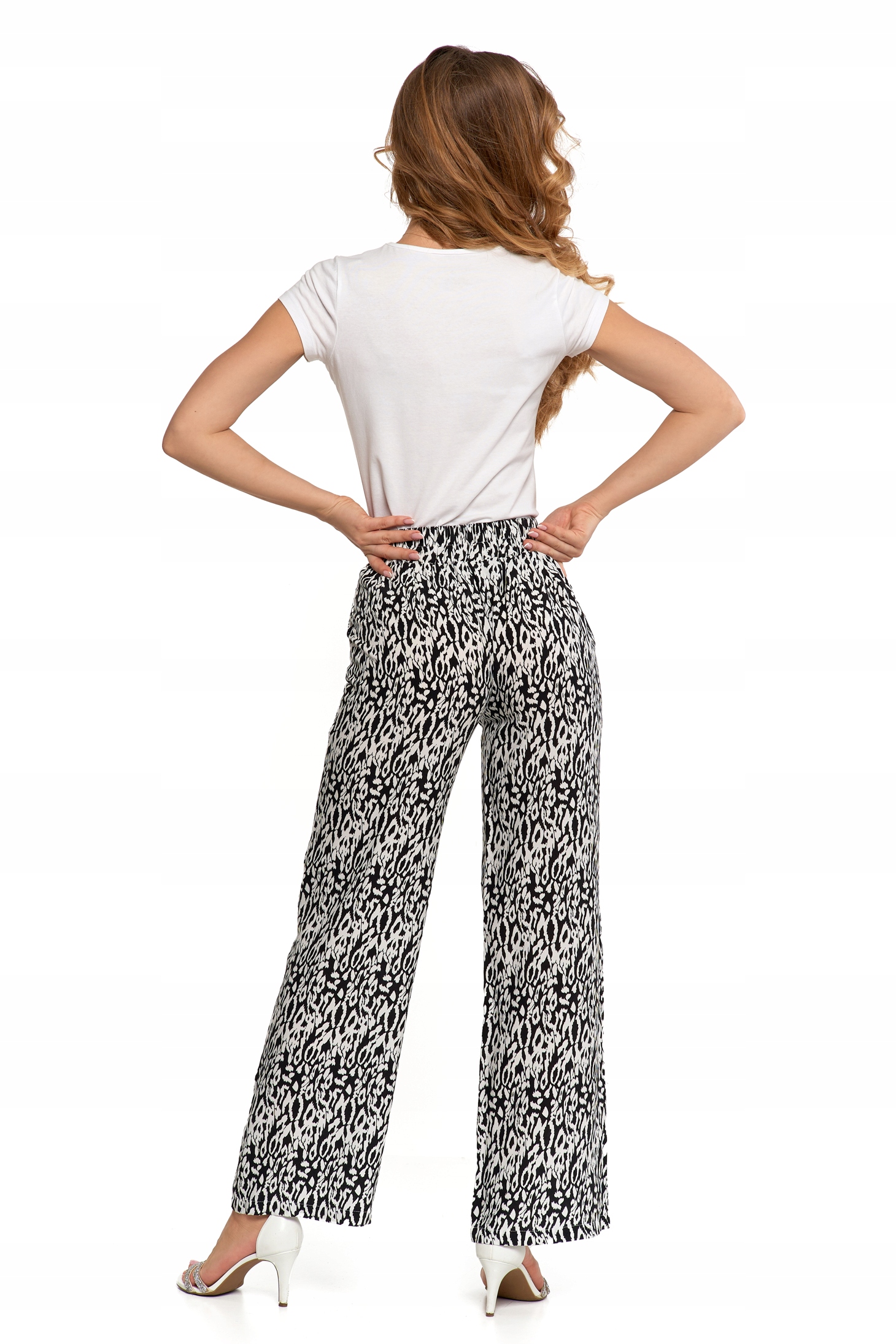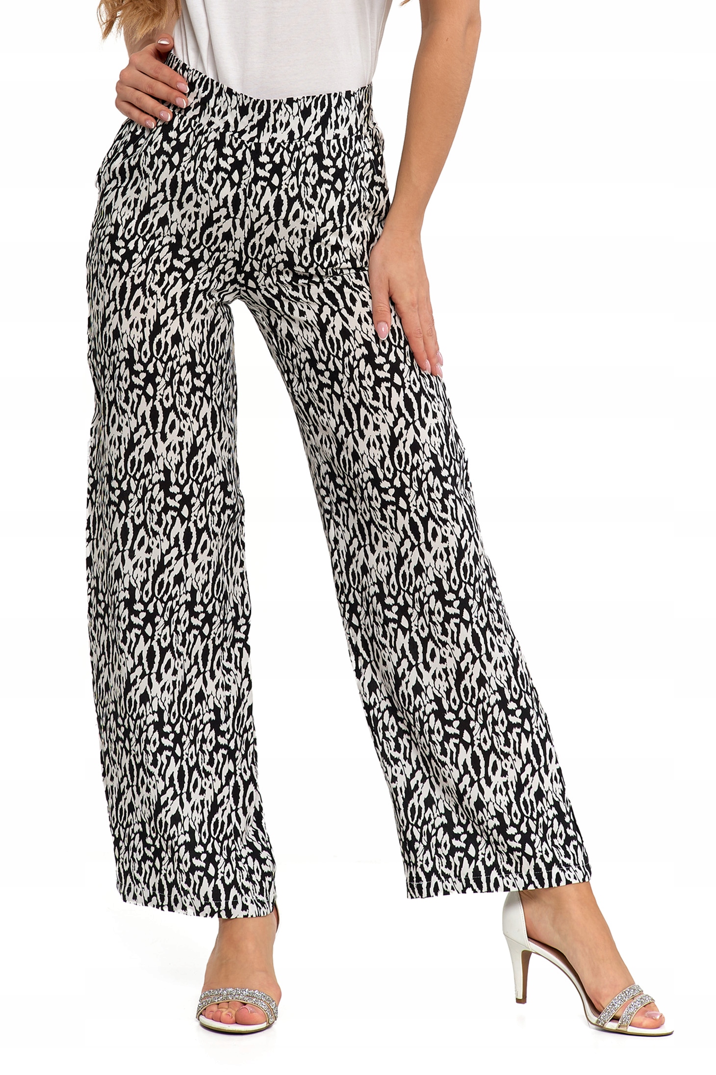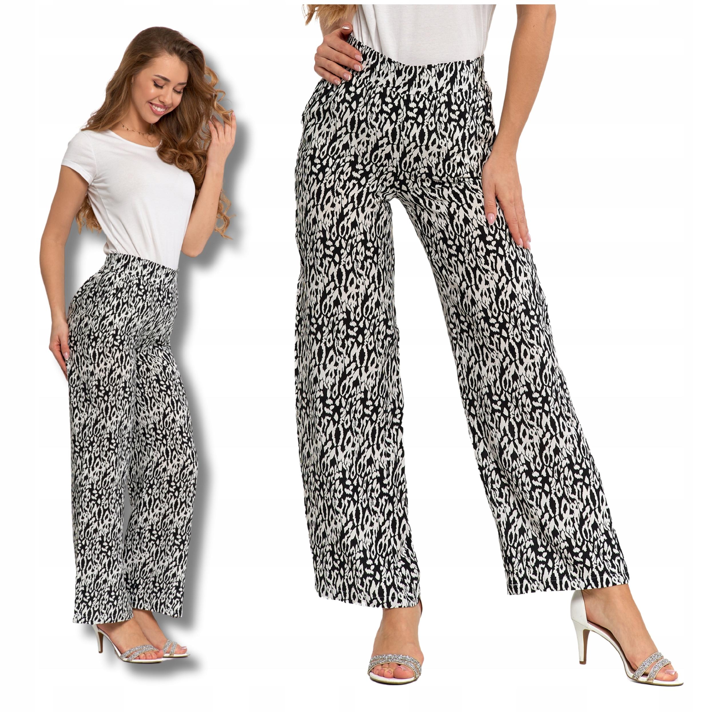 Eleganckie SPODNIE DAMSKIE SZEROKIE PROSTE NOGAWKI Wzorzyste MORAJ