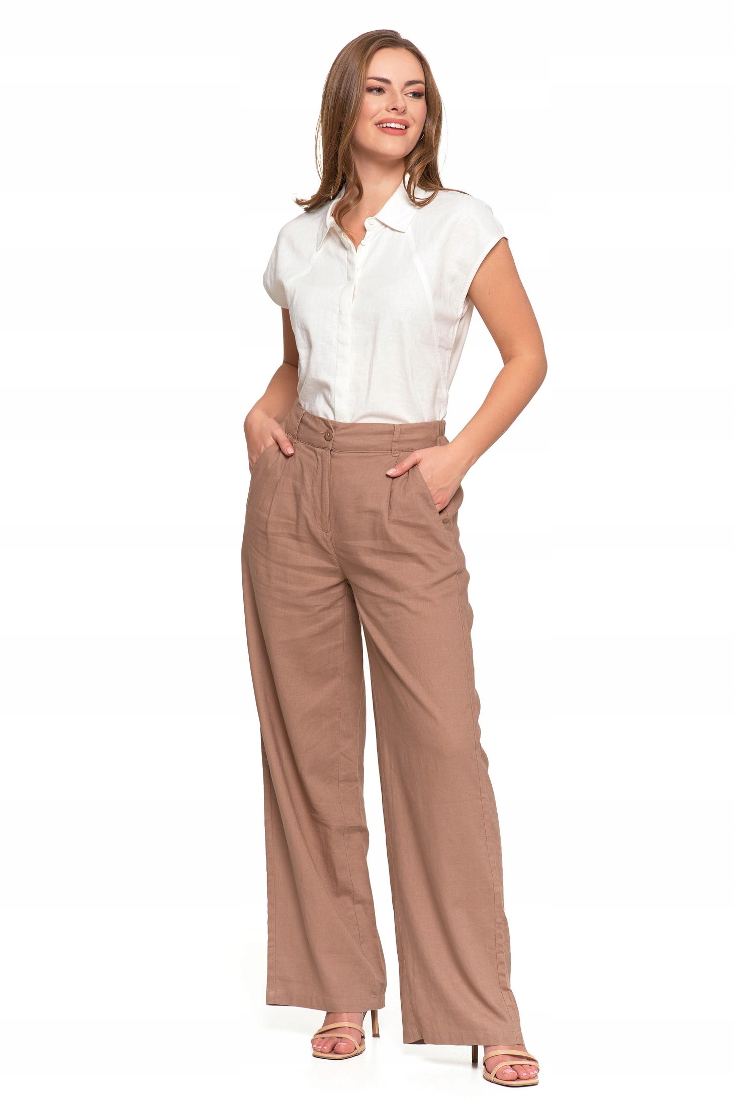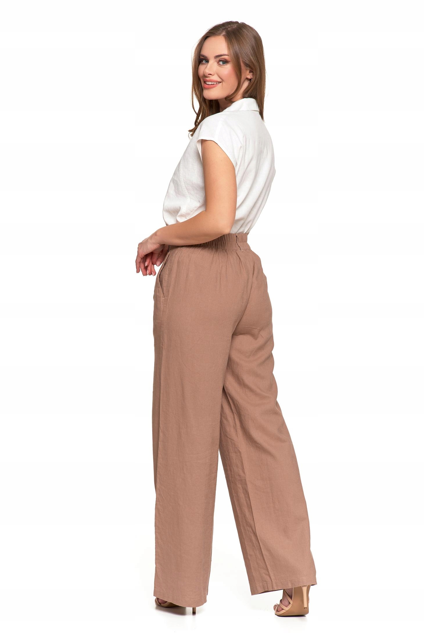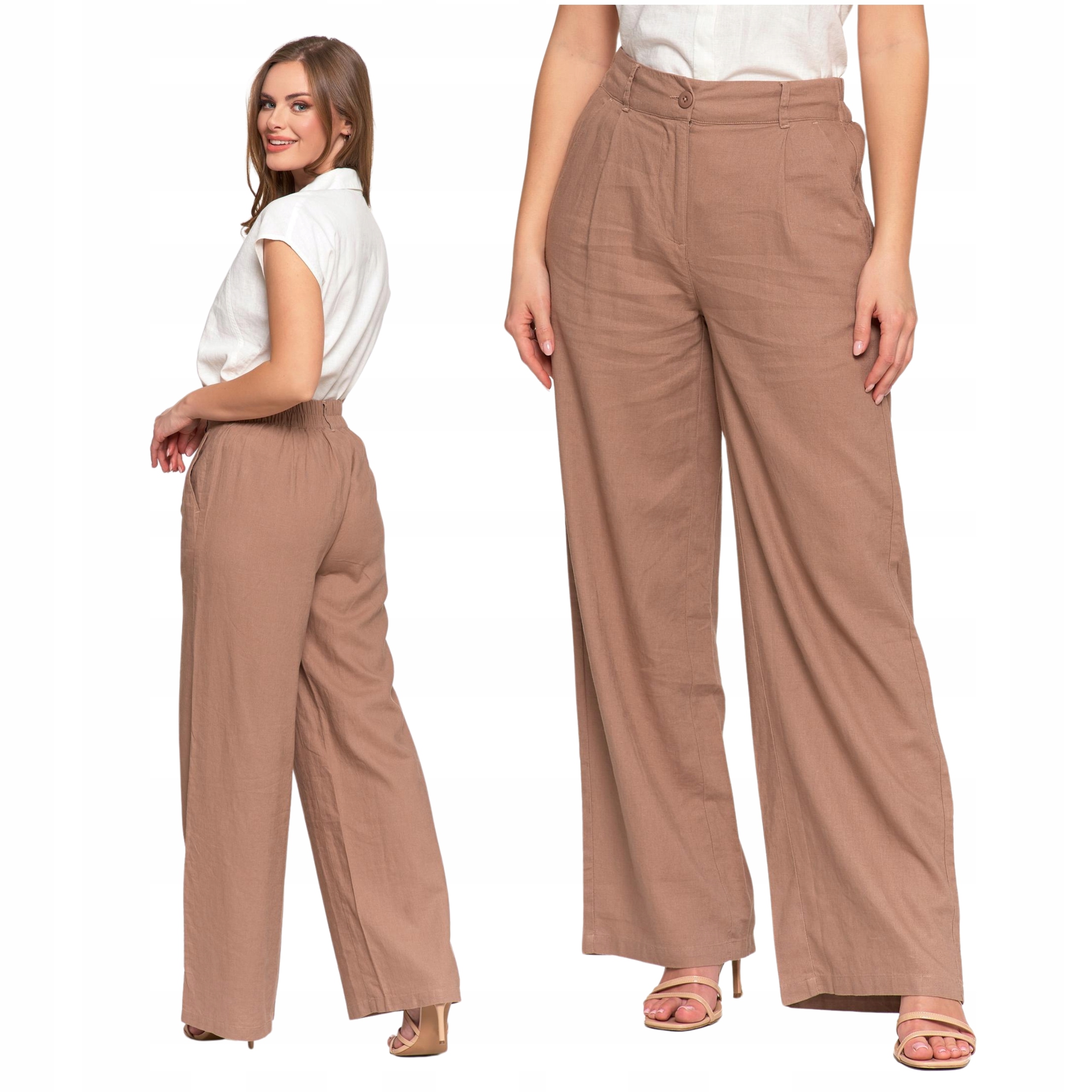 Eleganckie Spodnie Lniane Damskie z Wysokim Stanem Szerokie Modne MORAJ