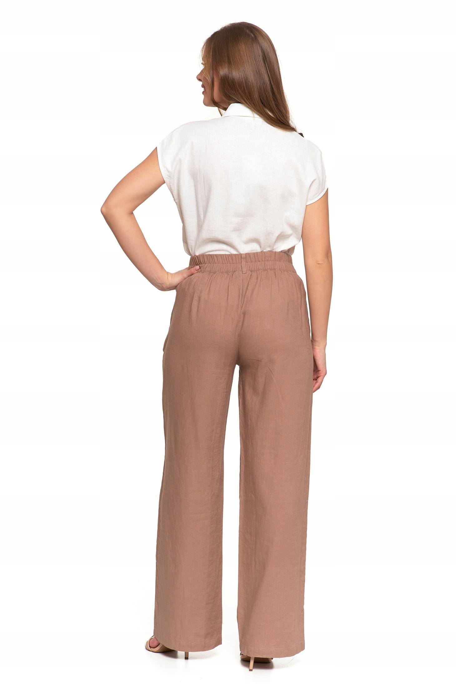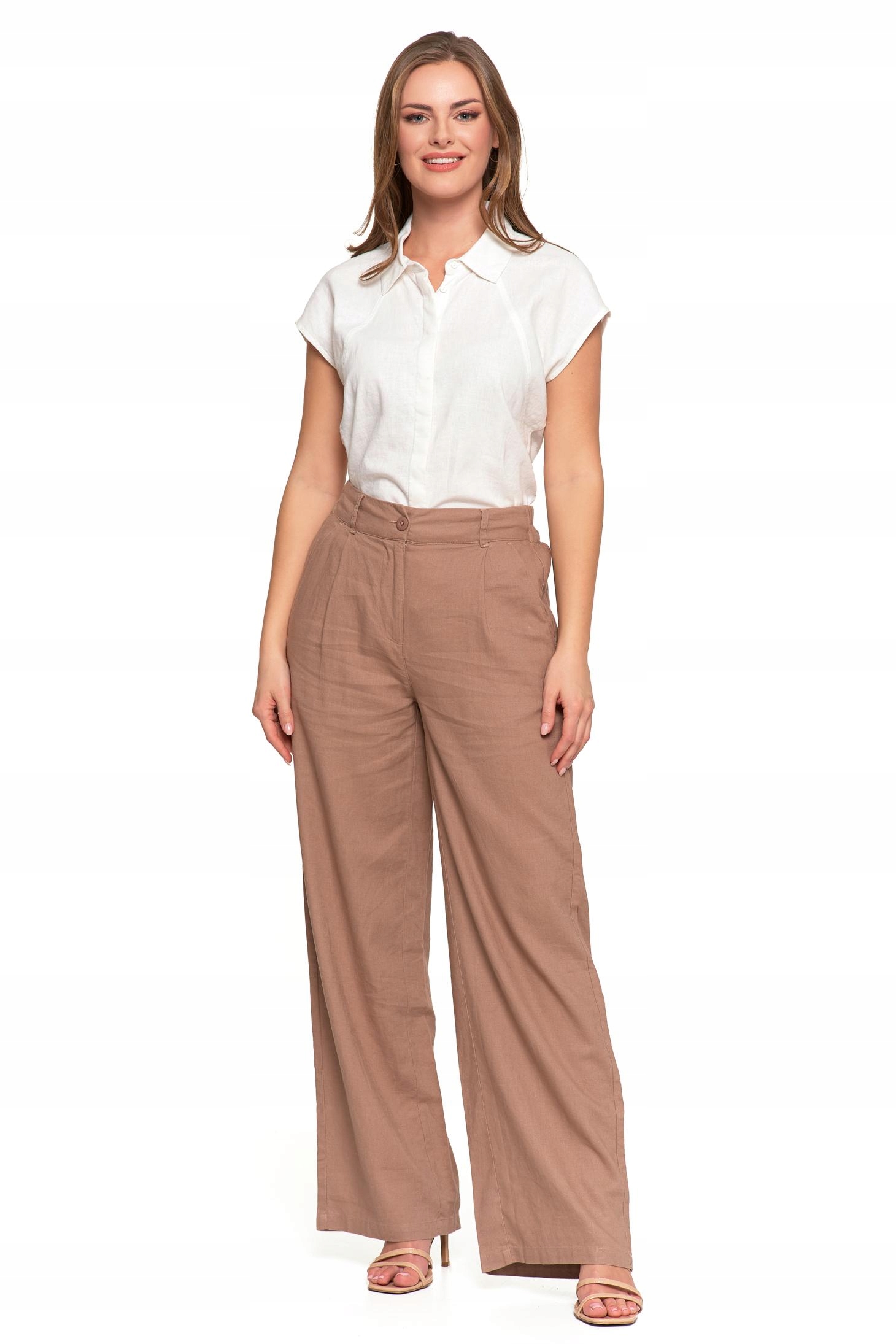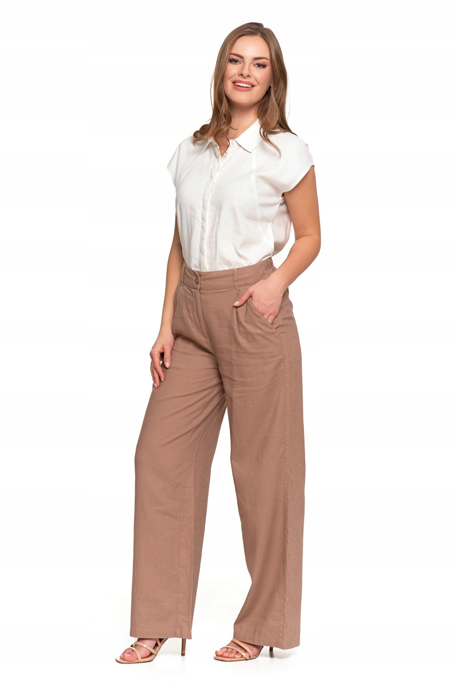 Eleganckie Spodnie Lniane Damskie z Wysokim Stanem Szerokie Modne MORAJ