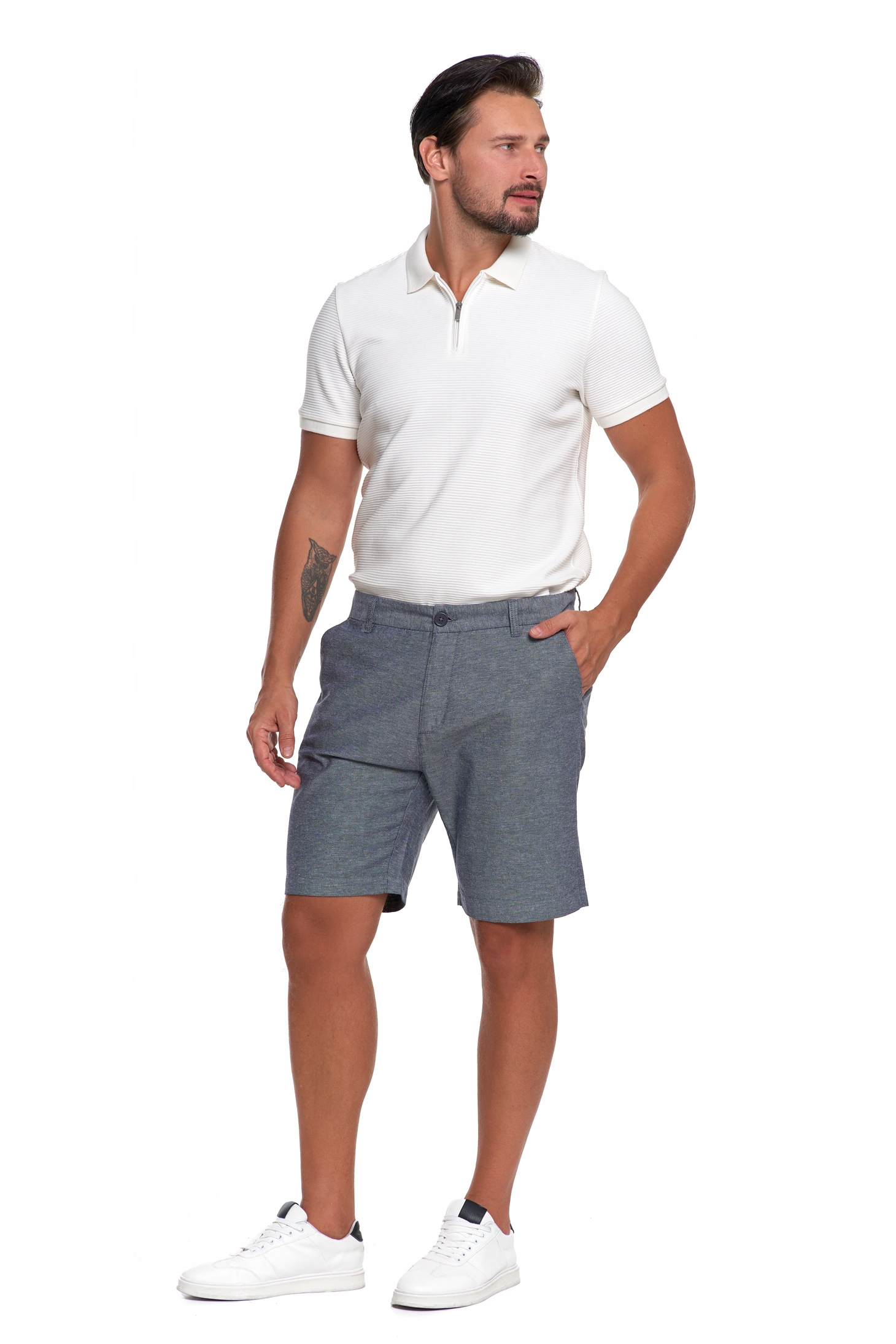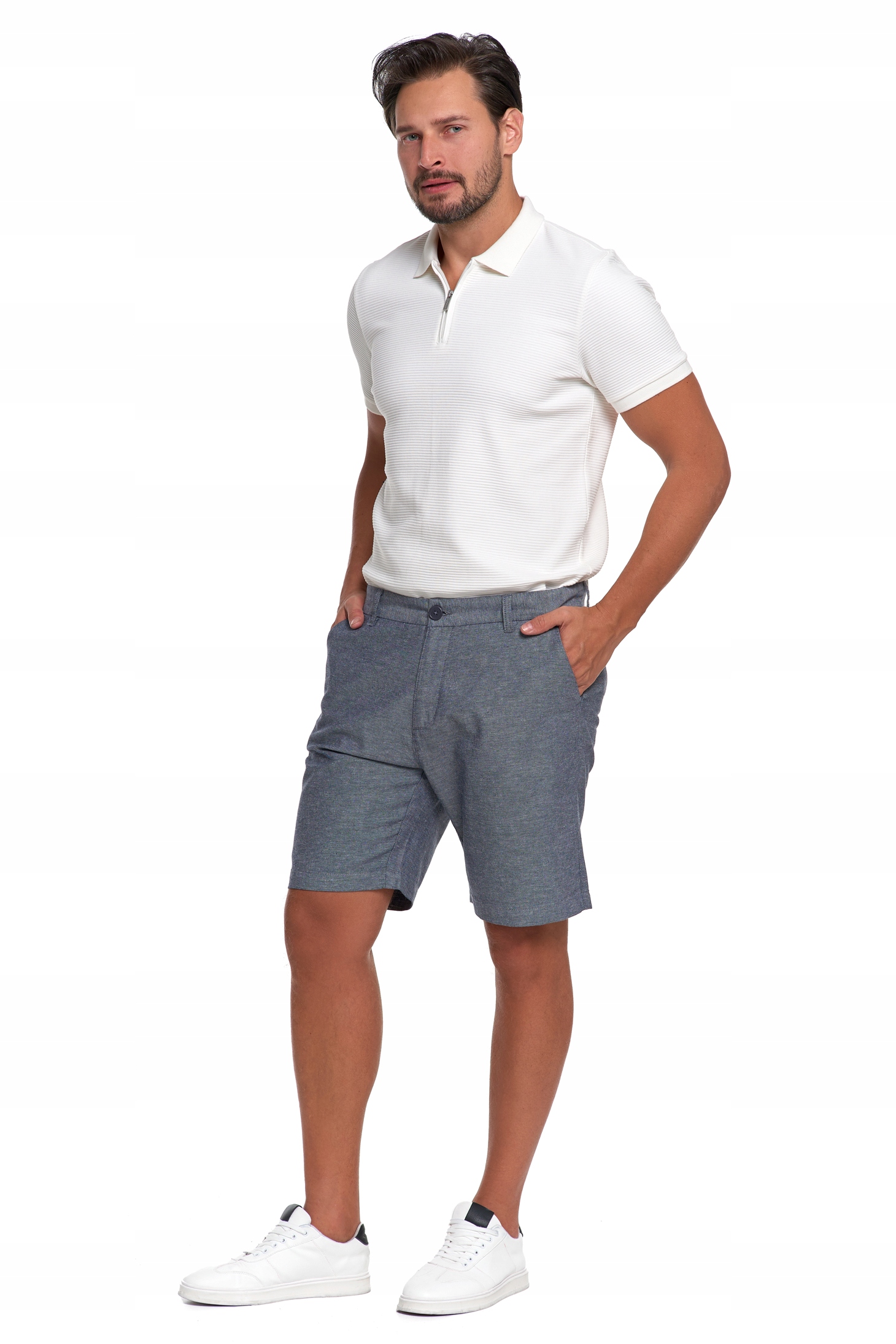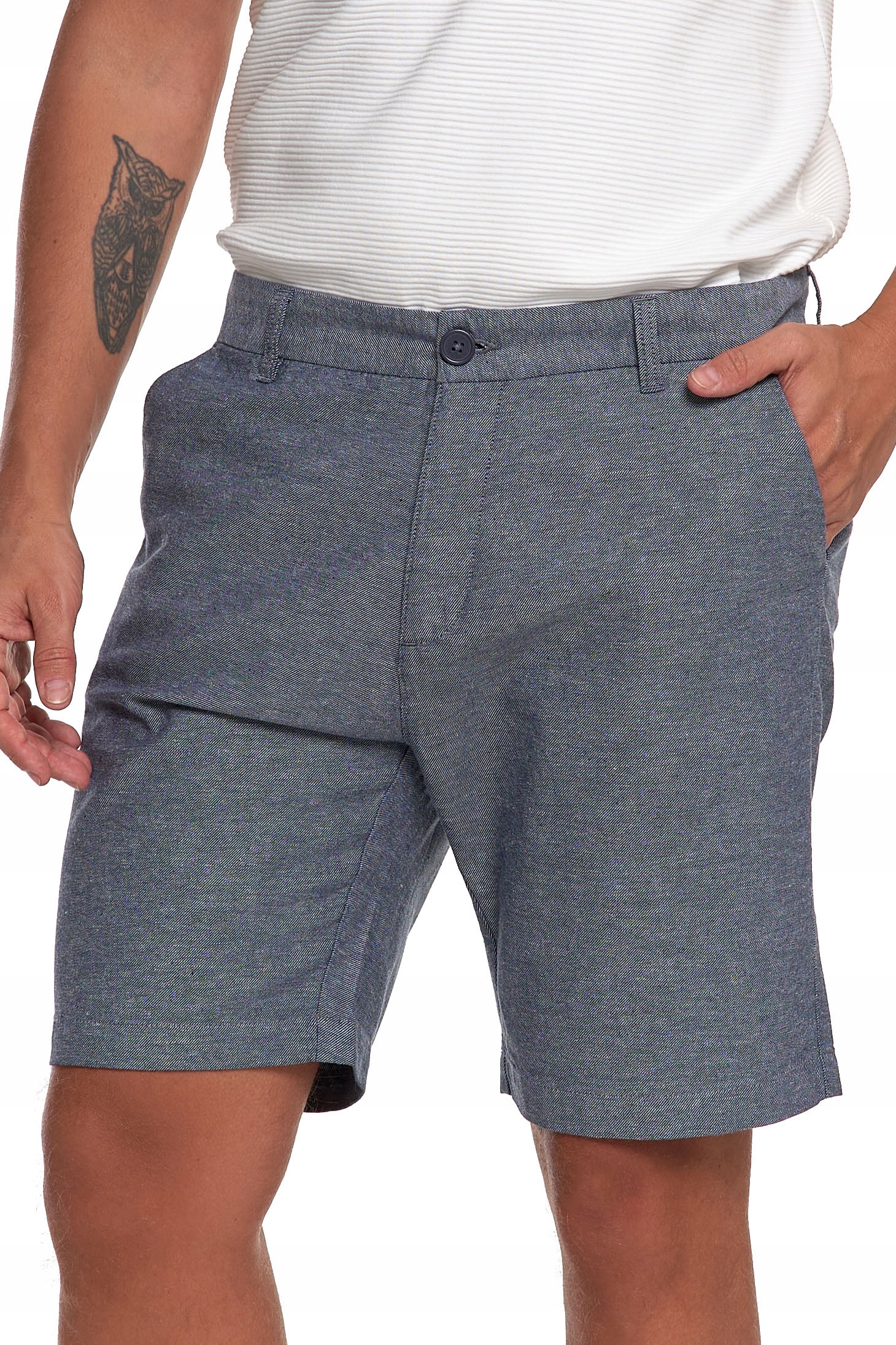 Gładki materiał bez wzorów i detale inspirowane spodniami chino nadają szortom elegancki wygląd. Świetnie wyglądają w połączeniu z koszulą, polówką lub zwykłym T-shirtem.