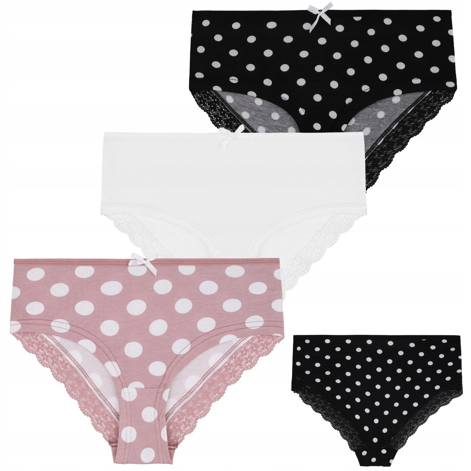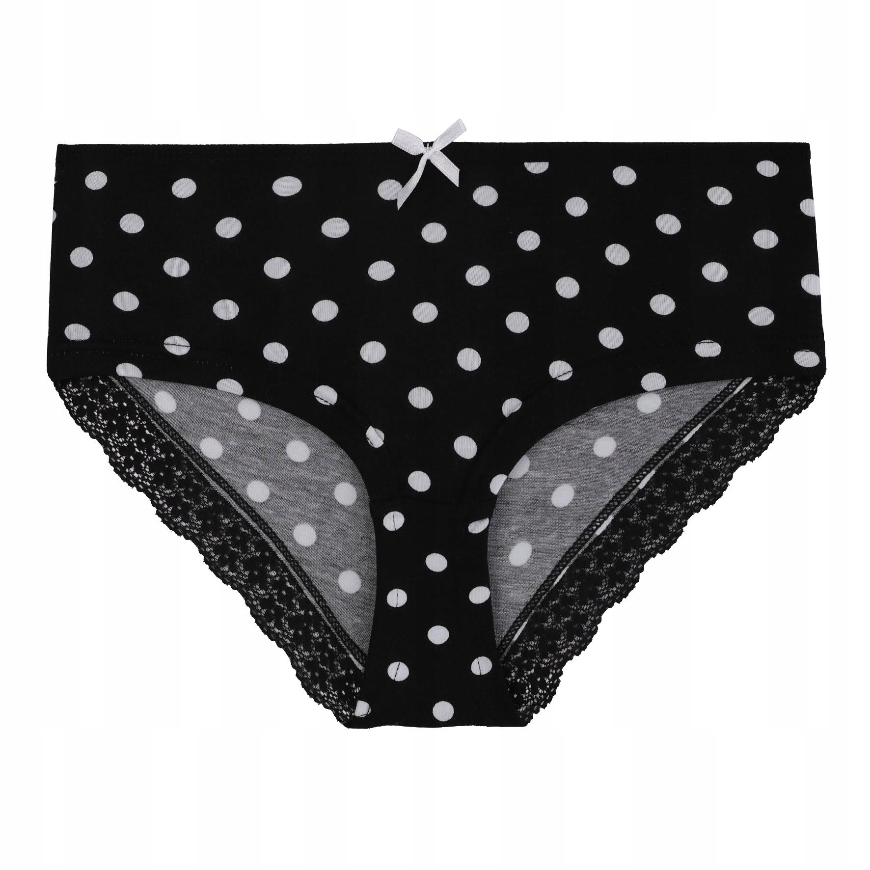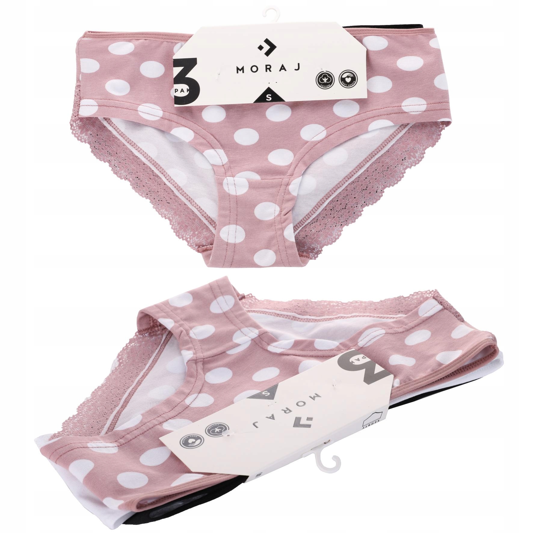 Figi Damskie Klasyczne Bawełna Bikini Majtki Groszki Koronka MORAJ 3 PAK