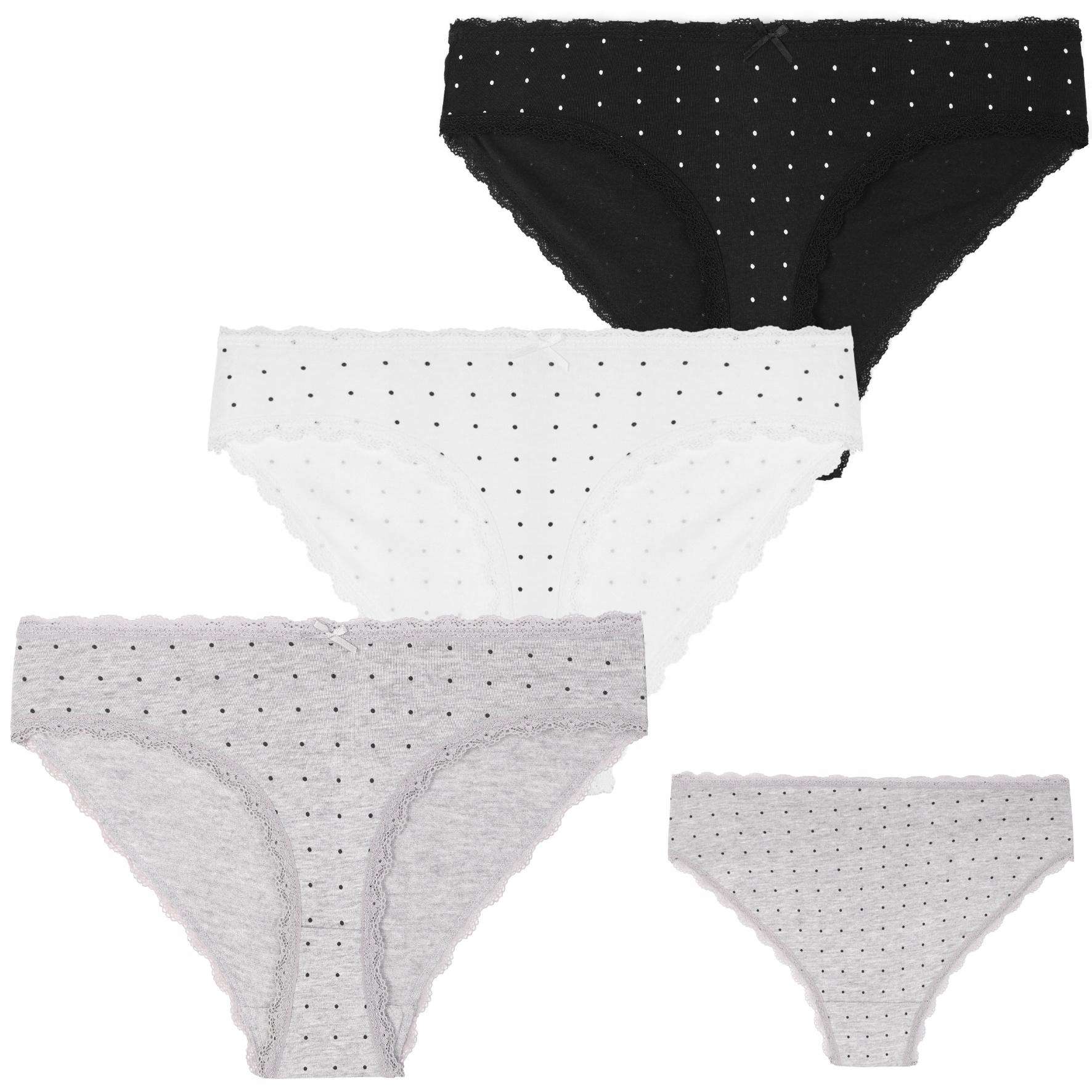 Figi Damskie Klasyczne Bawełniane Bikini Koronka w Kropki MORAJ 3-pak