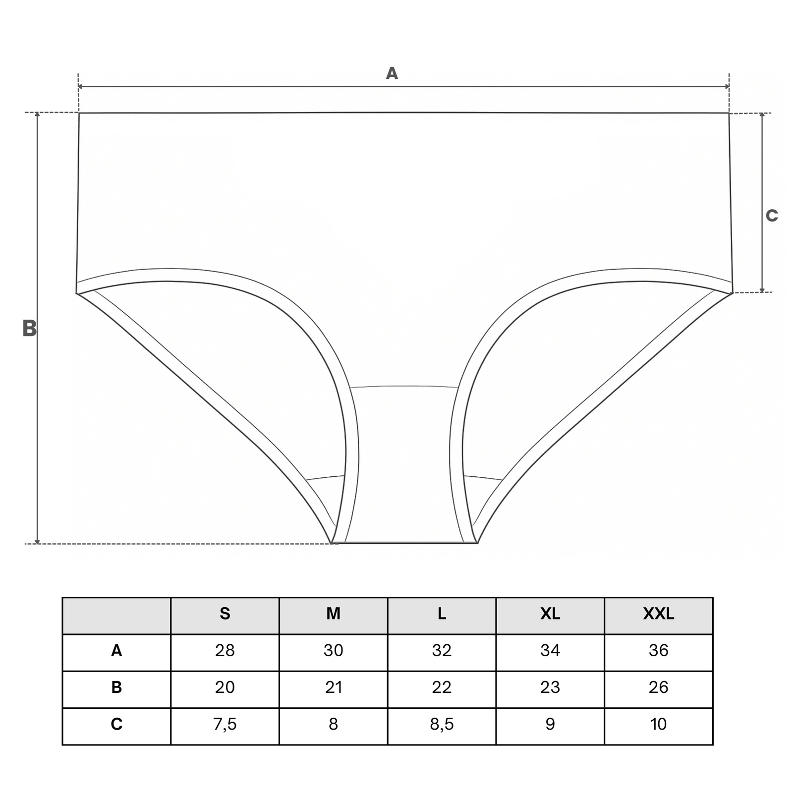 • Klasyczny krój: Sprawdzony fason, który zapewnia pełne krycie pośladków i idealne dopasowanie do sylwetki.