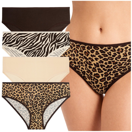 FIGI DAMSKIE KLASYCZNE ZWIERZĘCY WZÓR GŁADKIE MAJTKI MORAJ 4-PAK