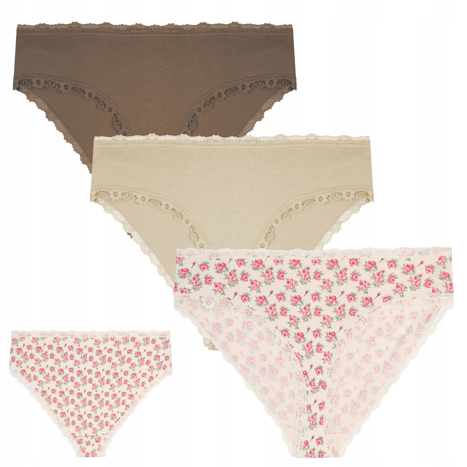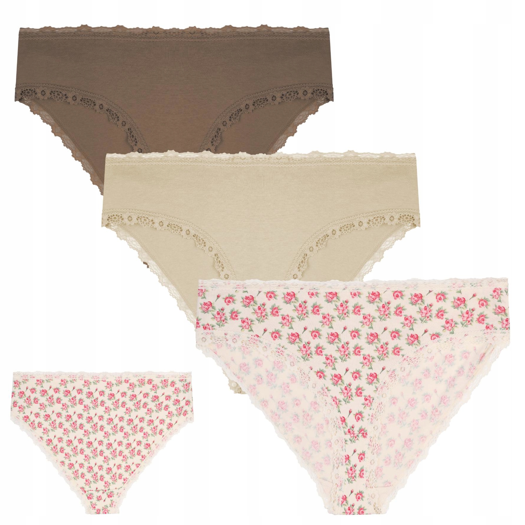 FIGI DAMSKIE Z KORONKĄ SUBTELNY WZÓR W KWIATY MODNE BAWEŁNA MORAJ 3-PAK
