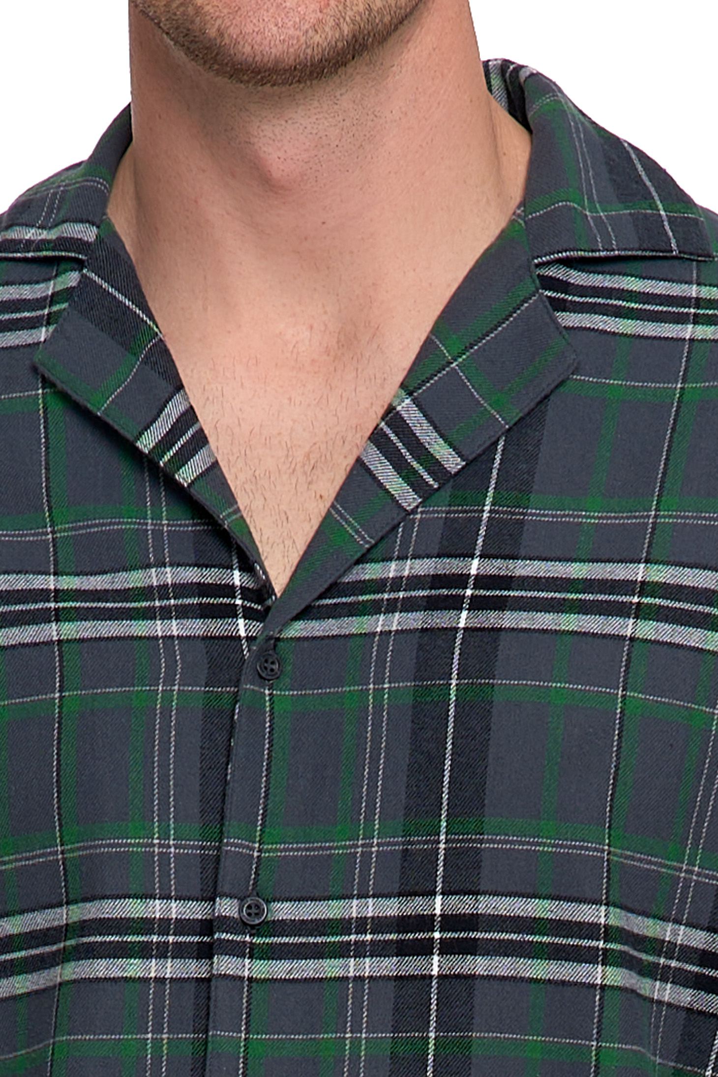 Ta klasyczna męska piżama to kwintesencja domowego komfortu i tradycyjnego stylu. Wykonana z miękkiej i przyjemnej w dotyku bawełnianej flaneli, zapewnia przyjemne ciepło, komfort snu i pełną swobodę ruchów.