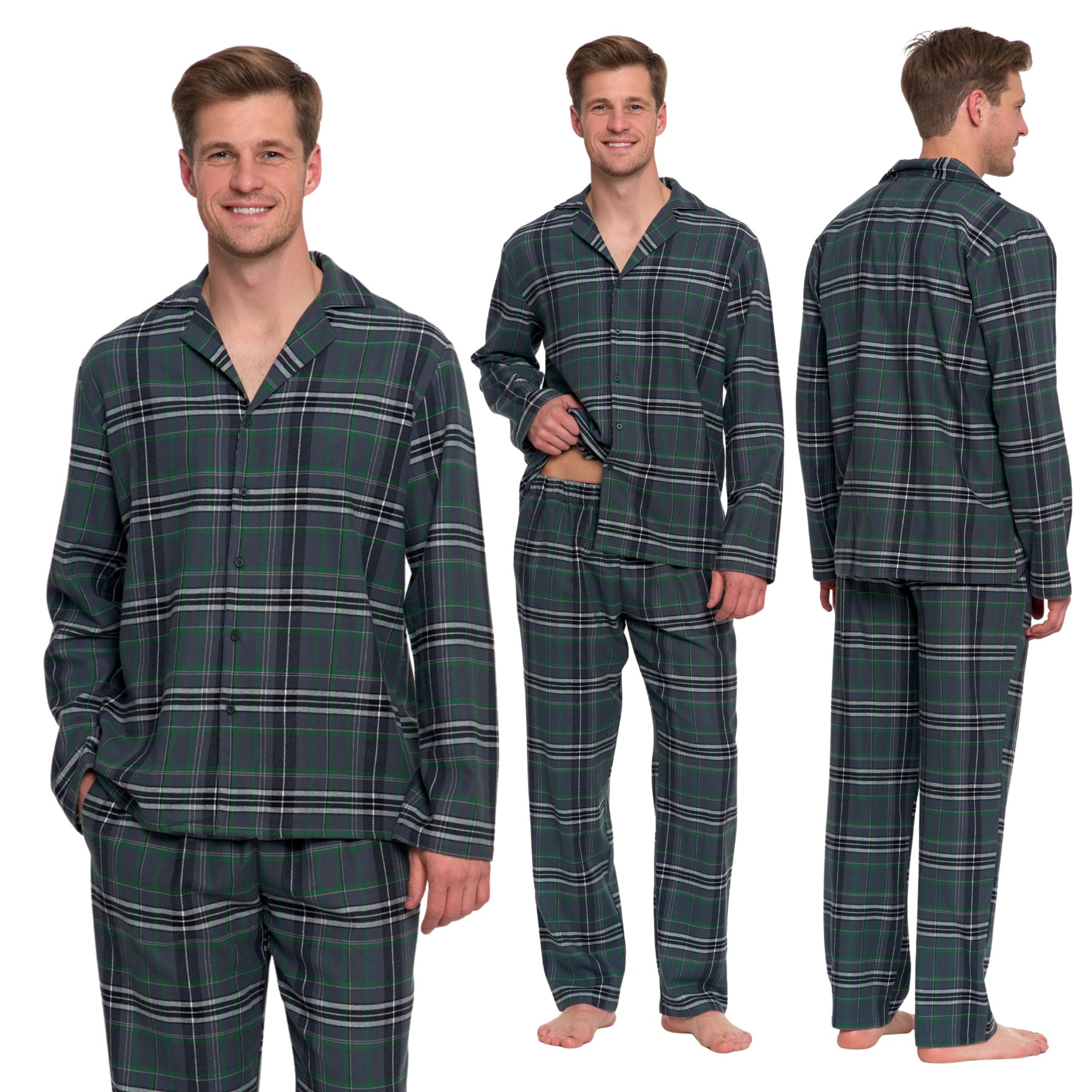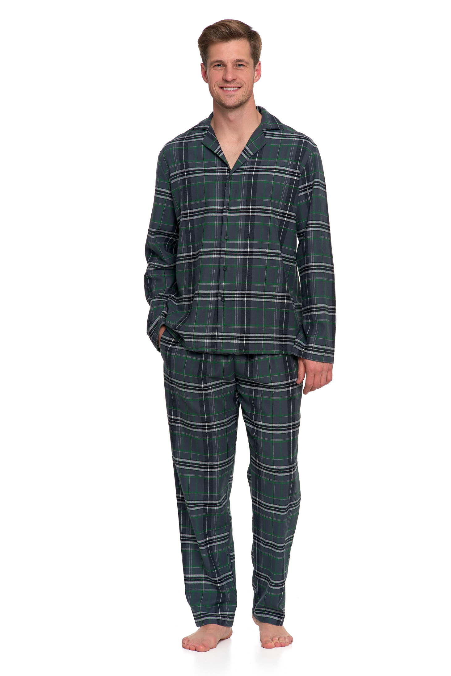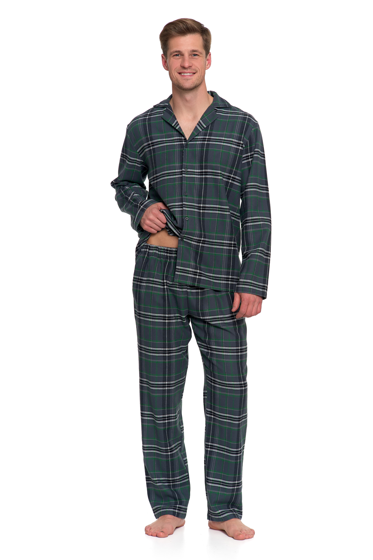 FLANELOWA PIŻAMA MĘSKA DWUCZĘŚCIOWA DŁUGI RĘKAW I SPODNIE W KRATĘ MORAJ