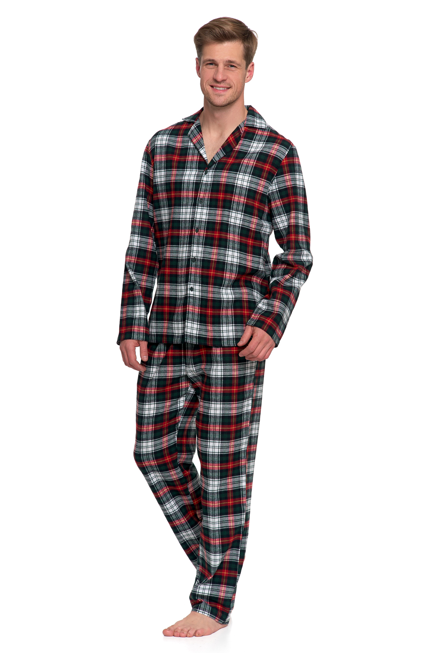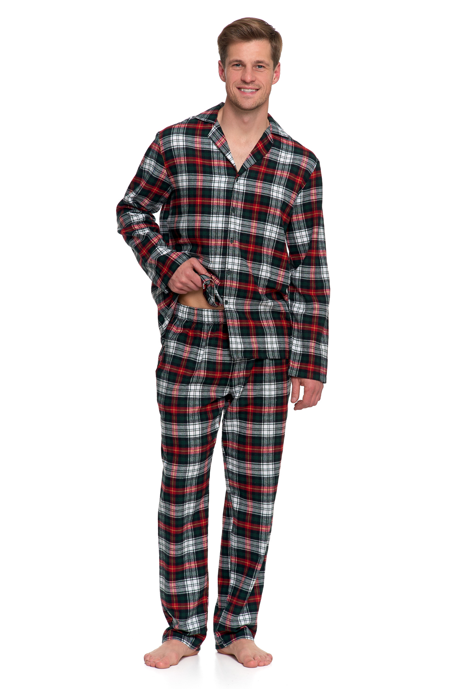 FLANELOWA PIŻAMA MĘSKA DWUCZĘŚCIOWA DŁUGI RĘKAW I SPODNIE W KRATĘ MORAJ