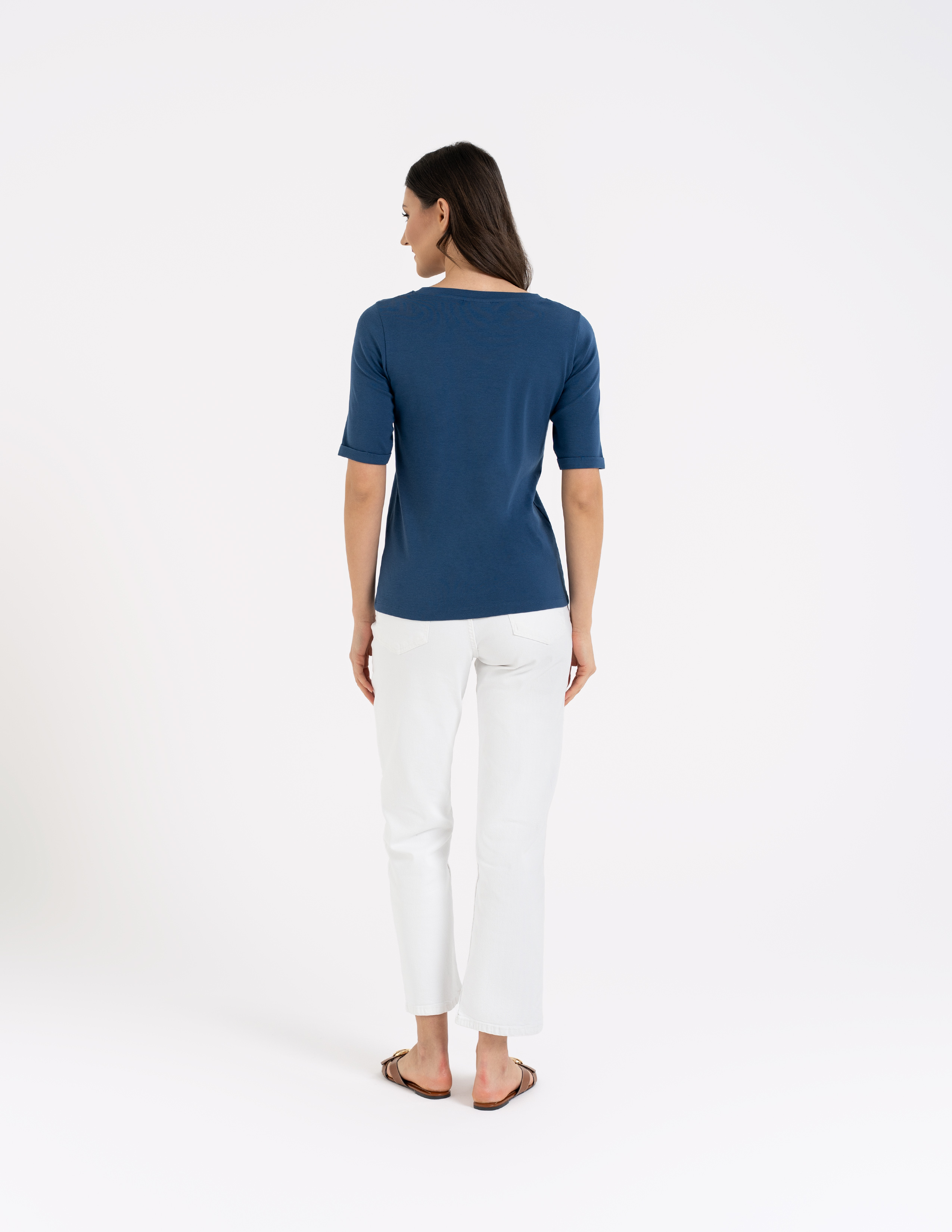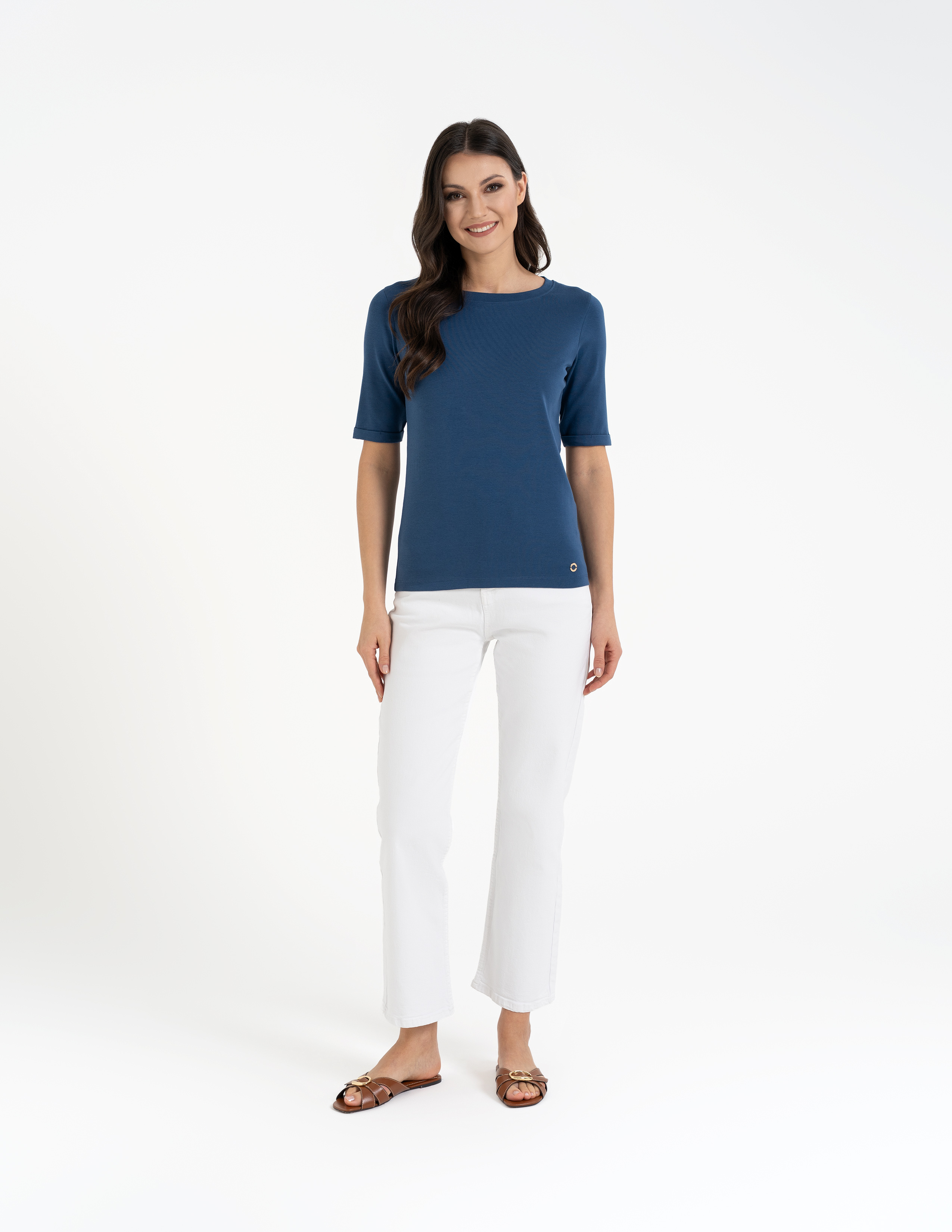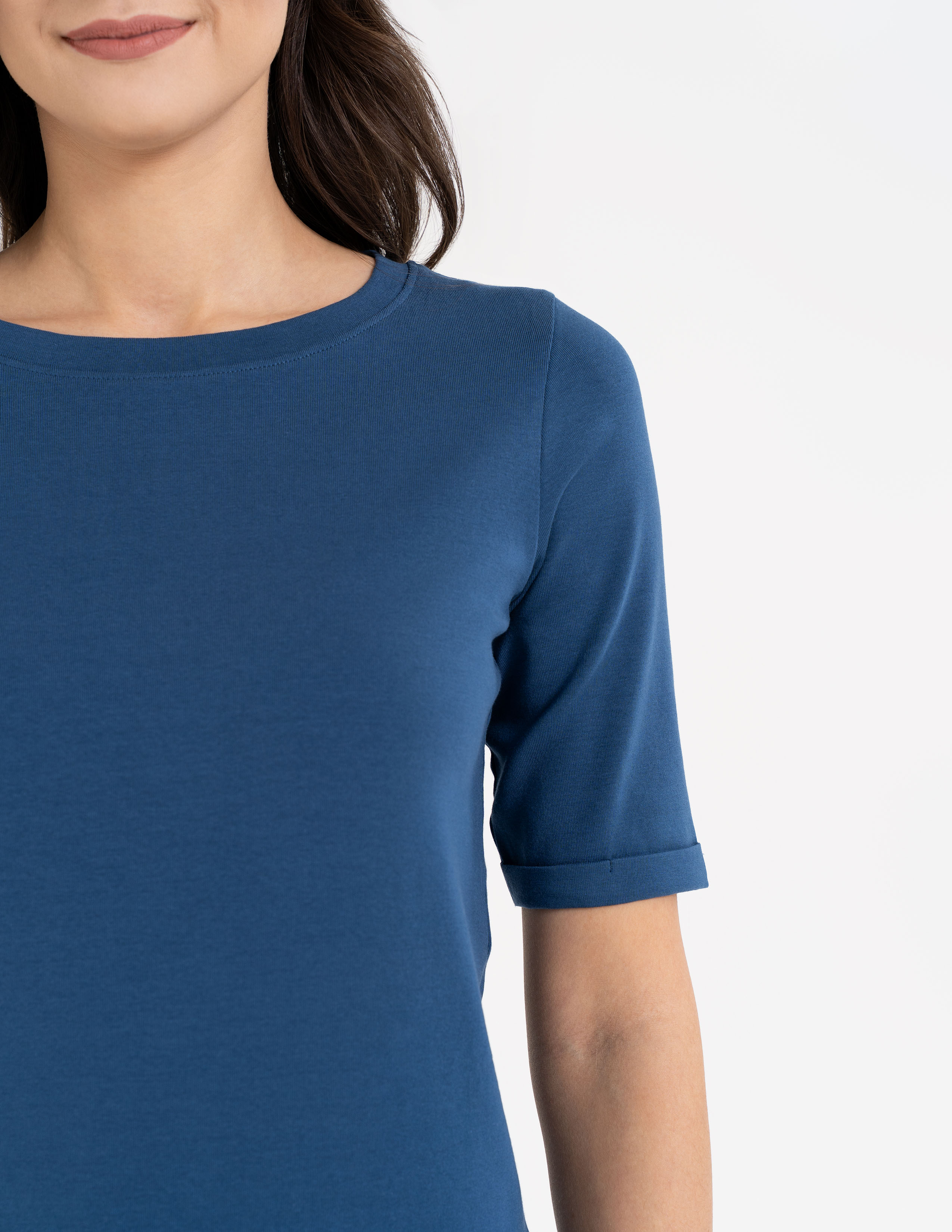 Klasyka w odświeżonym wydaniu! Ta bluzka to idealny kompromis między tradycyjnym t-shirtem a elegancką bluzką. Wyjątkowy rękaw o długości do łokcia nadaje jej nowoczesnego szyku, sprawiając, że jest to propozycja idealna dla kobiet szukających stylowej bazy, która pasuje na każdą okazję.