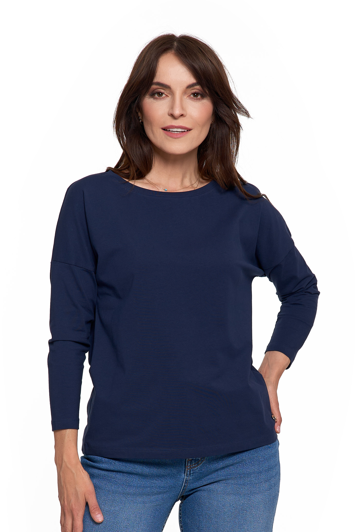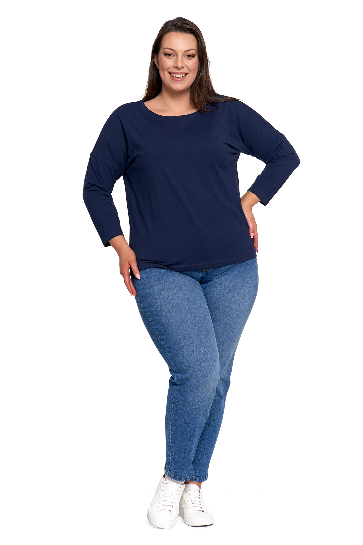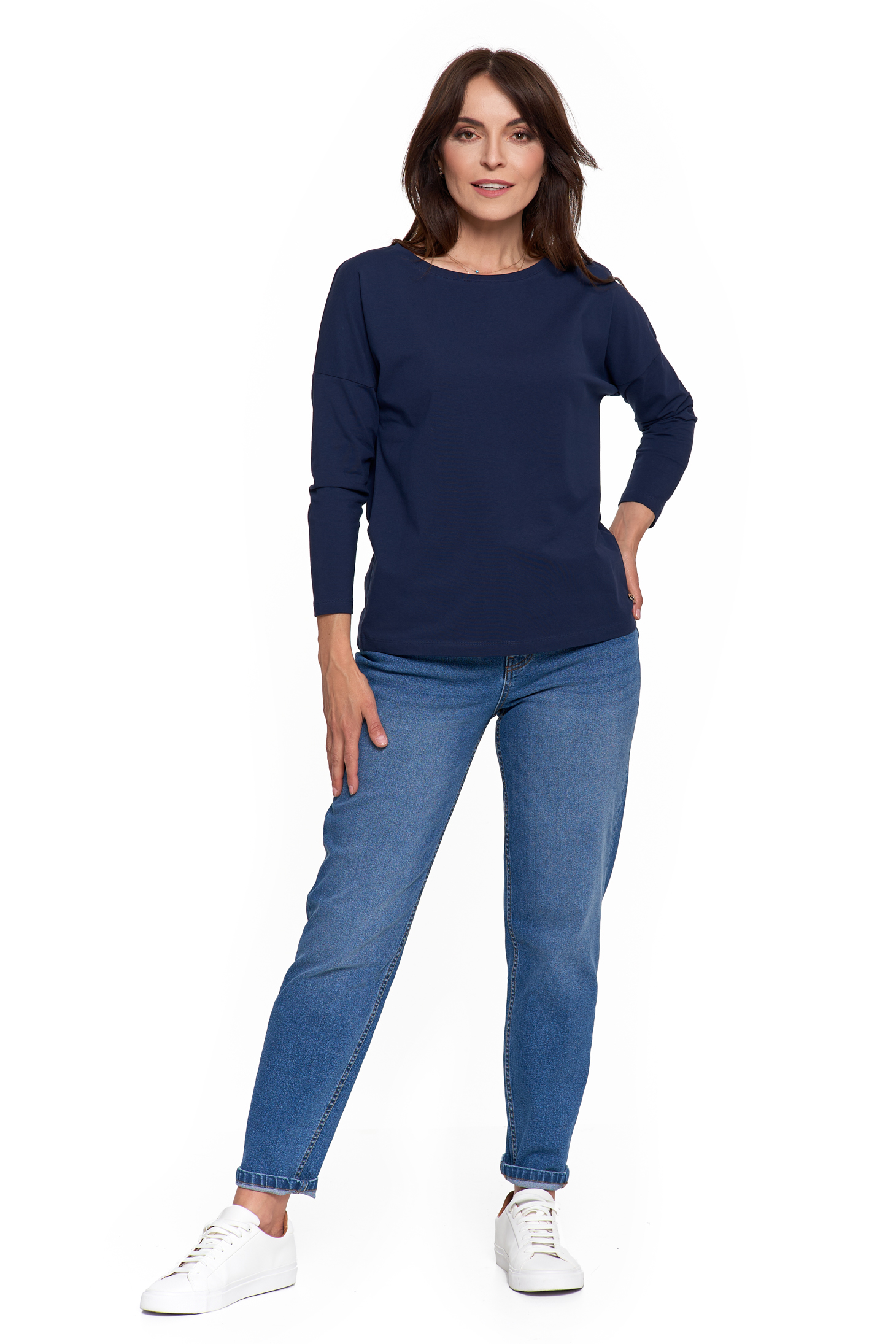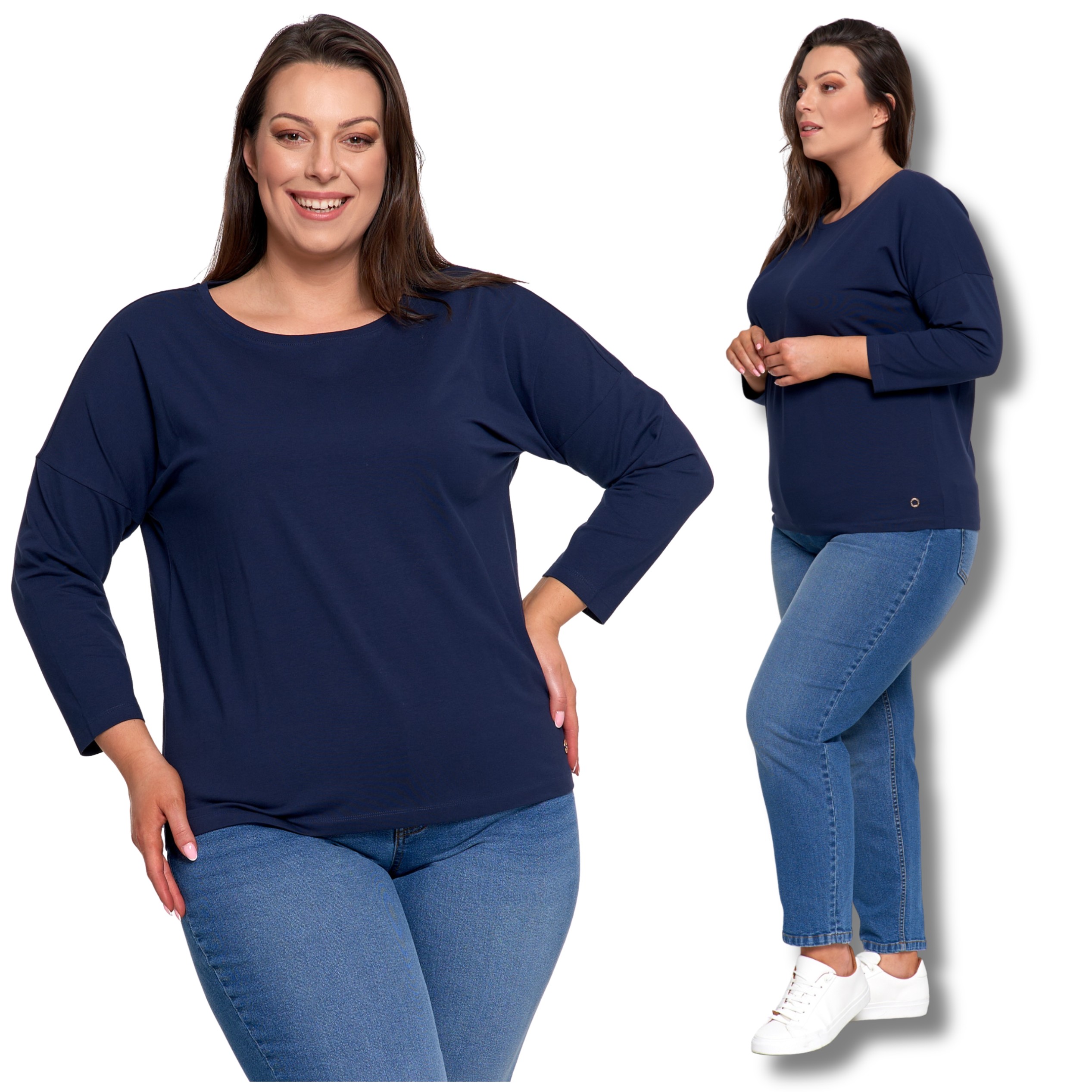 - Rękaw 3/4 – praktyczny i uniwersalny na każdą porę roku.