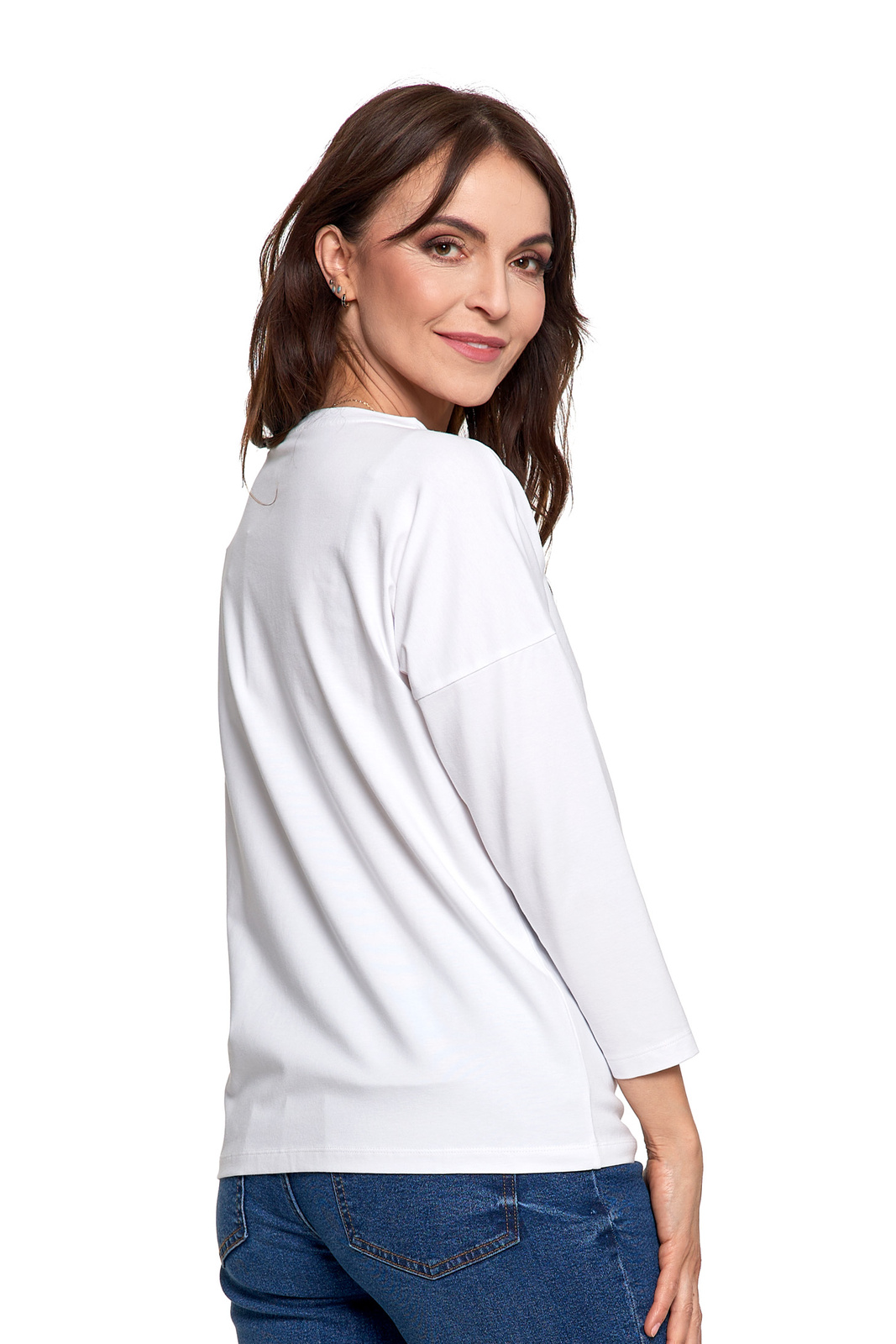 GŁADKA BLUZKA DAMSKA KOSZULKA Z 3/4 RĘKAWEM MODNA KLASYCZNA MORAJ