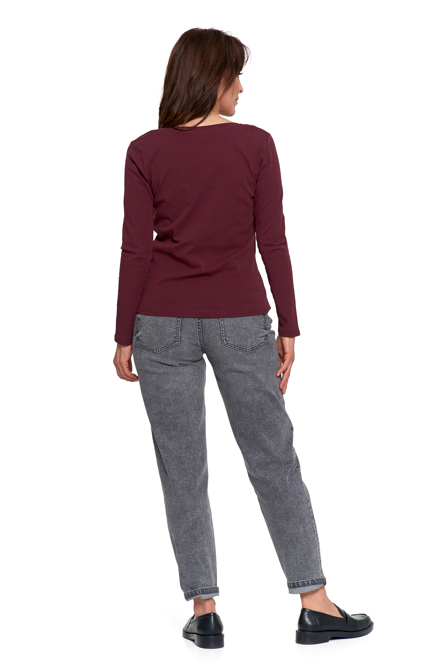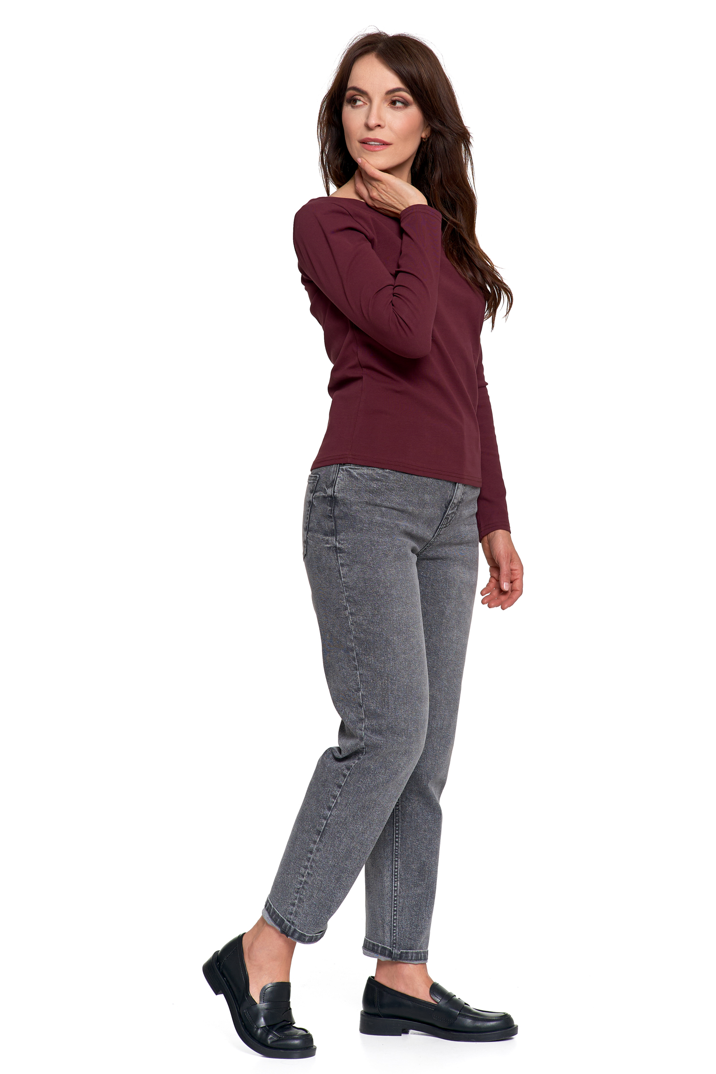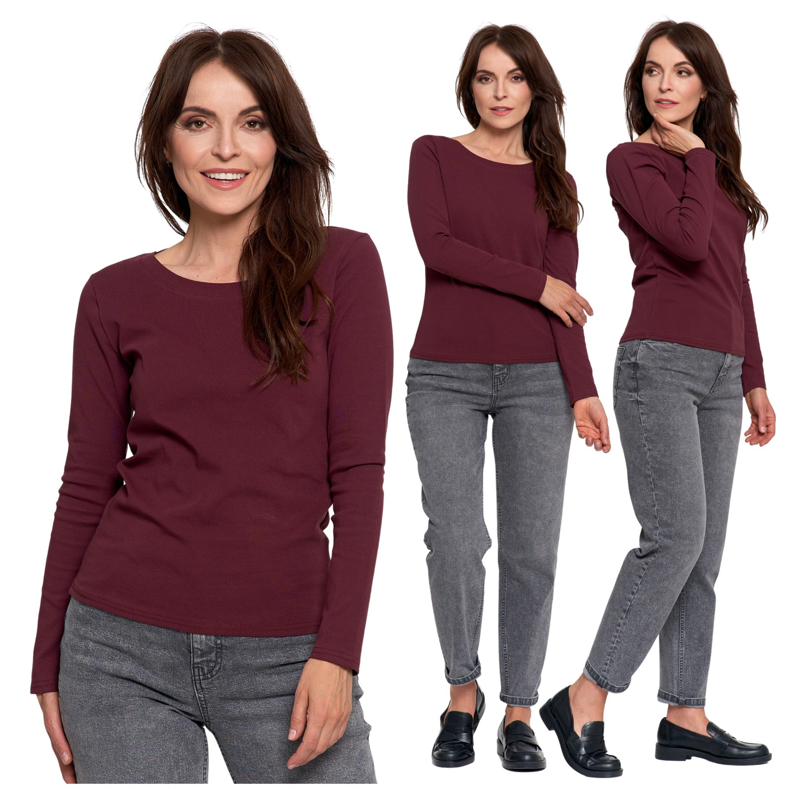 GŁADKA BLUZKA DAMSKA KOSZULKA Z DŁUGIM RĘKAWEM MODNA KLASYCZNA MORAJ