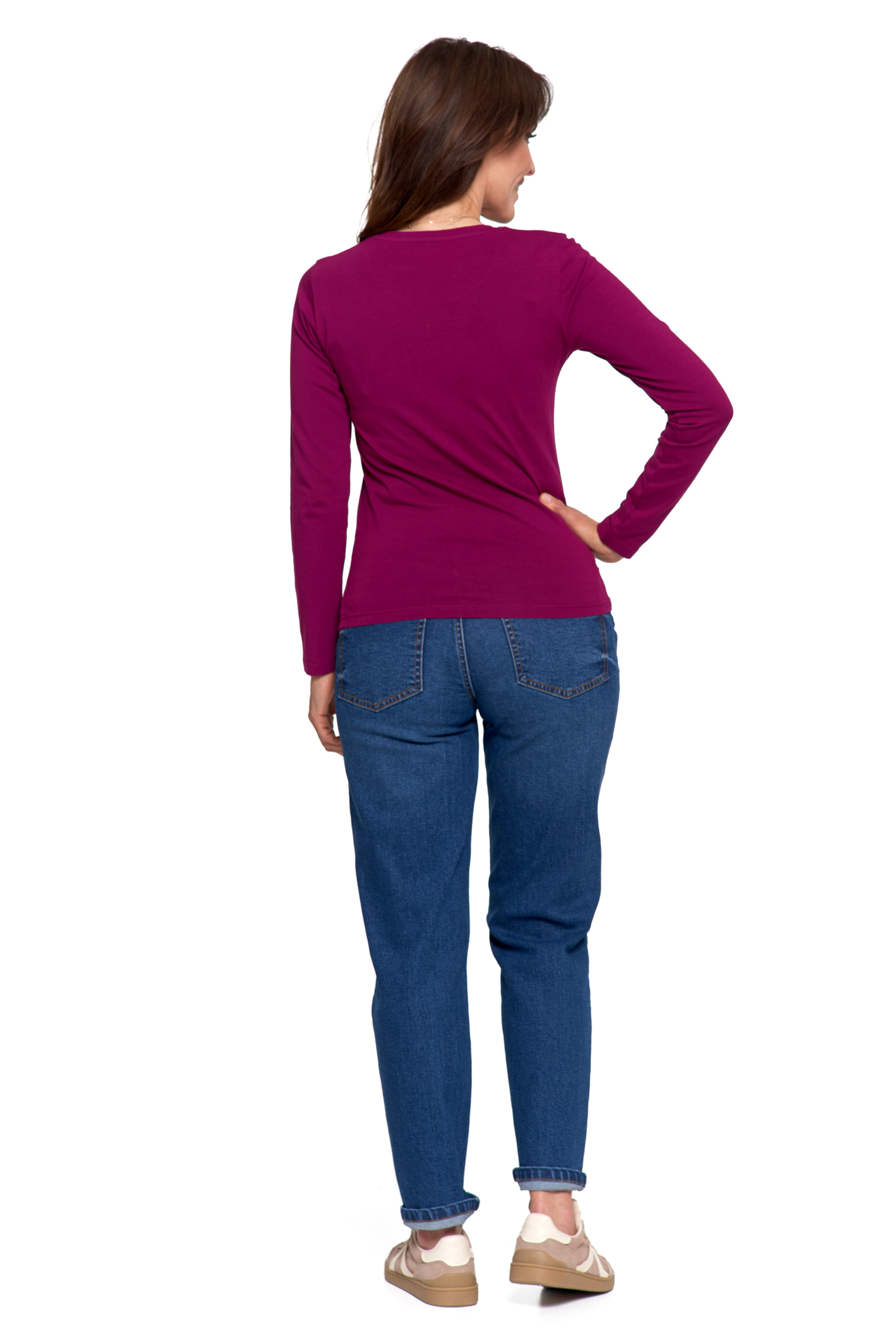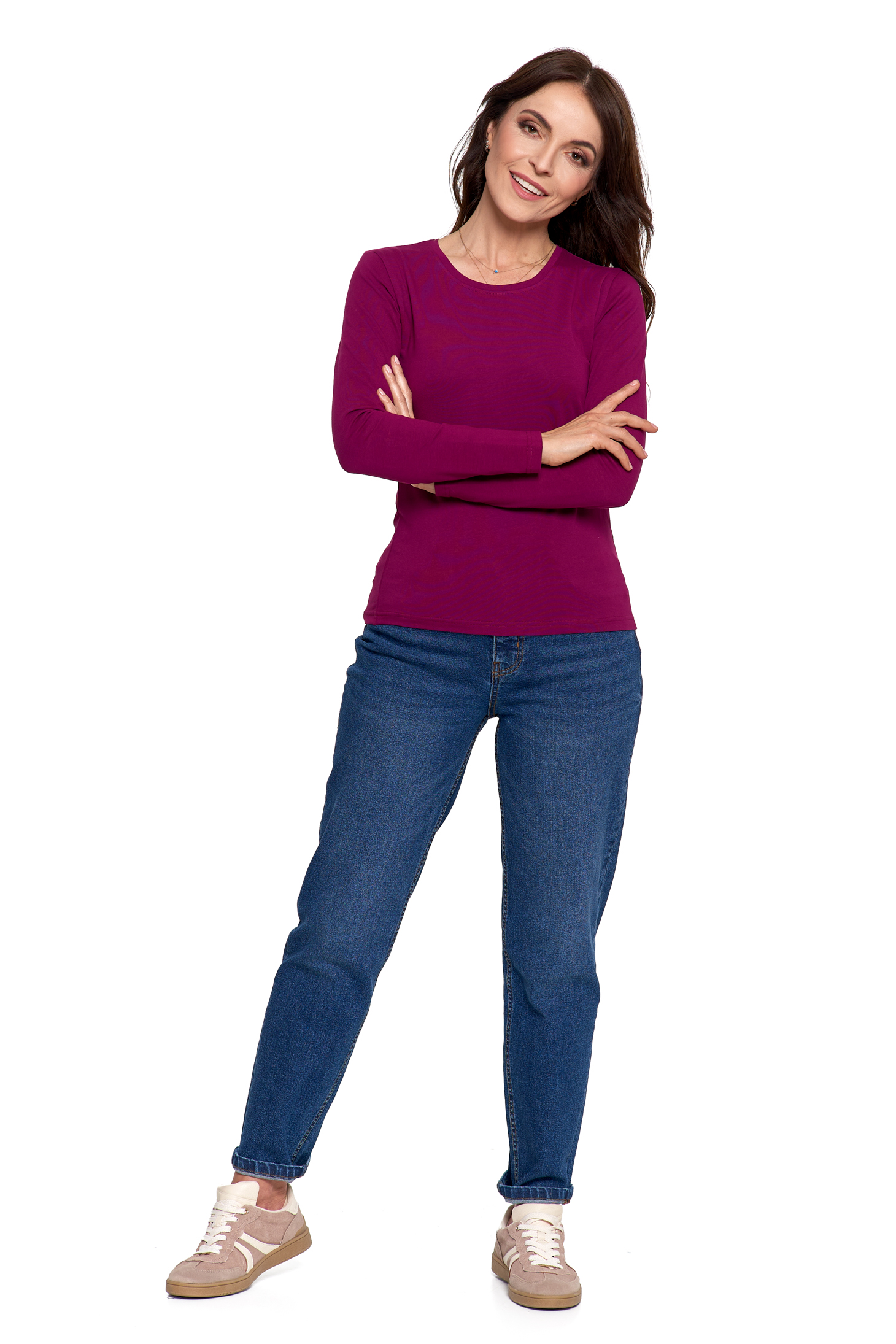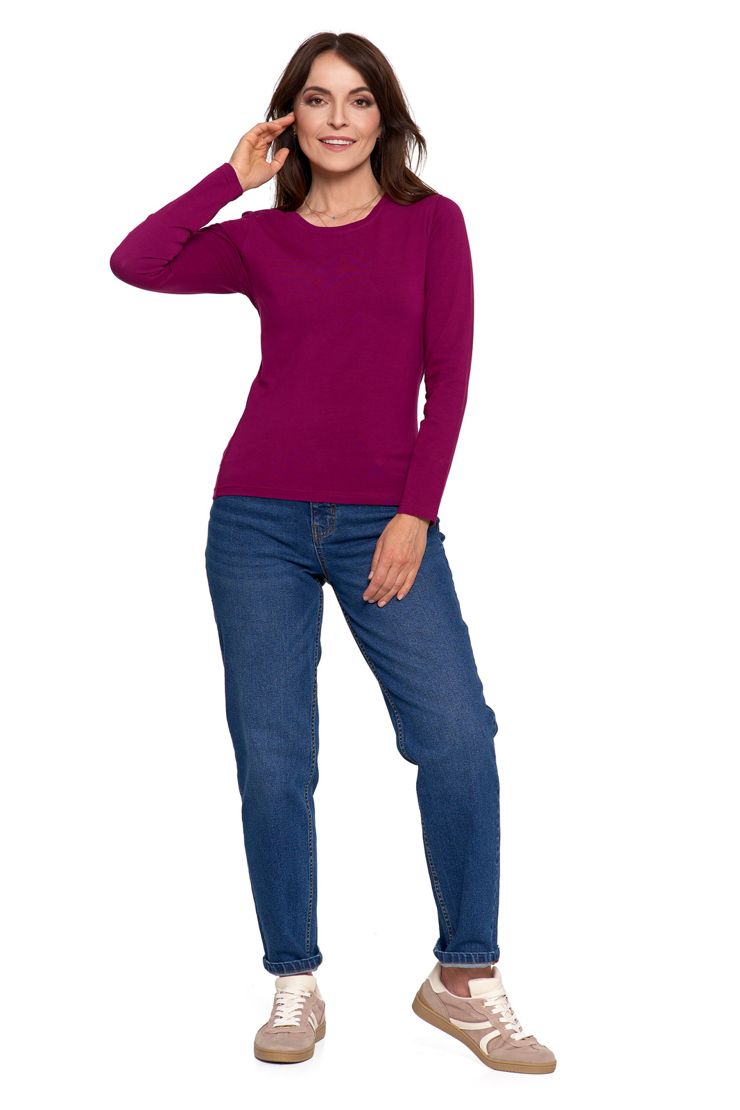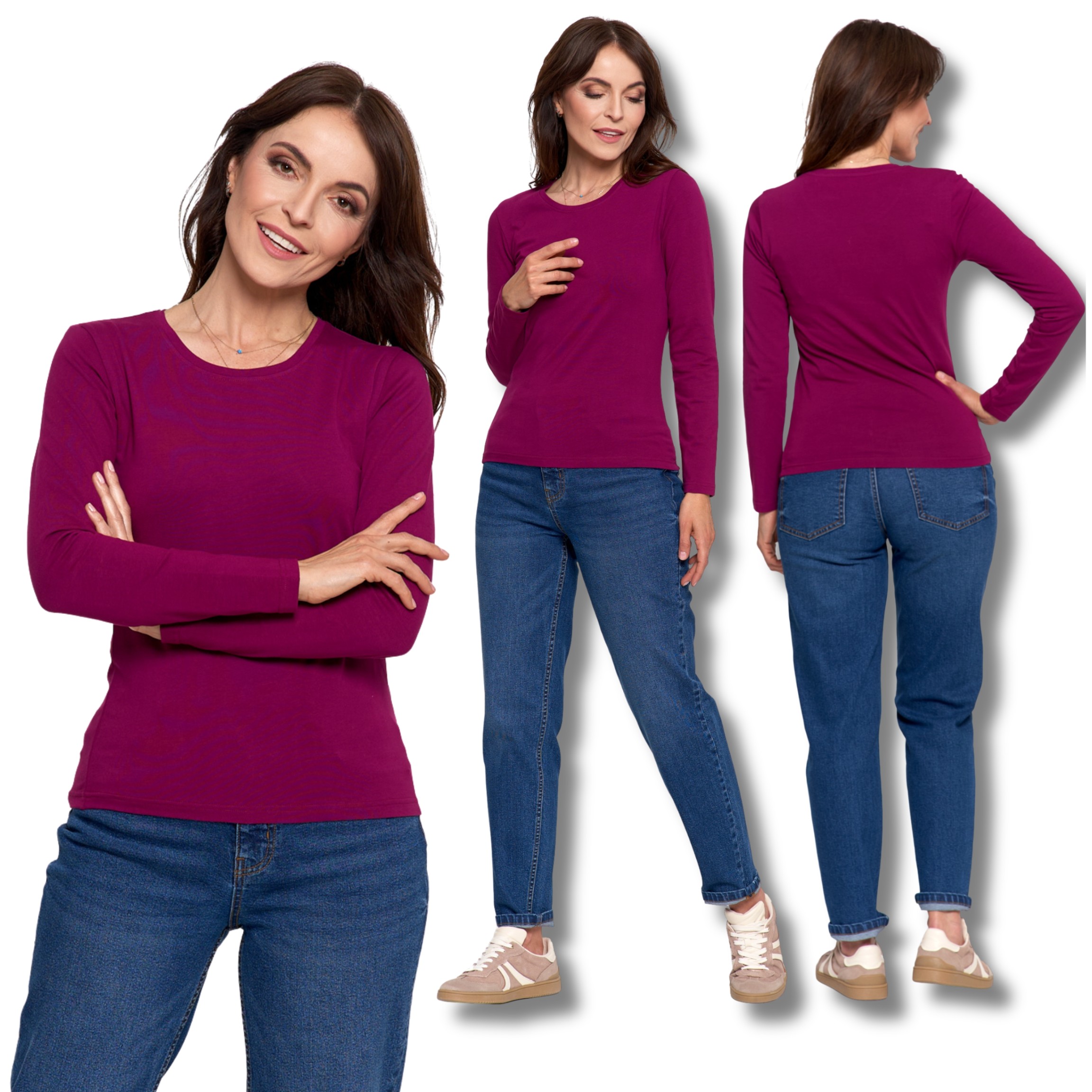 Bluzka damska z długim rękawem z linii Slim Basic to niezawodny element garderoby, który łączy klasyczny design z codziennym komfortem. Dzięki prostemu fasonowi i dopasowanemu krojowi, bluzka stanowi świetną bazę do wielu stylizacji – od casualowych po bardziej eleganckie.