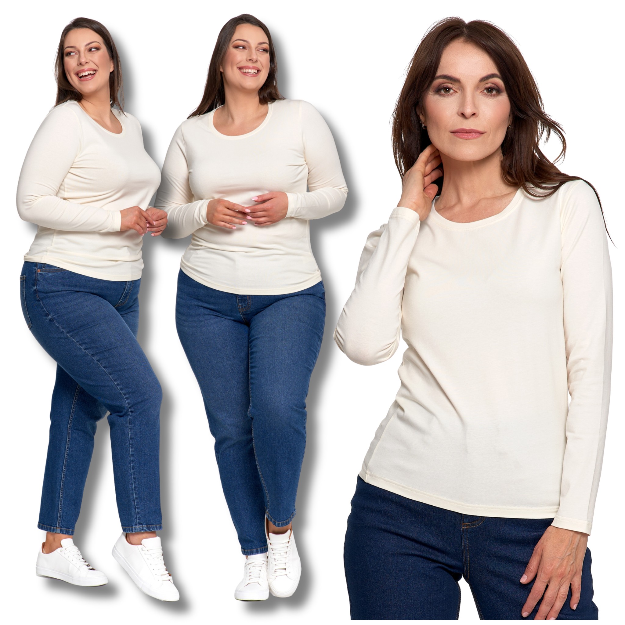 GŁADKA BLUZKA DAMSKA KOSZULKA Z DŁUGIM RĘKAWEM MODNA PODKOSZULKA MORAJ