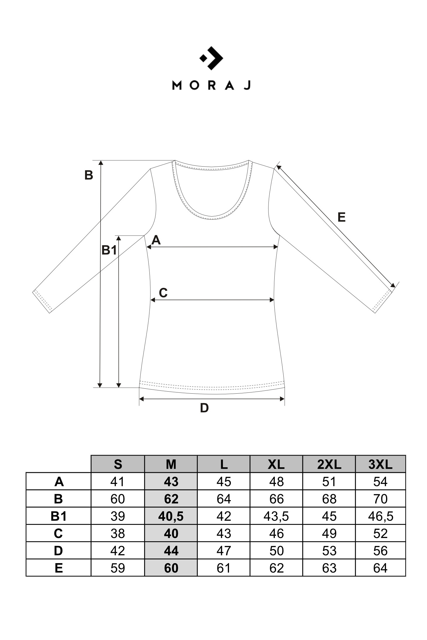 RozmiarSZEROKOŚĆ KLATKI PIERSIOWEJDŁUGOŚĆ CAŁKOWITADŁUGOŚĆ RĘKAWA