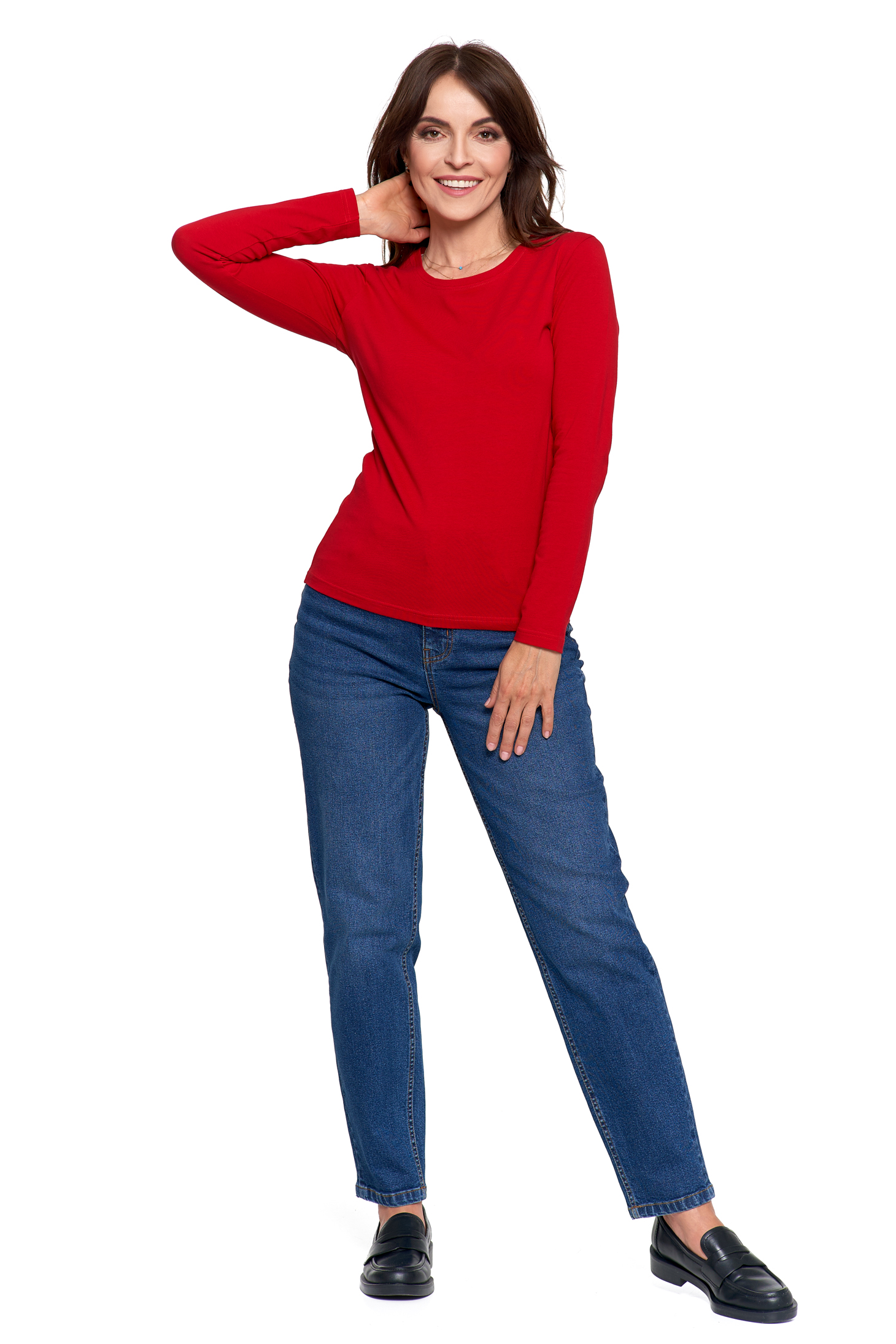 Bluzka damska z długim rękawem z linii Slim Basic to niezawodny element garderoby, który łączy klasyczny design z codziennym komfortem. Dzięki prostemu fasonowi i dopasowanemu krojowi, bluzka stanowi świetną bazę do wielu stylizacji – od casualowych po bardziej eleganckie.