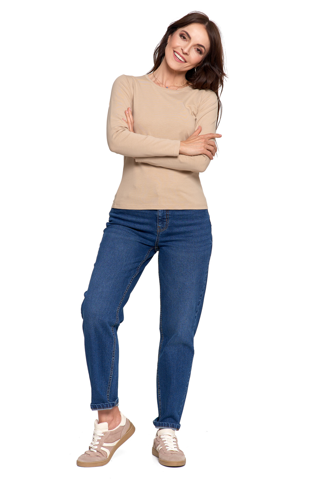 Bluzka damska z długim rękawem z linii Slim Basic to niezawodny element garderoby, który łączy klasyczny design z codziennym komfortem. Dzięki prostemu fasonowi i dopasowanemu krojowi, bluzka stanowi świetną bazę do wielu stylizacji – od casualowych po bardziej eleganckie.