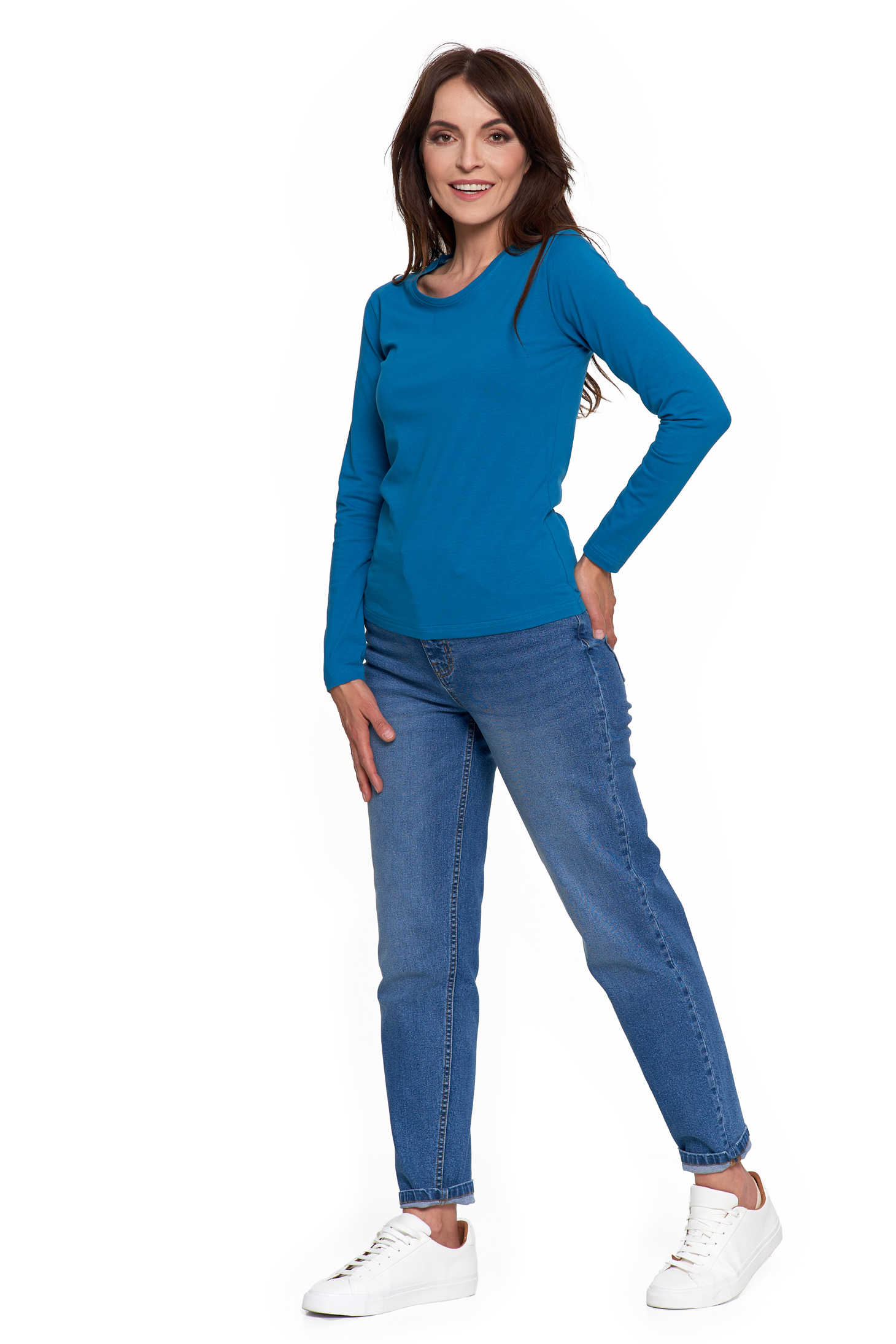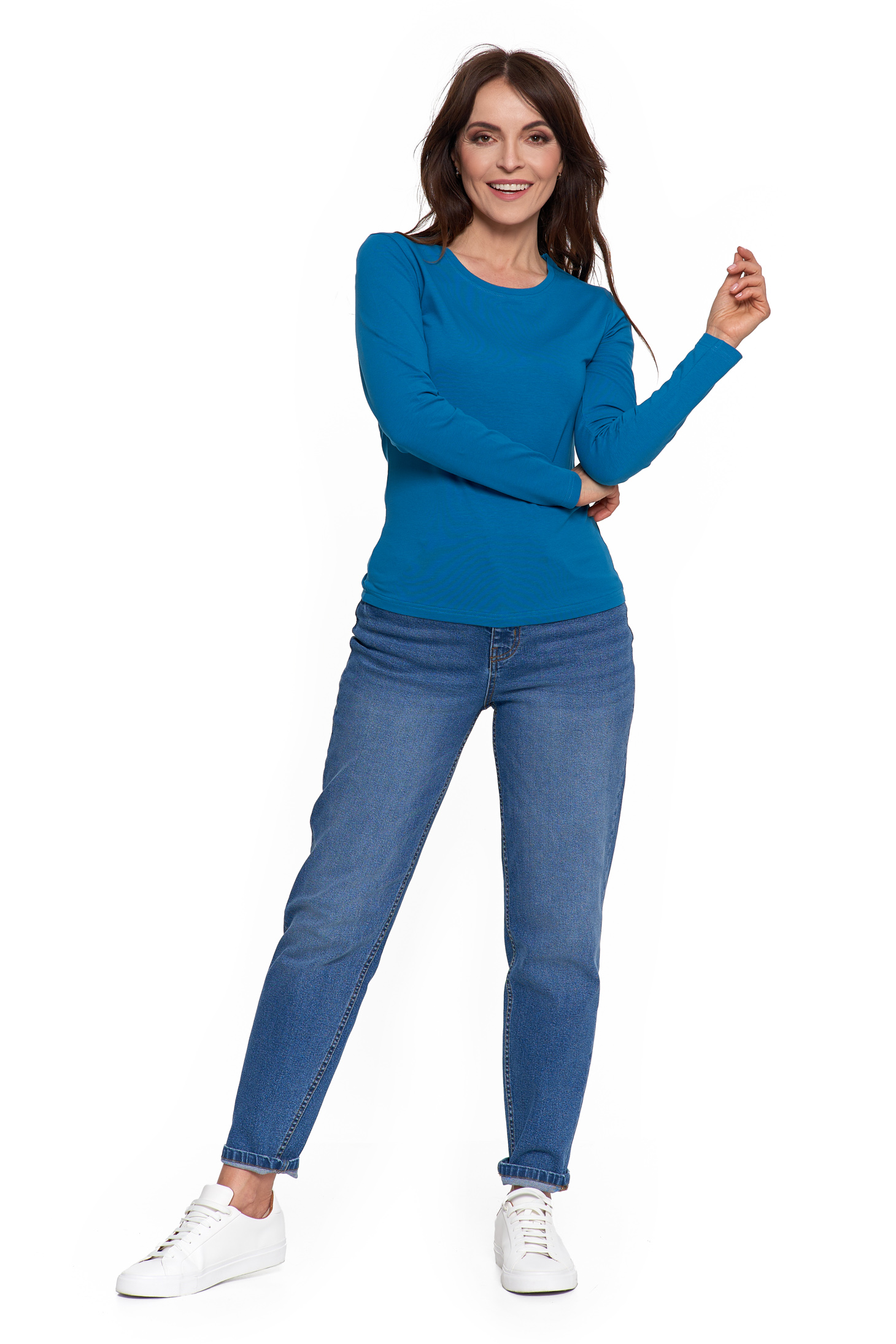 Bluzka damska z długim rękawem z linii Slim Basic to niezawodny element garderoby, który łączy klasyczny design z codziennym komfortem. Dzięki prostemu fasonowi i dopasowanemu krojowi, bluzka stanowi świetną bazę do wielu stylizacji – od casualowych po bardziej eleganckie.