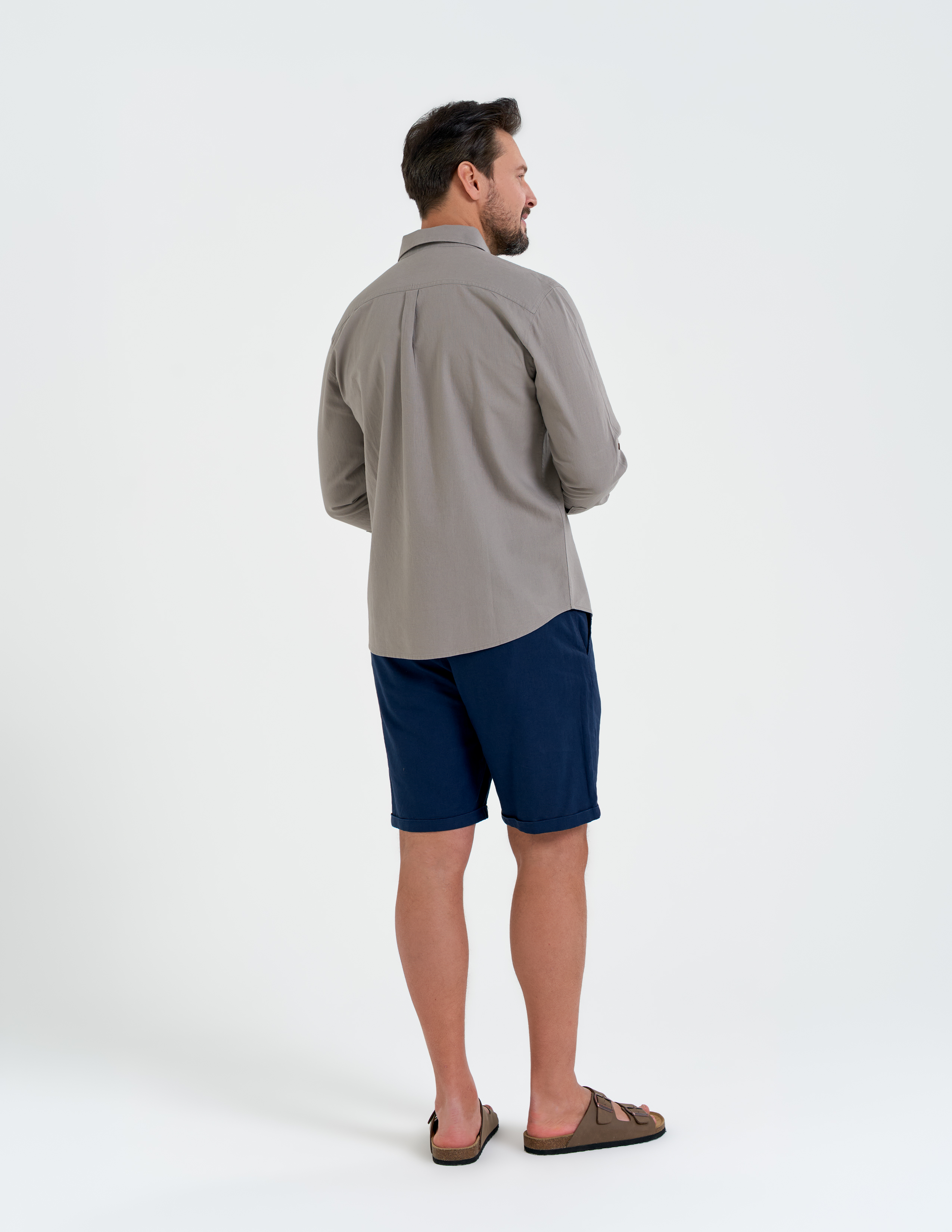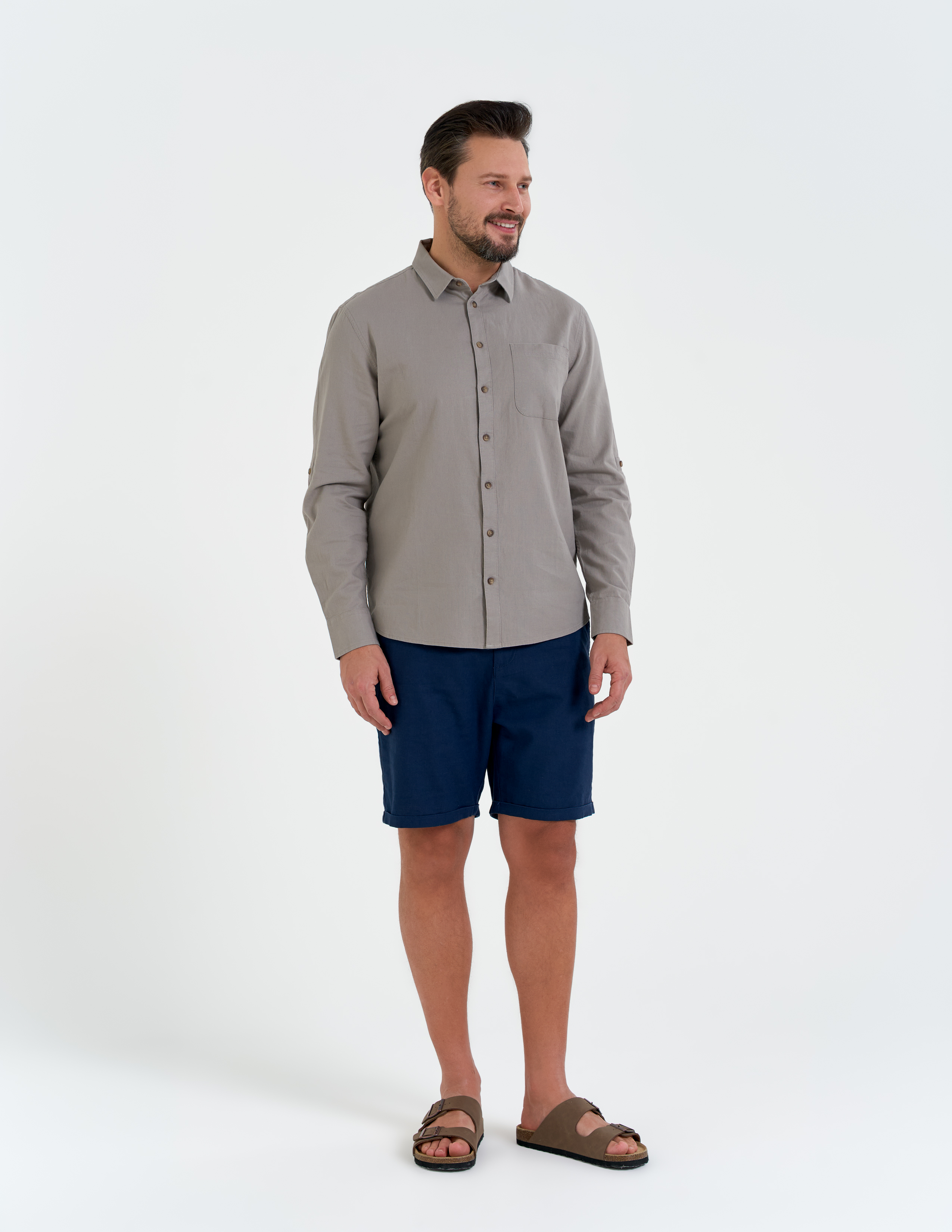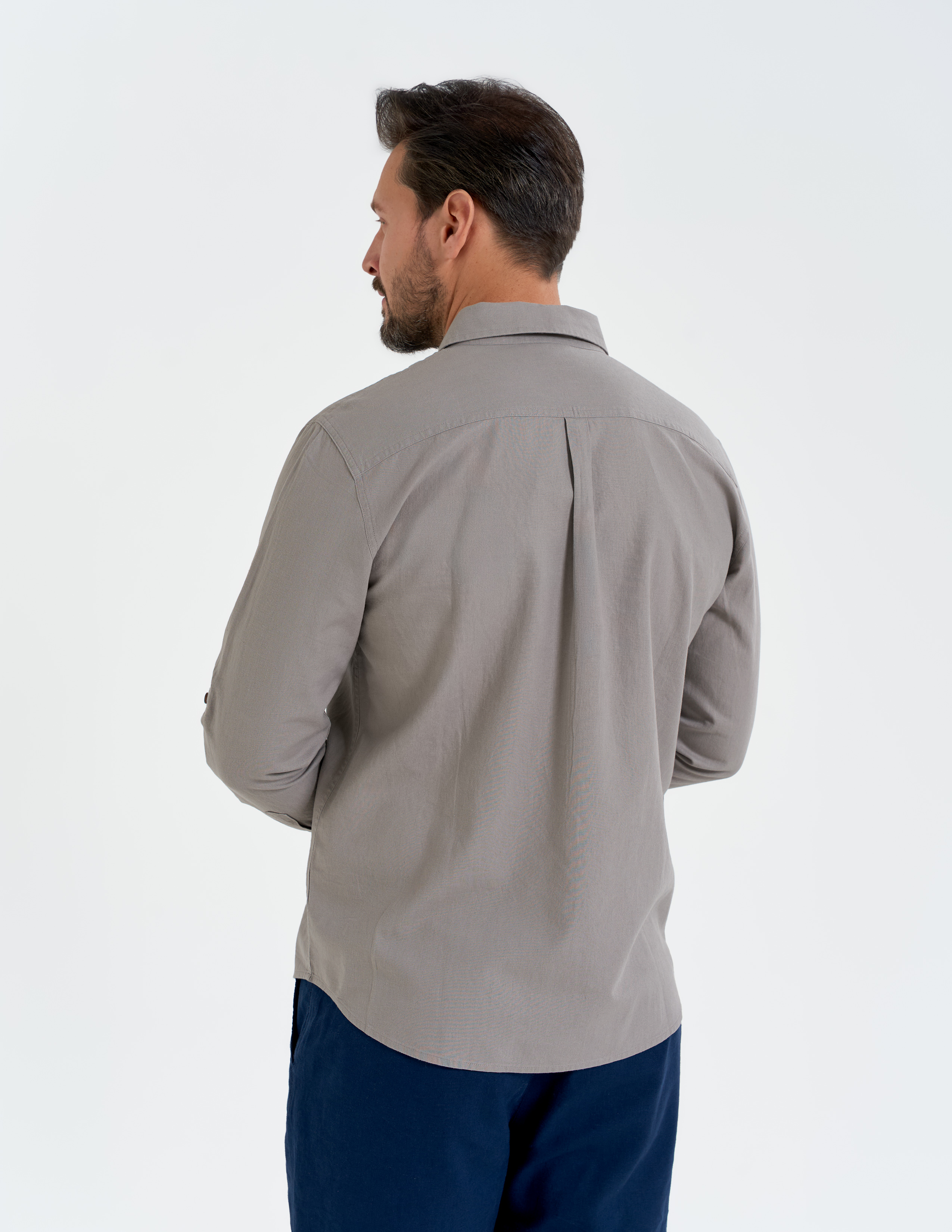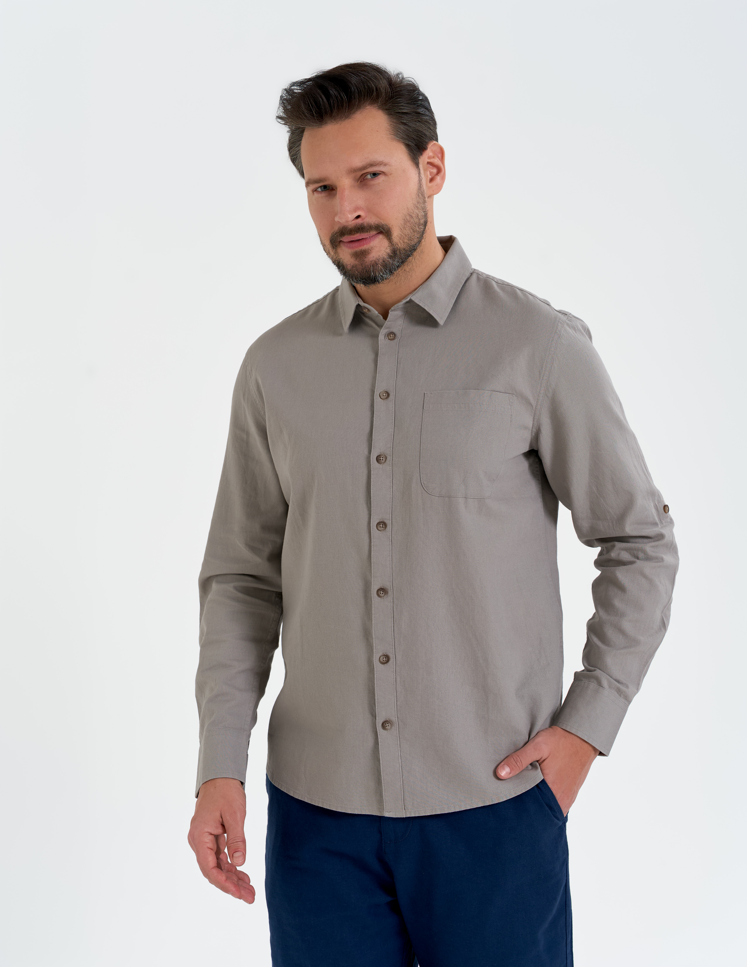 GŁADKA KOSZULA MĘSKA Z LNEM REGULOWANE RĘKAWY KLASYCZNA WYGODNA MORAJ