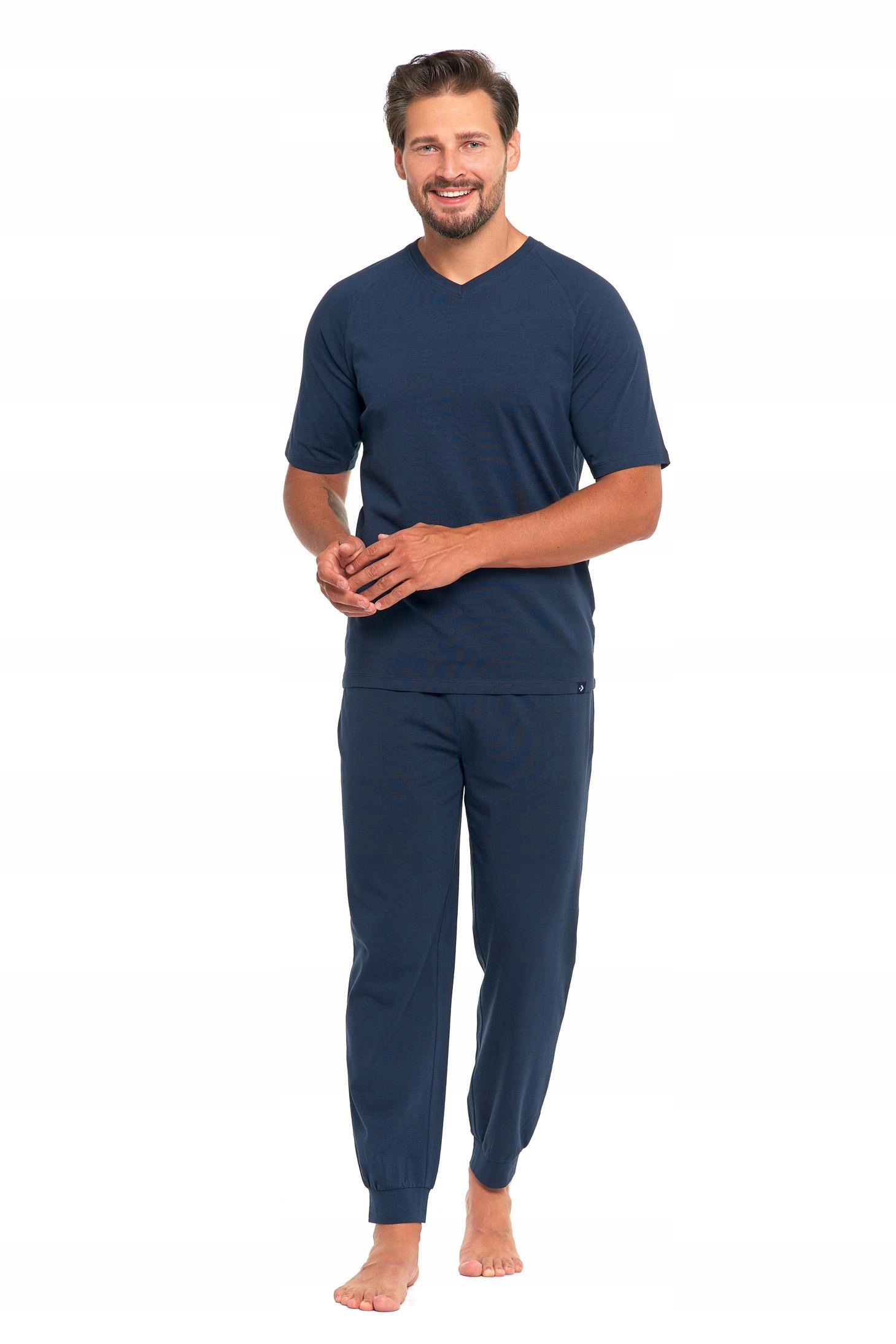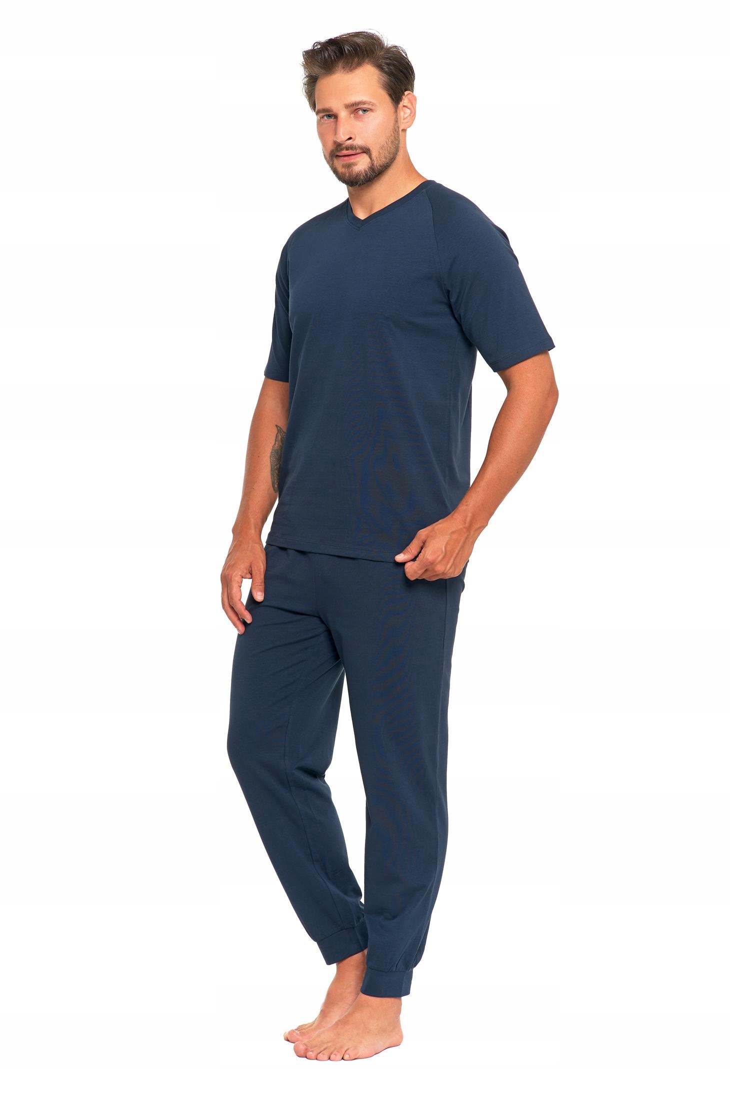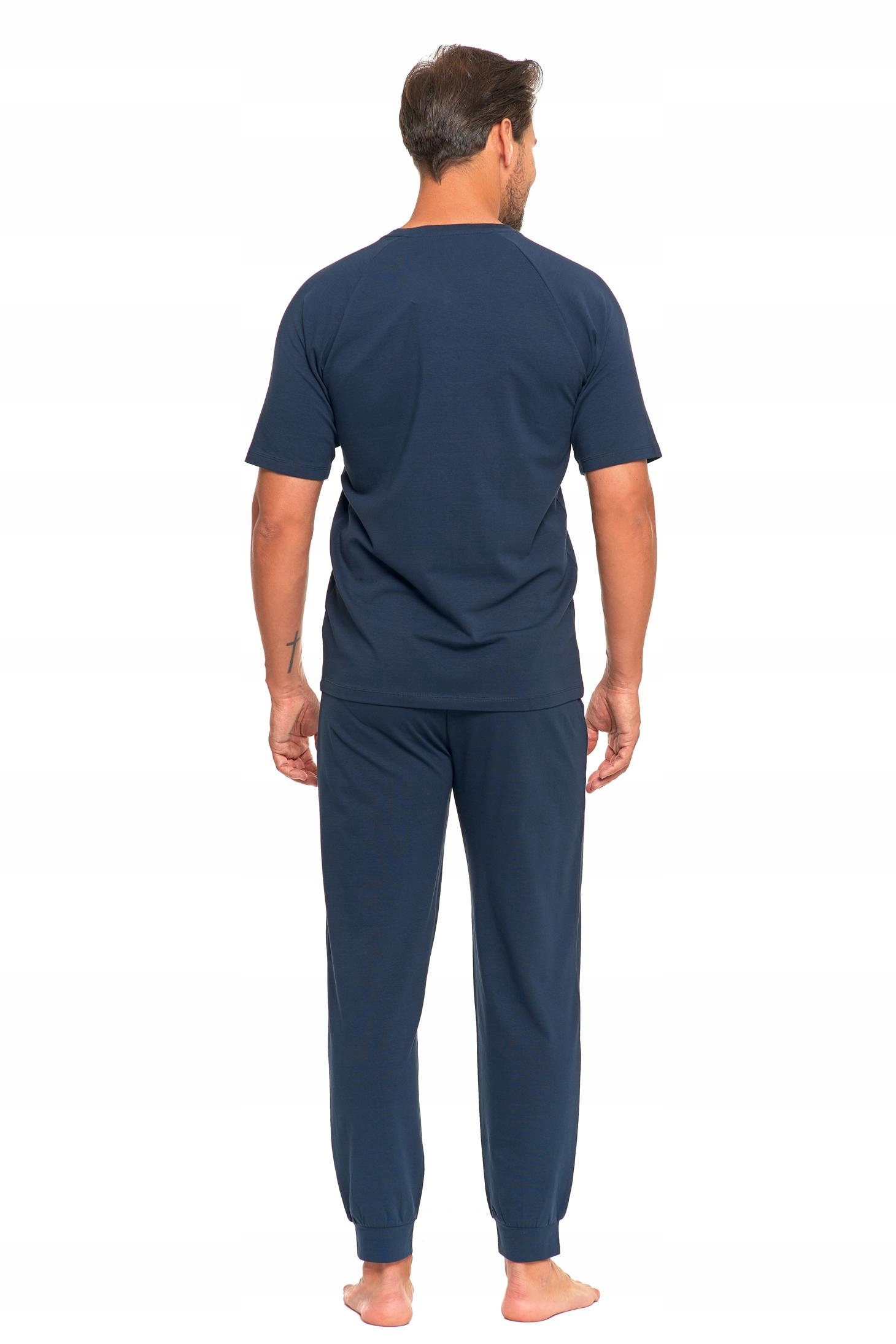 Gładka PIŻAMA MĘSKA Elegancka Krótki Rękaw Długie Spodnie Bawełna MORAJ