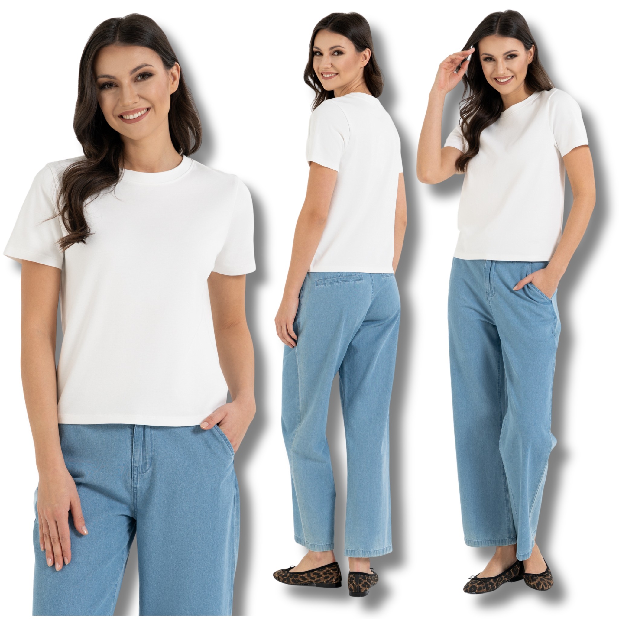 GŁADKI T-SHIRT DAMSKI BAWEŁNIANY KOSZULKA KRÓTKI RĘKAW BLUZKA MORAJ