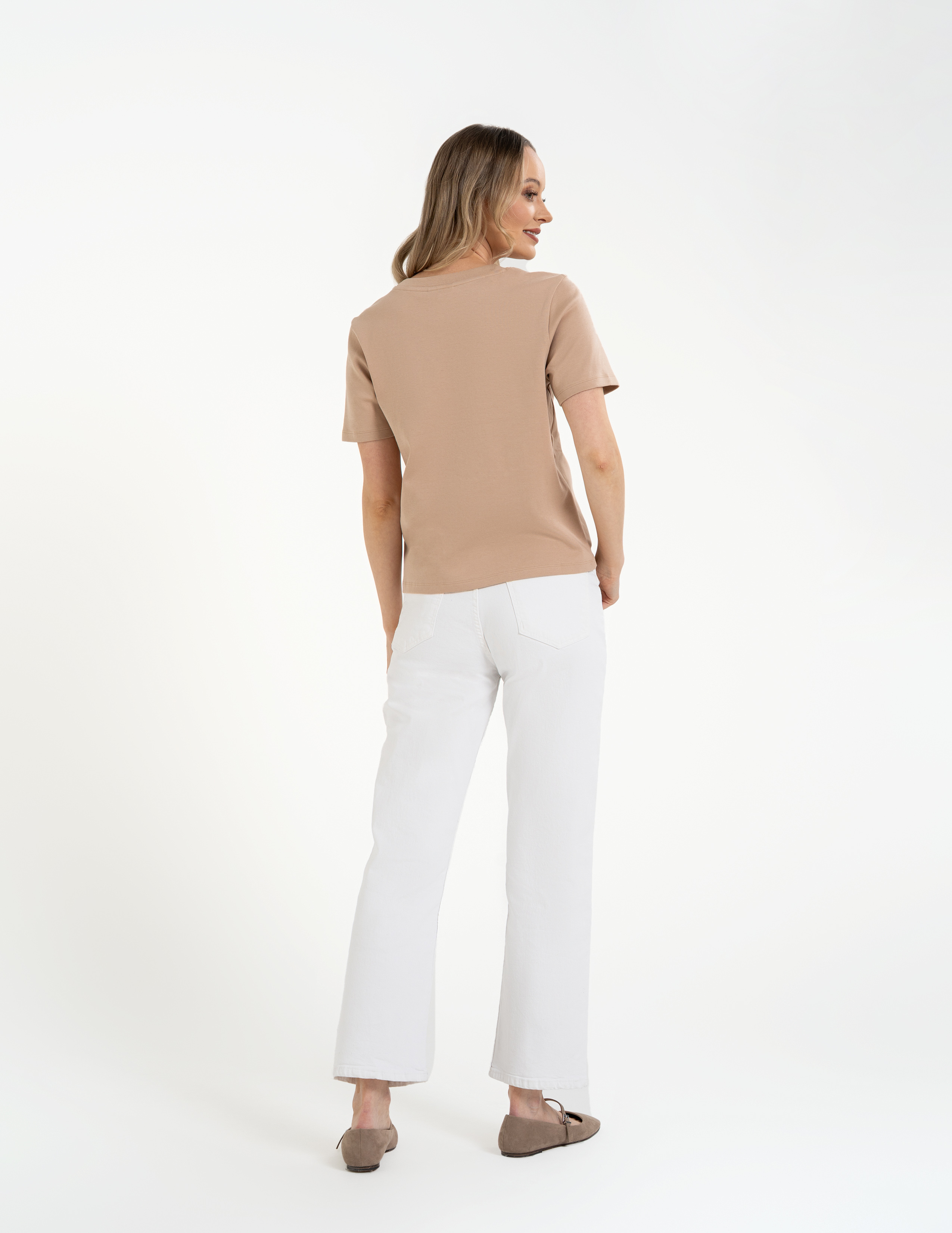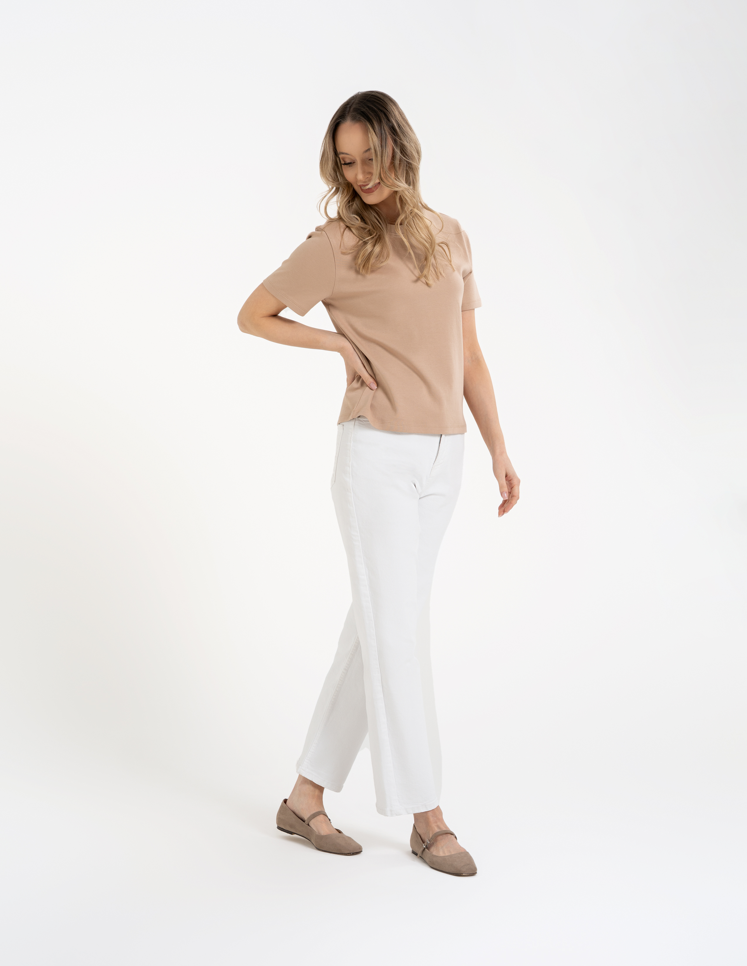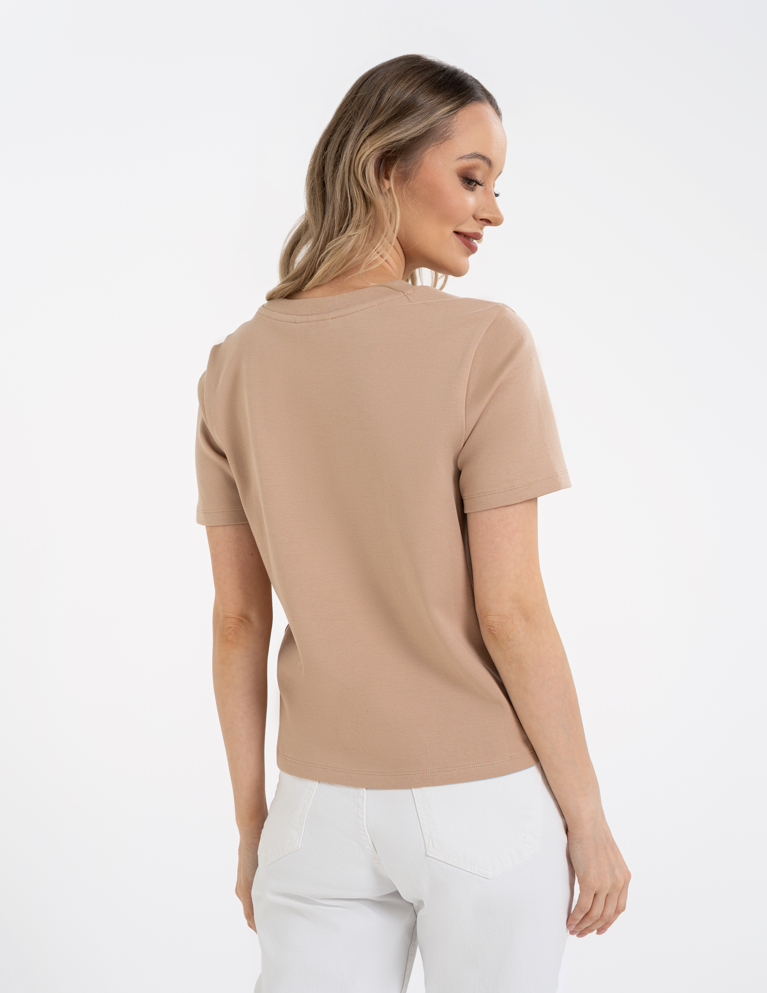 - Fundament Szafy Kapsułowej: Dzięki minimalistycznej formie, koszulka jest modowym kameleonem. Wygląda świetnie pod marynarką, w zestawieniu z jeansami z wysokim stanem czy ulubioną spódnicą.