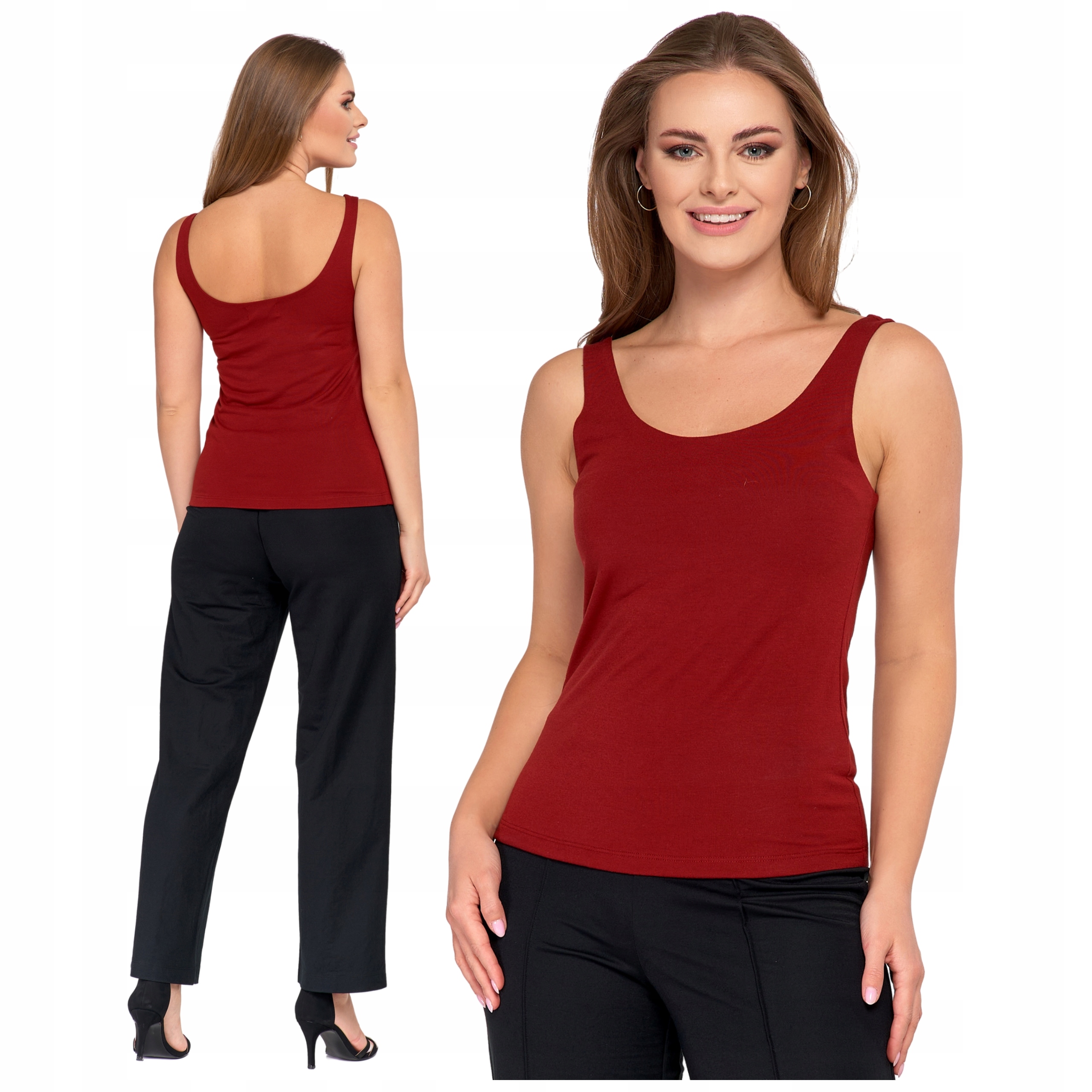 GŁADKI TOP DAMSKI DWUWARSTWOWY BLUZKA NA RAMIĄCZKACH LEKKA MODNA MORAJ