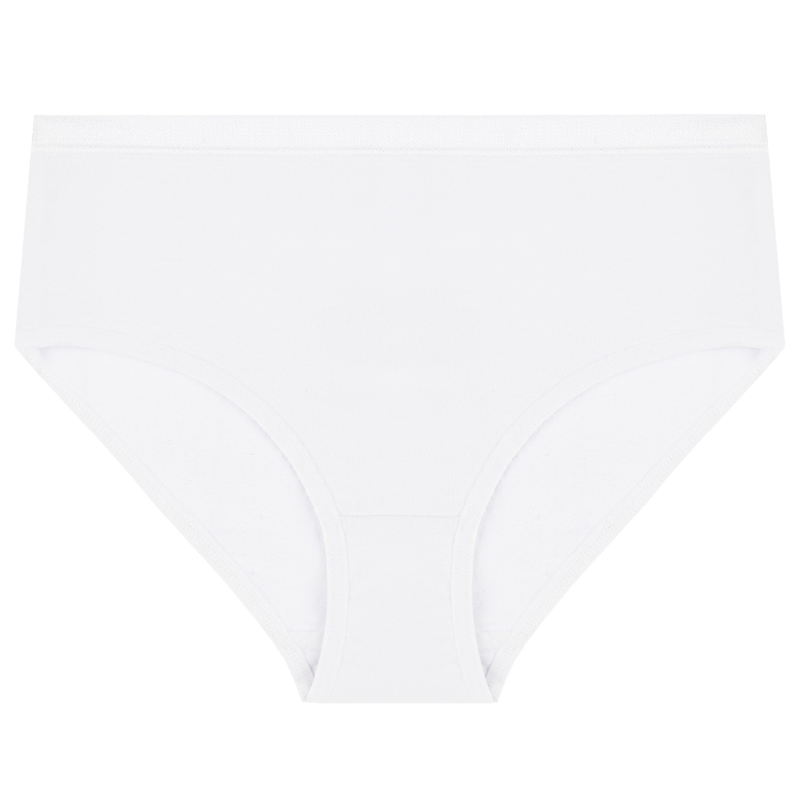 • Klasyczne, gładkie figi dziewczęce w uniwersalnym białym kolorze.