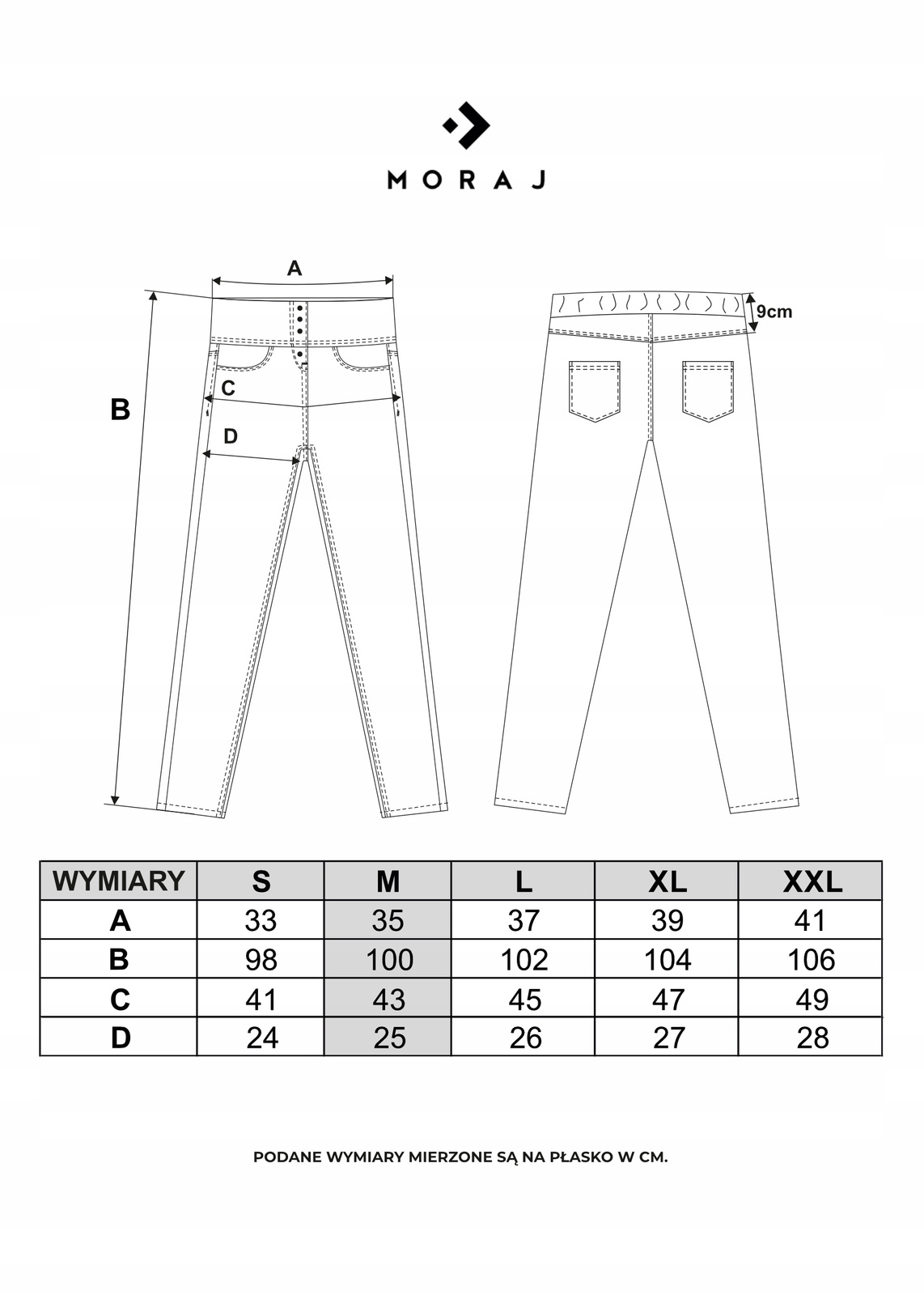 Rozmiar | SZEROKOŚĆ W PASIE | DŁUGOŚĆ CAŁKOWITA | SZEROKOŚĆ W BIODRACH | SZEROKOŚĆ NOGAWKI W UDACH |