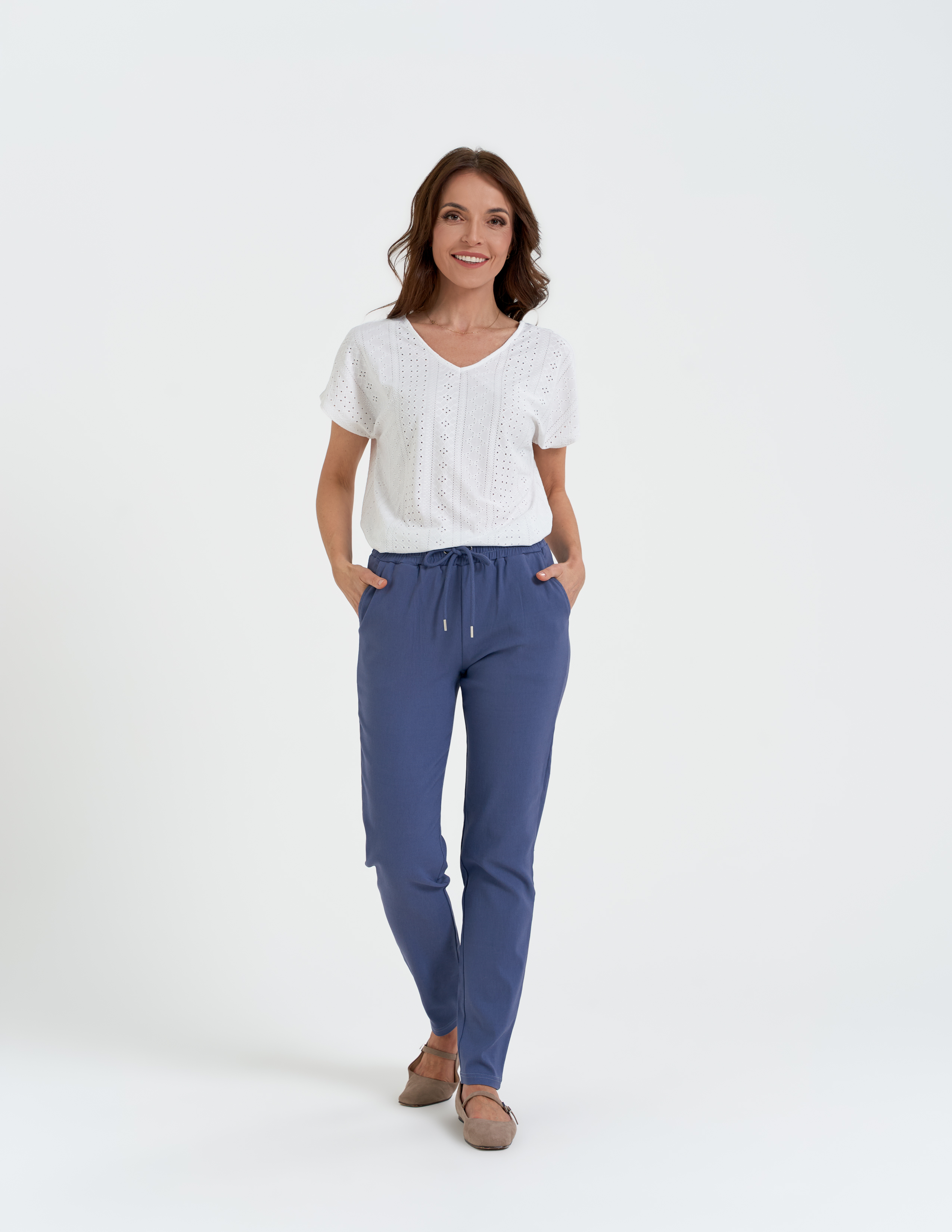 - Funkcjonalność: Posiadają dwie pojemne kieszenie z przodu, które dodają spodniom casualowego charakteru i są bardzo użyteczne.