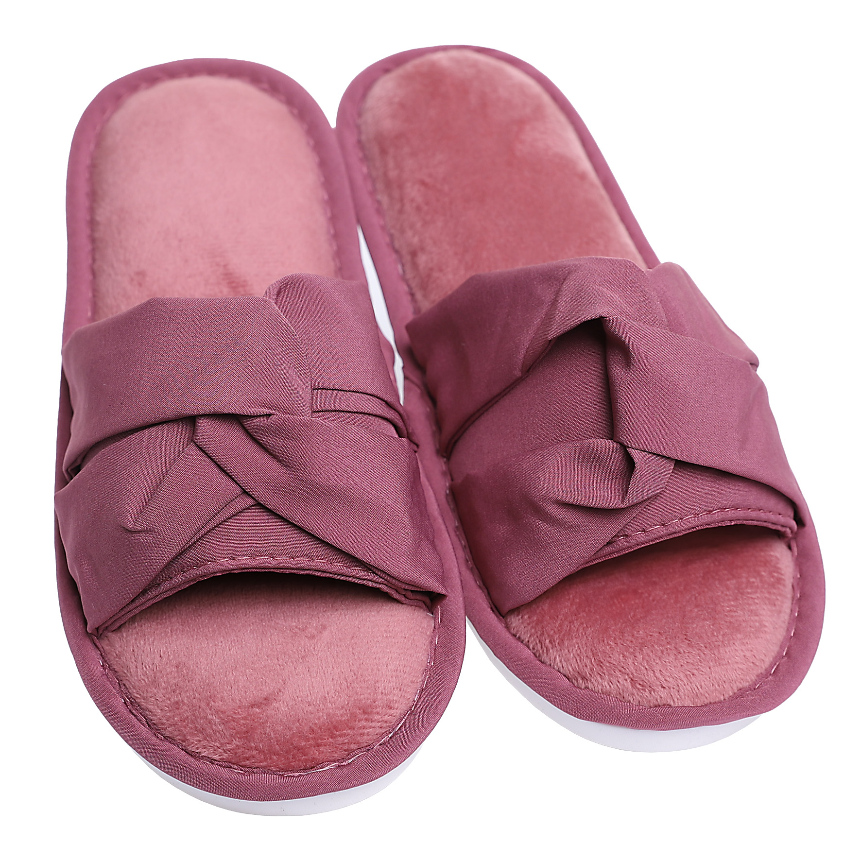 Te wygodne kapcie damskie to idealne połączenie elegancji z domowym komfortem. Model wsuwany, z ozdobną kokardą, został wykonany z przyjemnego w dotyku materiału, idealnie sprawdzając się na co dzień i podczas wieczornego relaksu.