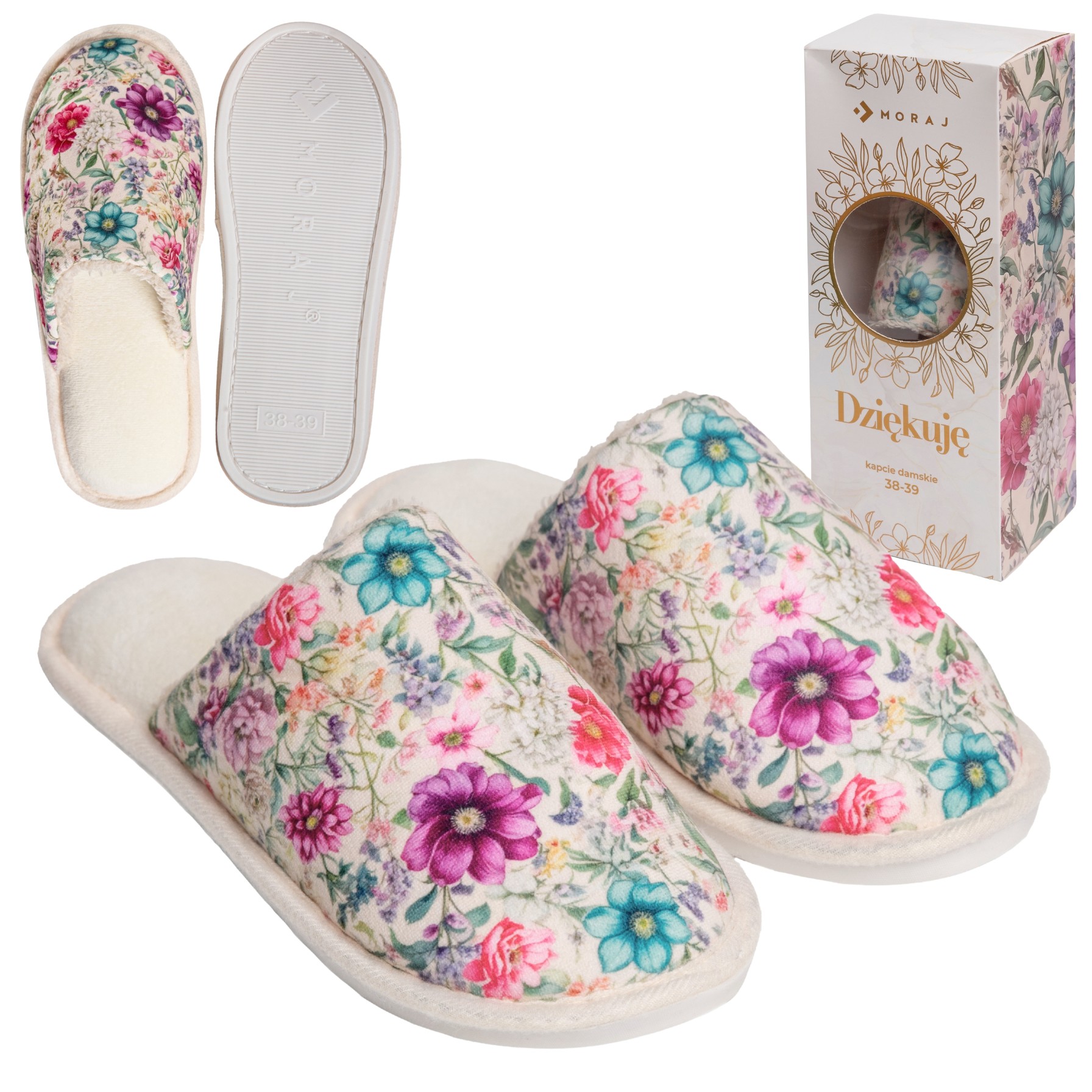 KAPCIE DAMSKIE W KWIATKI LACZKI DOMOWE KLAPKI NA PREZENT MORAJ