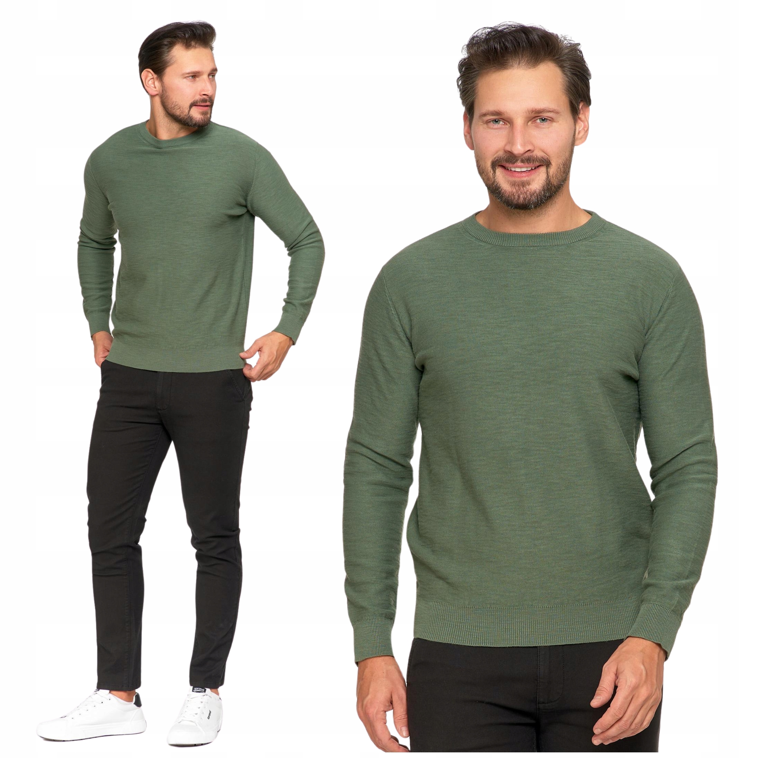 Klasyczny SWETER Męski Gładki Bawełniany Wygodny Okrągły Dekolt MORAJ