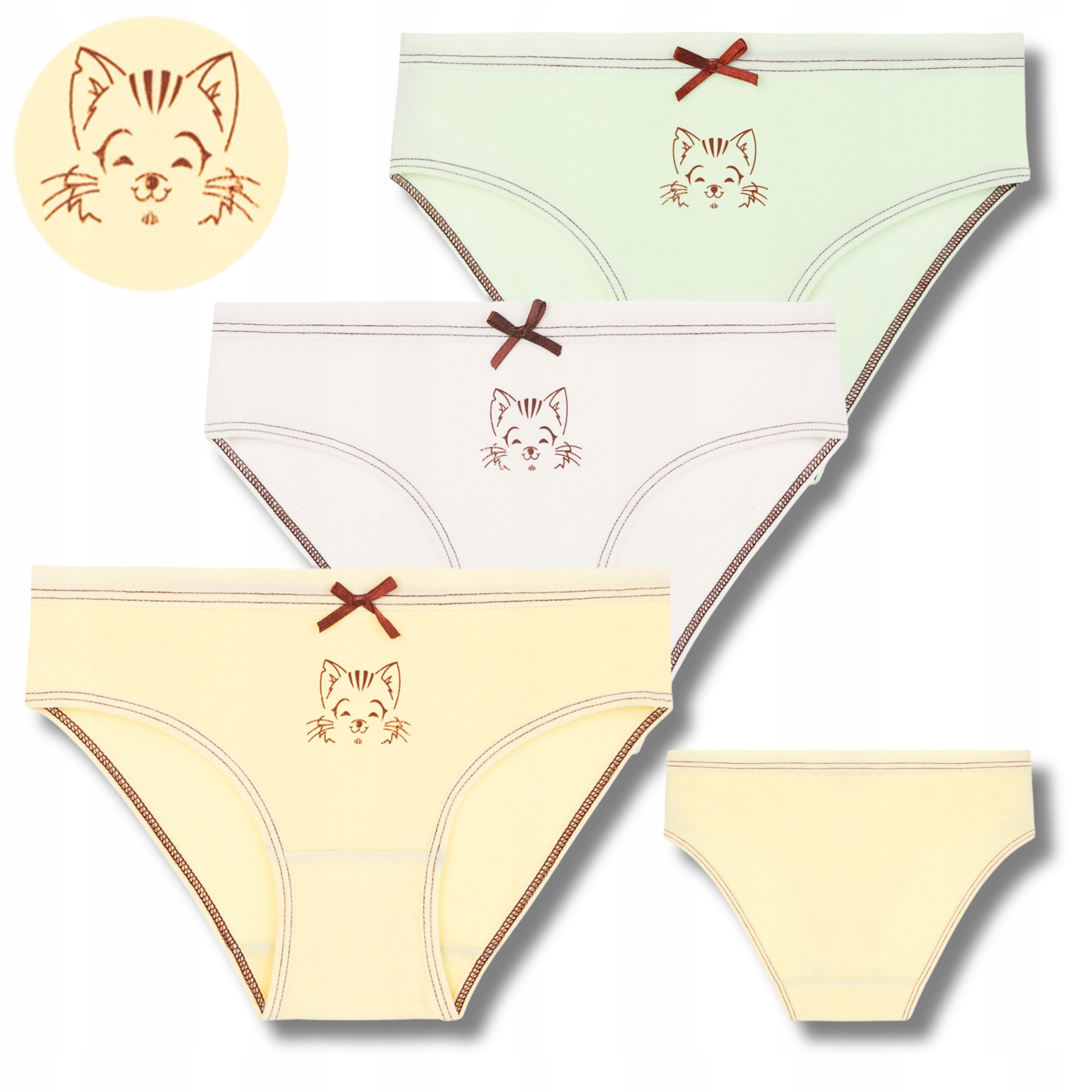 Kolorowe MAJTKI DZIEWCZĘCE Z KOTKIEM Figi Dziecięce MORAJ 3-szt.