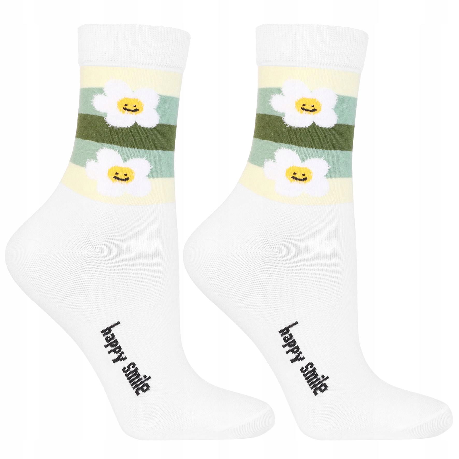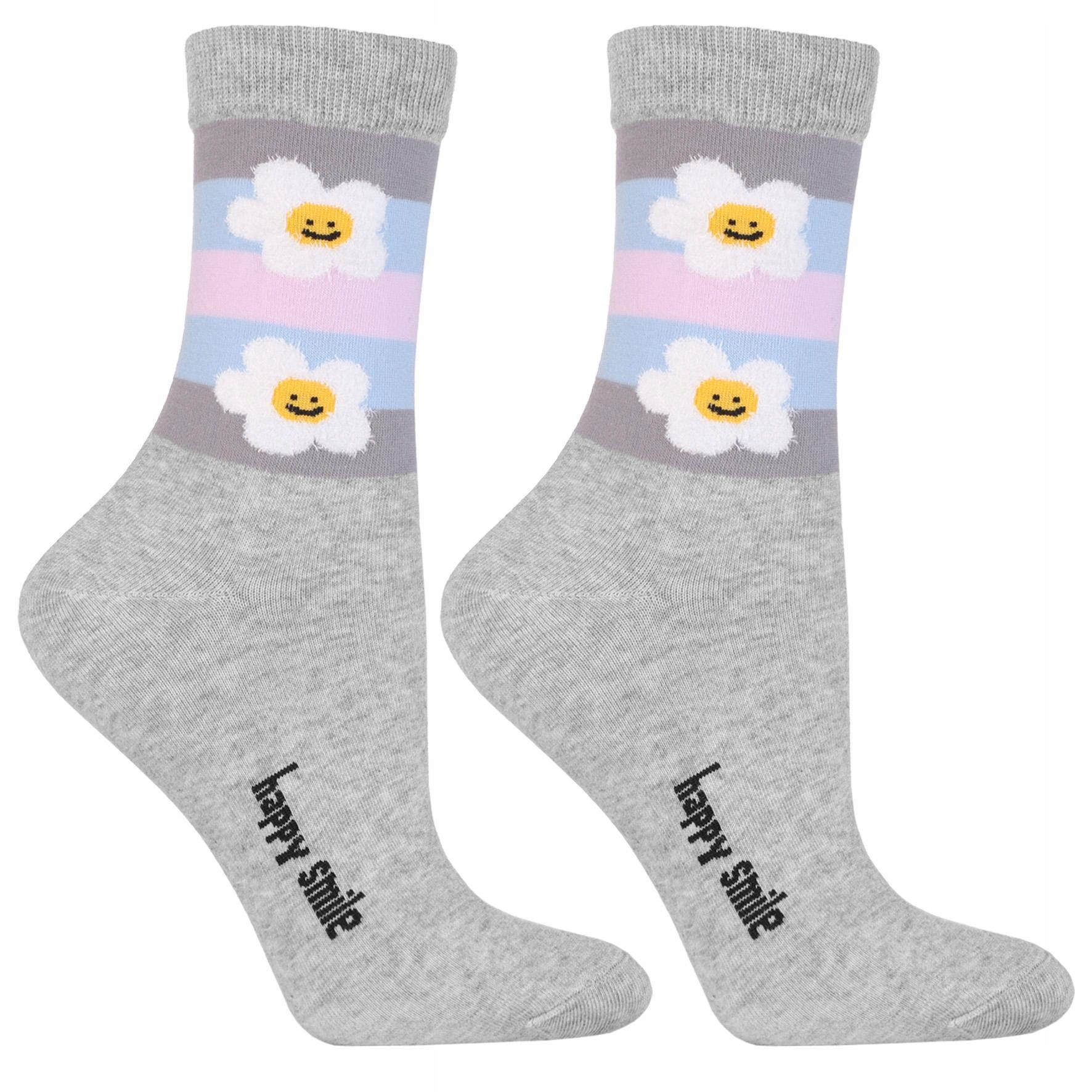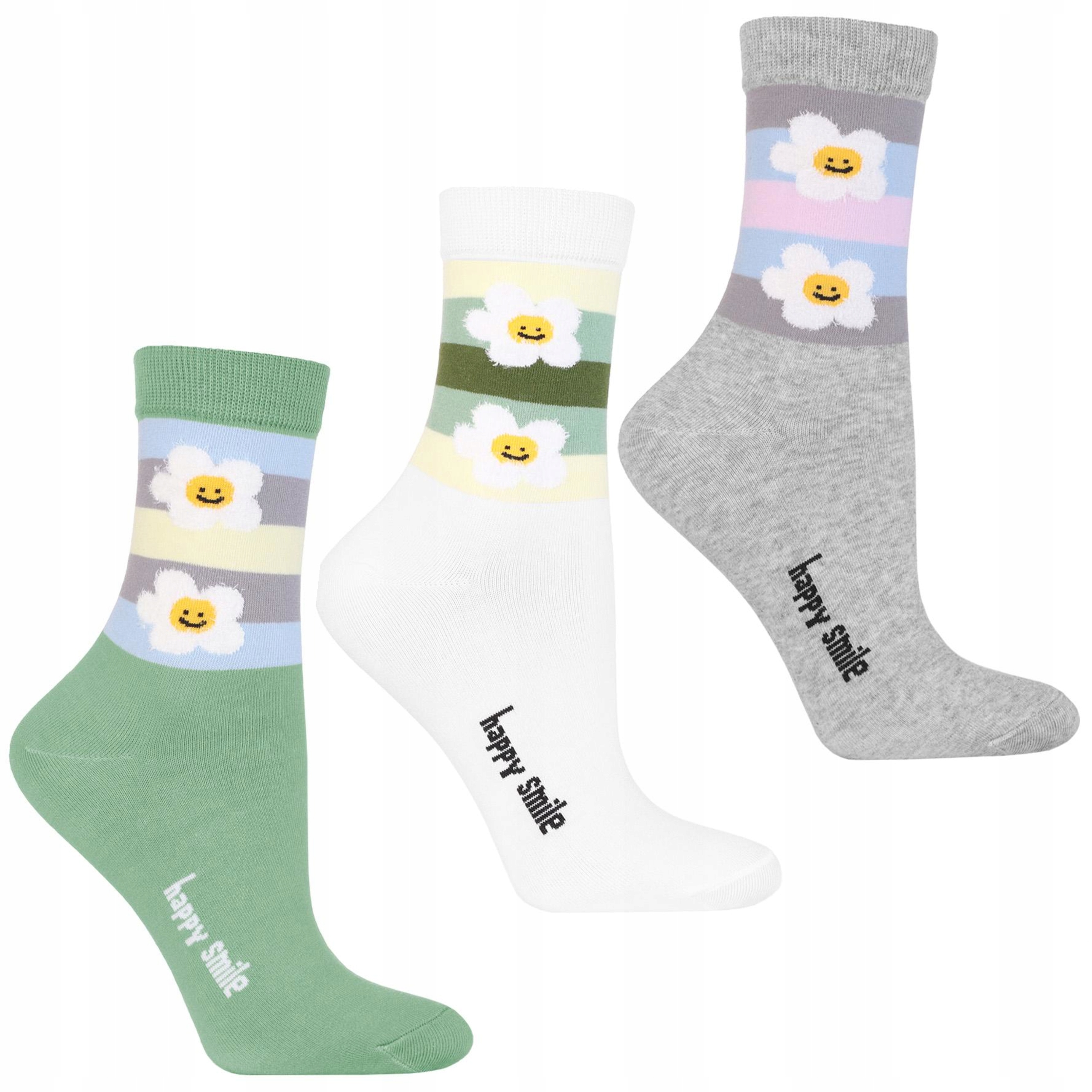 Zestaw składa się z trzech par skarpetek ozdobionych delikatnymi stokrotkami po obu stronach, które dodają im wyjątkowego uroku. Dodatkowo, skarpetki mają subtelne paski, które wprowadzają do nich modny akcent.