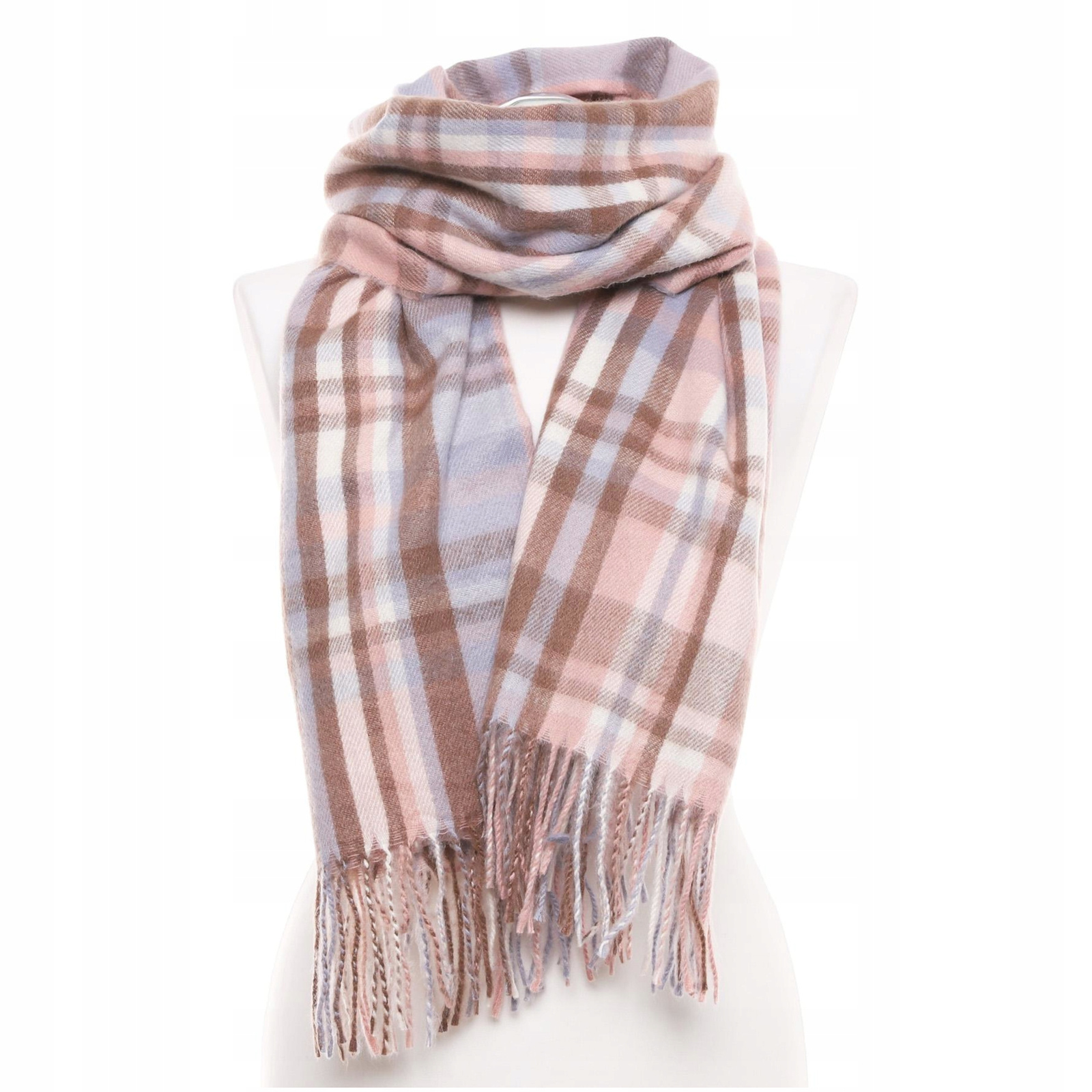 Ciepłe, przyjemne w dotyku włókno doskonale chroni przed zimnem, a miękkie odcienie różu, beżu i błękitu sprawiają, że ten dodatek pasuje do każdej jesienno-zimowej stylizacji. Frędzle na końcach dodają szalowi lekkości, a klasyczny wzór kraty podkreśla jego ponadczasowy charakter.