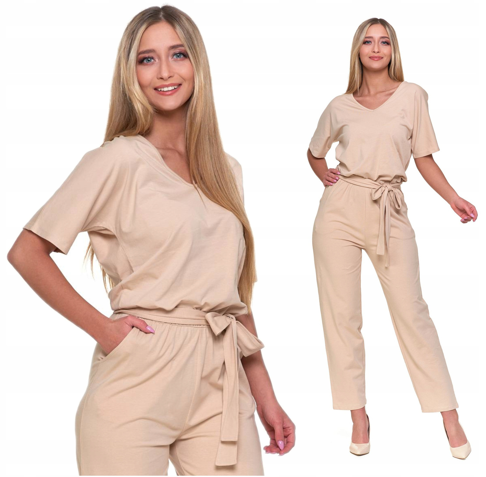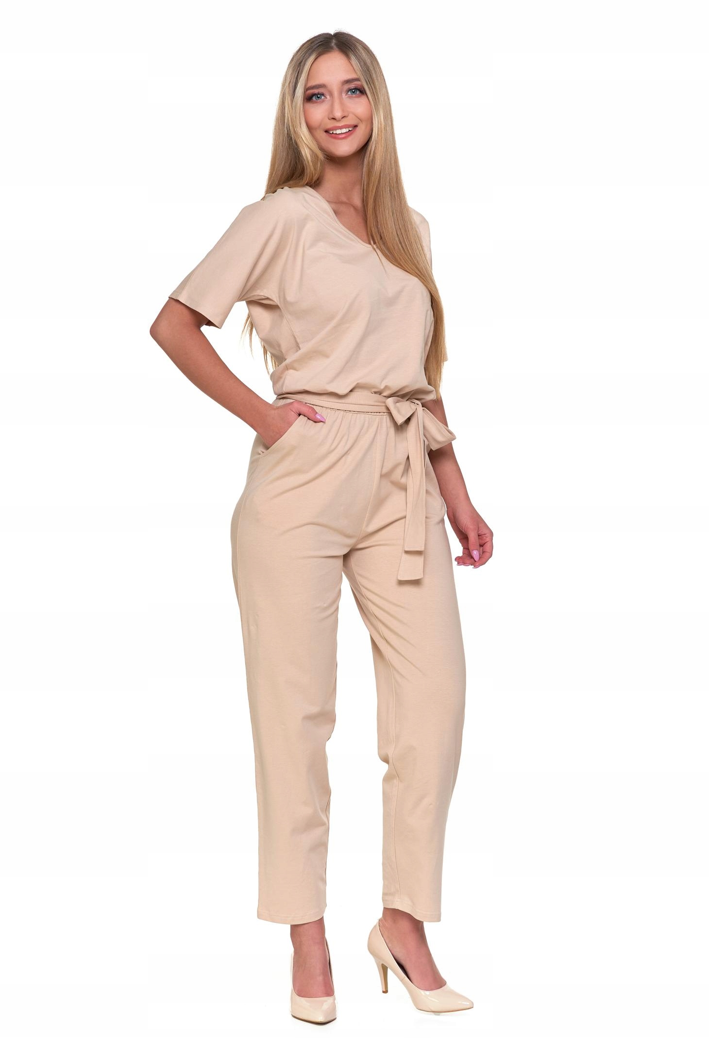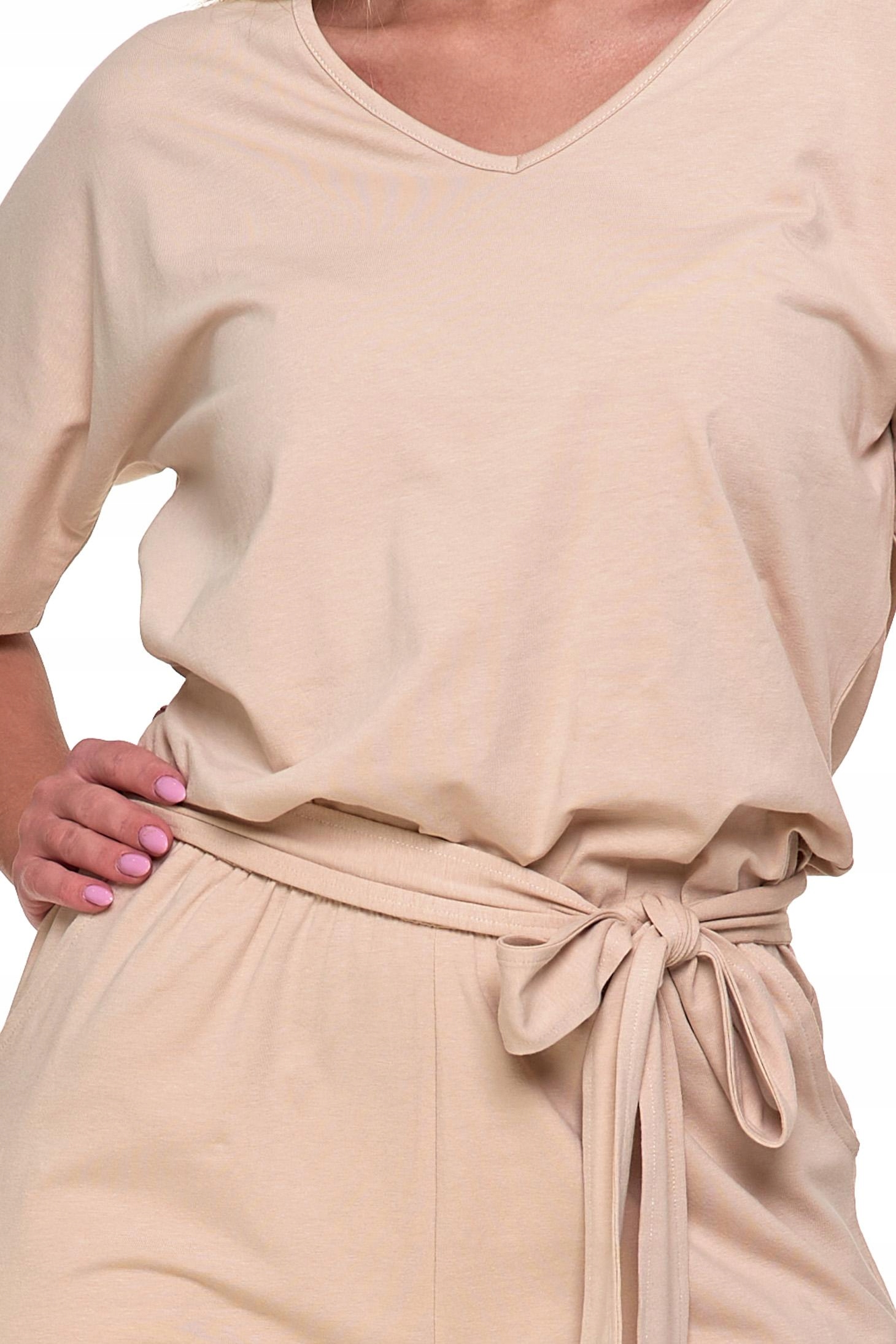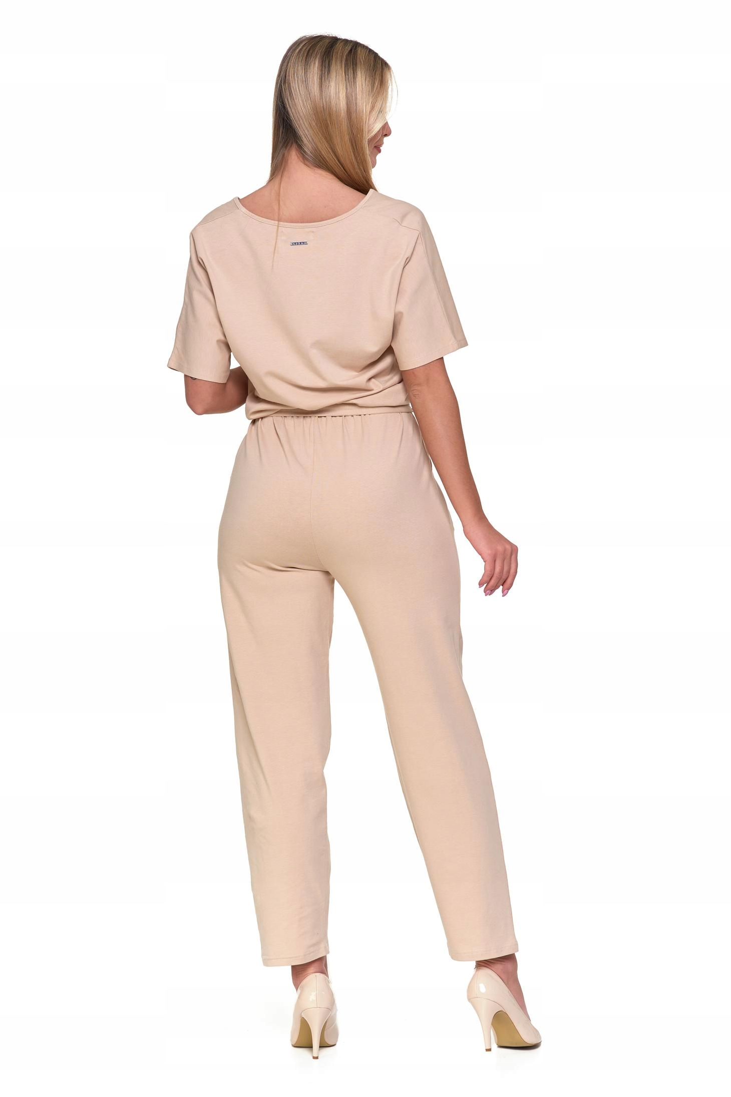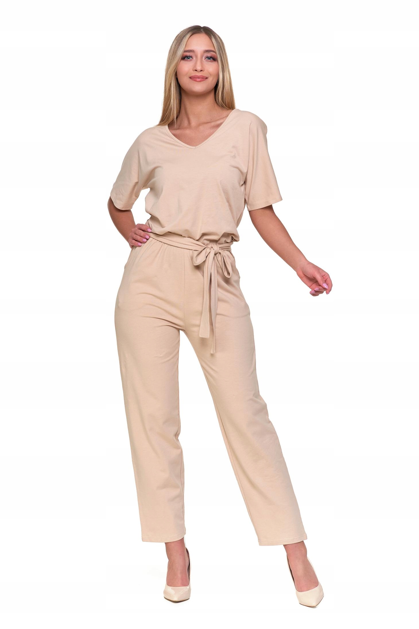KOMBINEZON DAMSKI GŁADKI DŁUGI LUŹNY BEŻOWY MODNY BAWEŁNIANY MORAJ